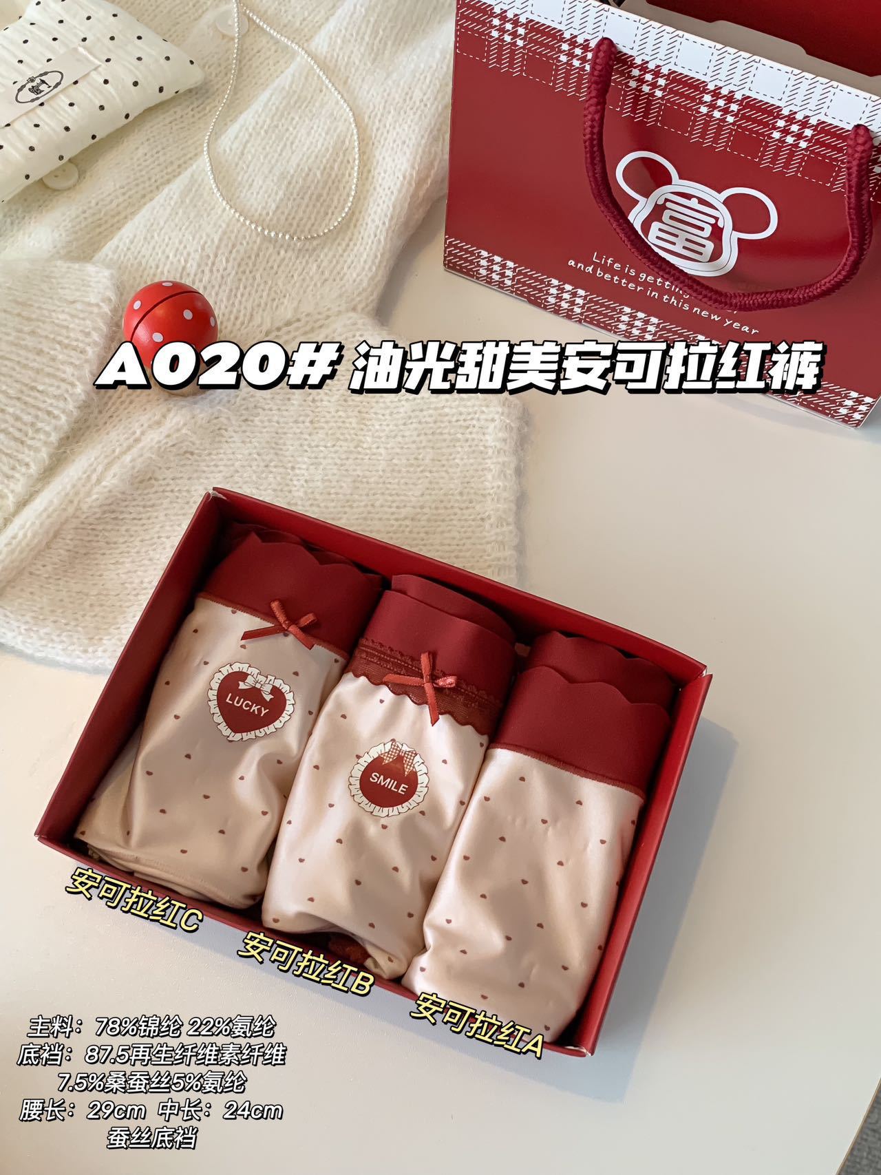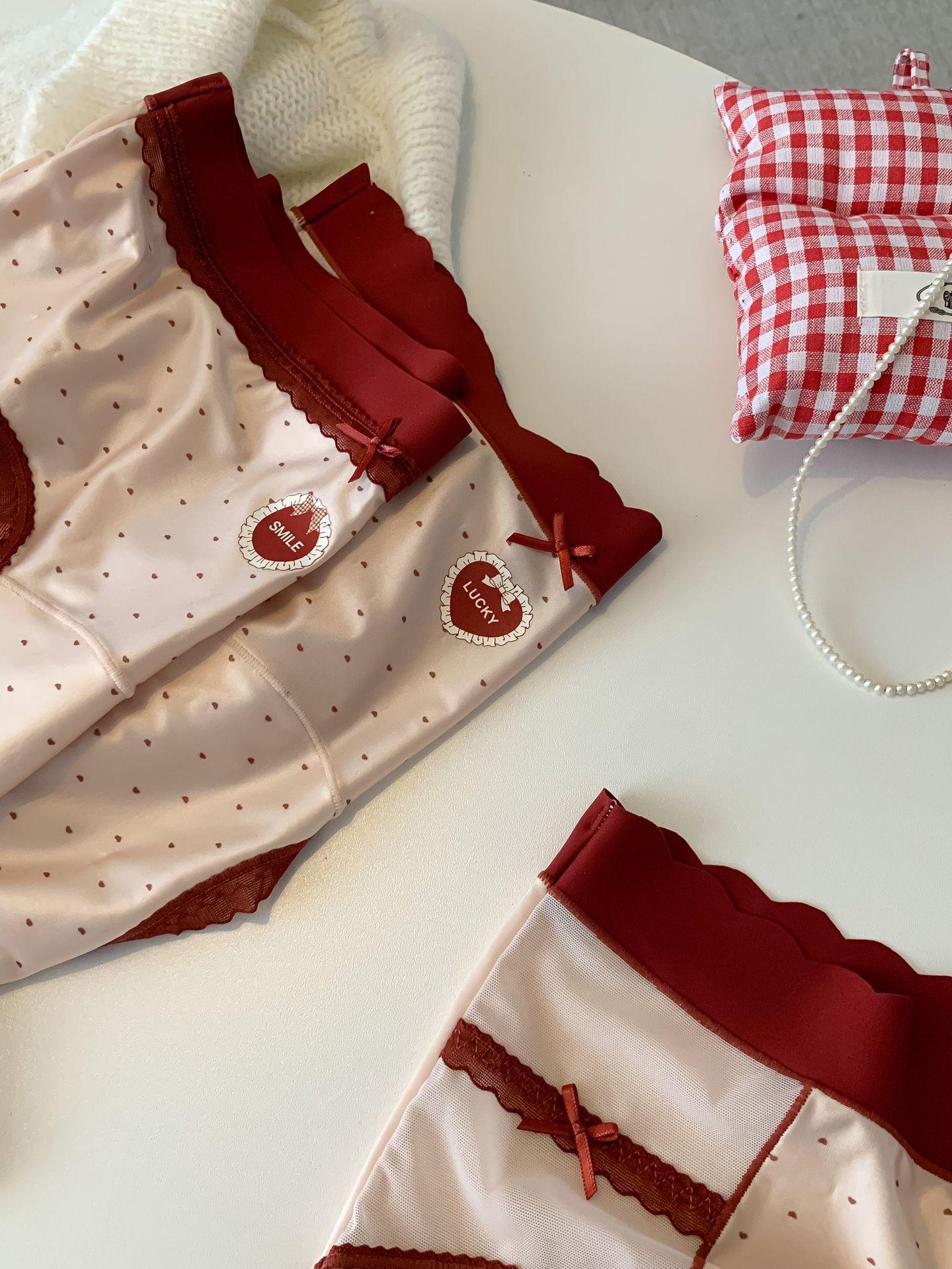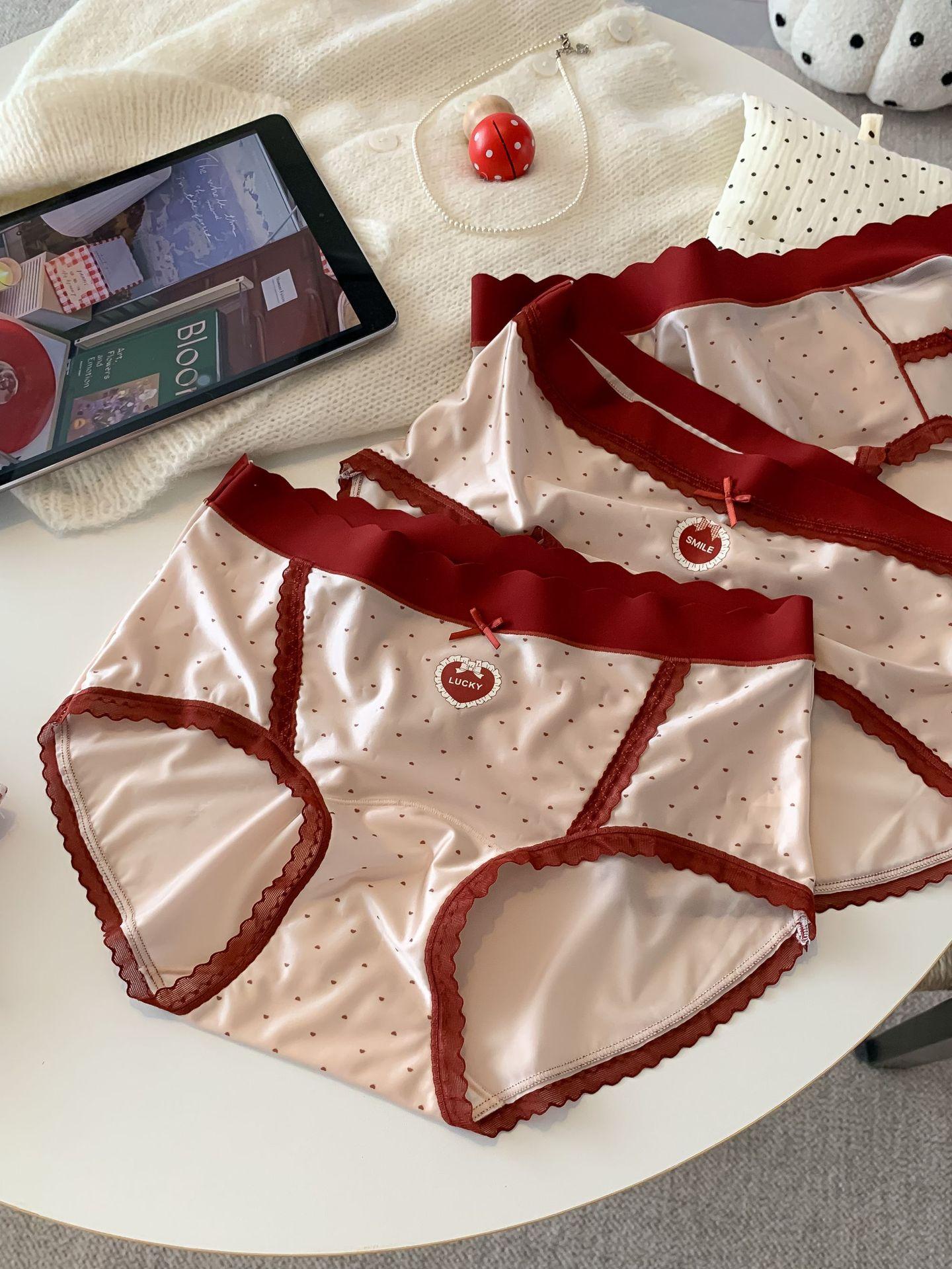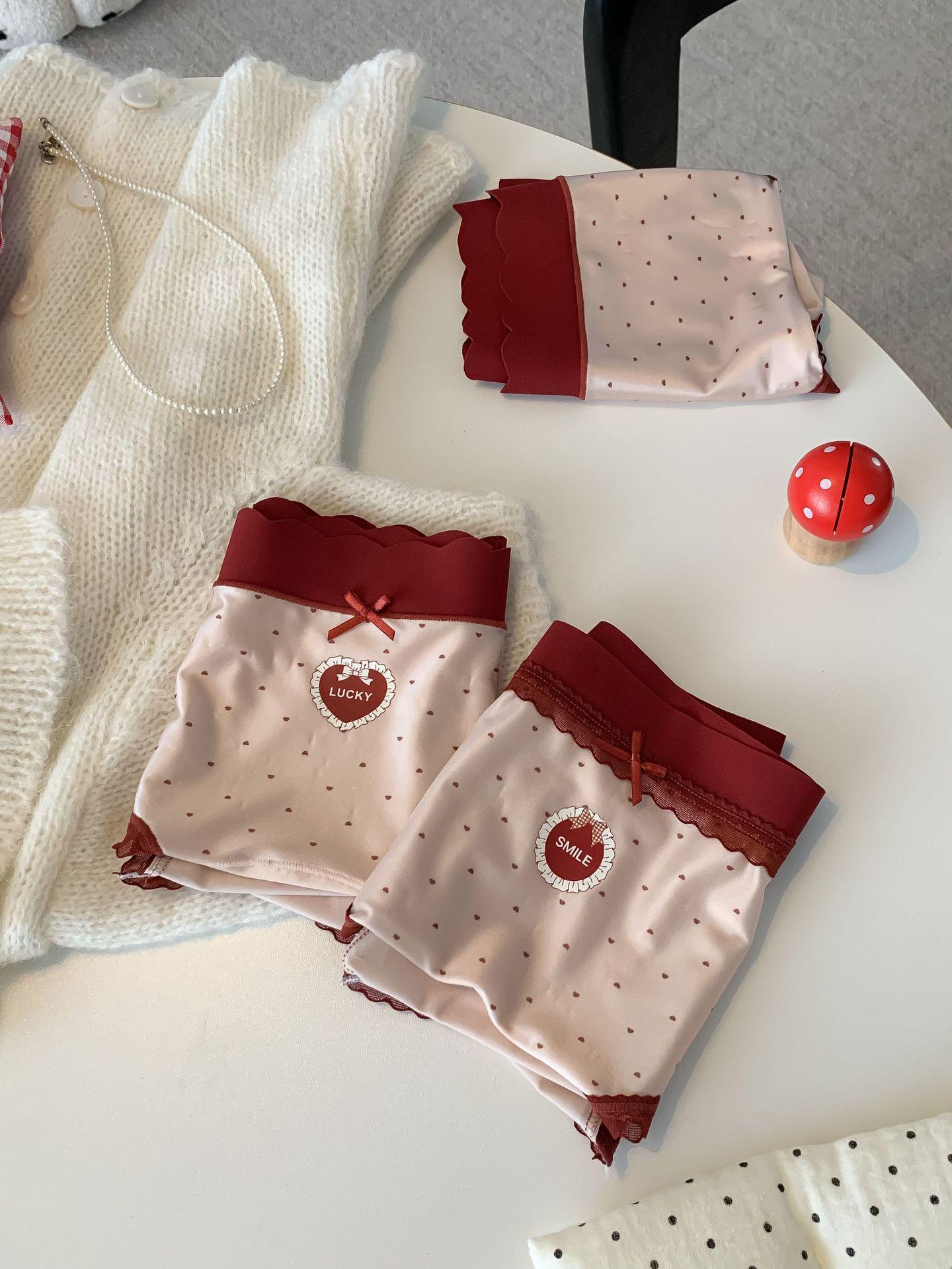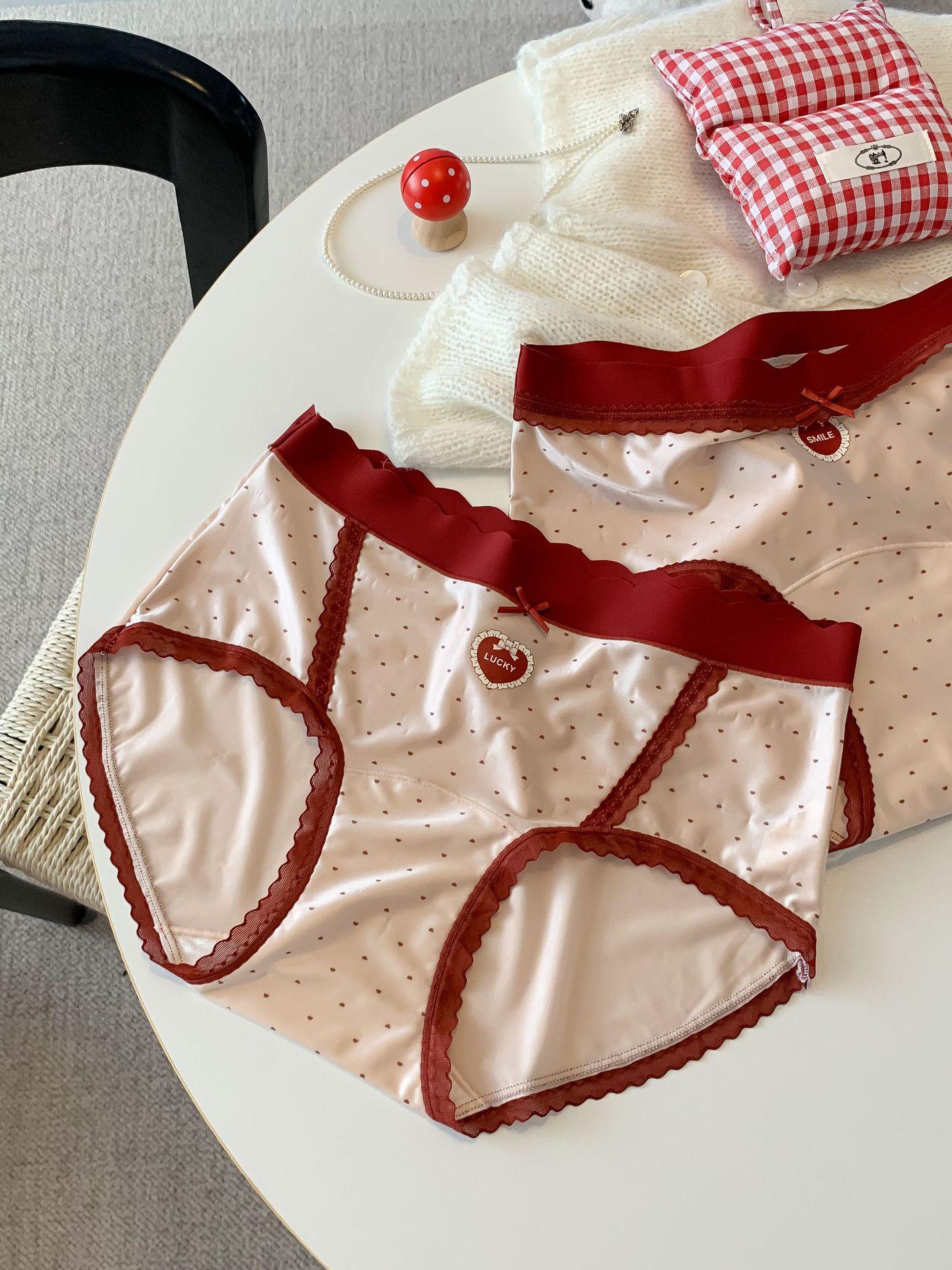 A020 Año Nuevo Ankra Calzones Rojos Grandes para Mujer Cintura Media Estilo Corazón Dulce Calzones Triángulo para Adolescentes Transfronterizo