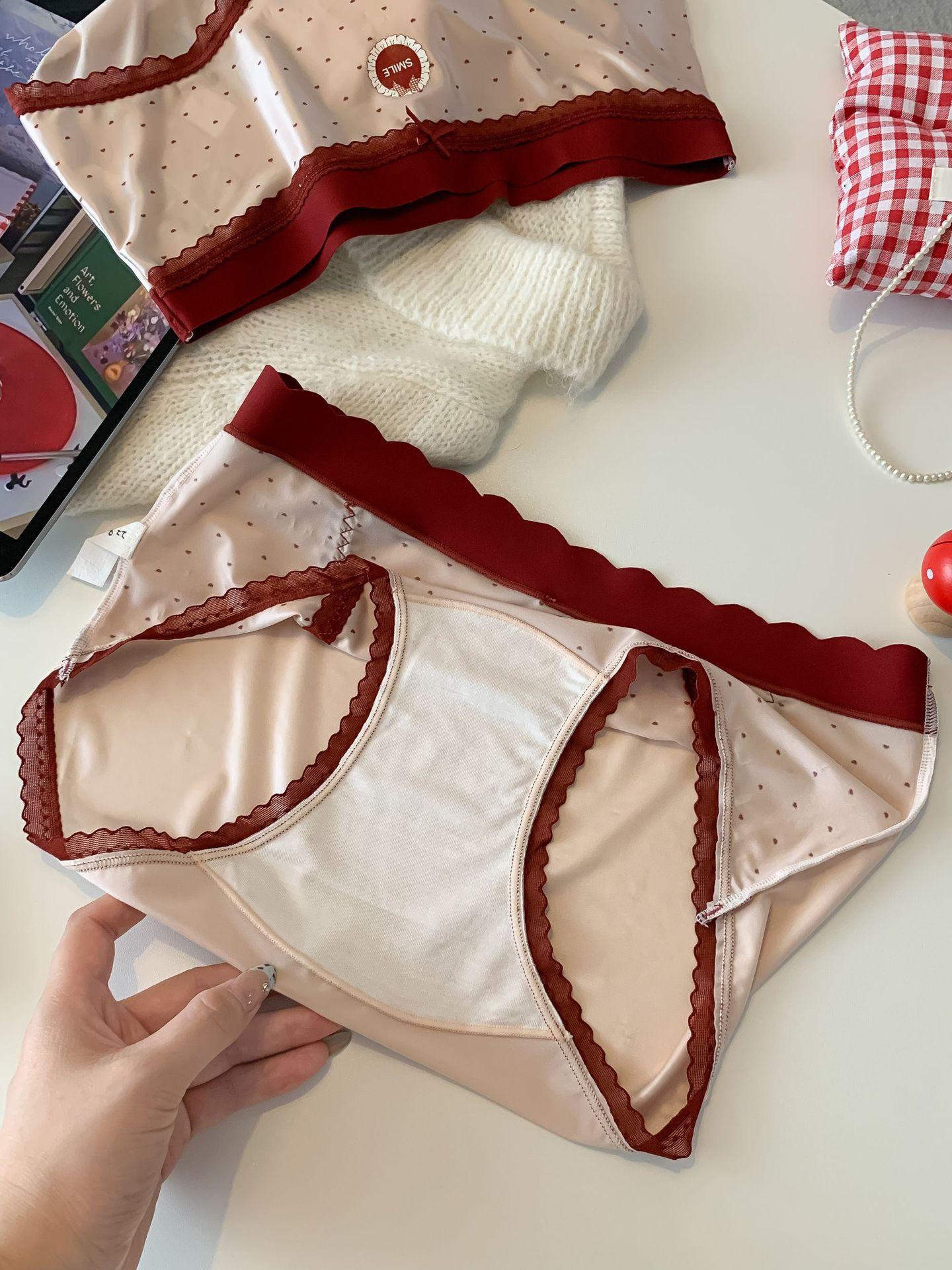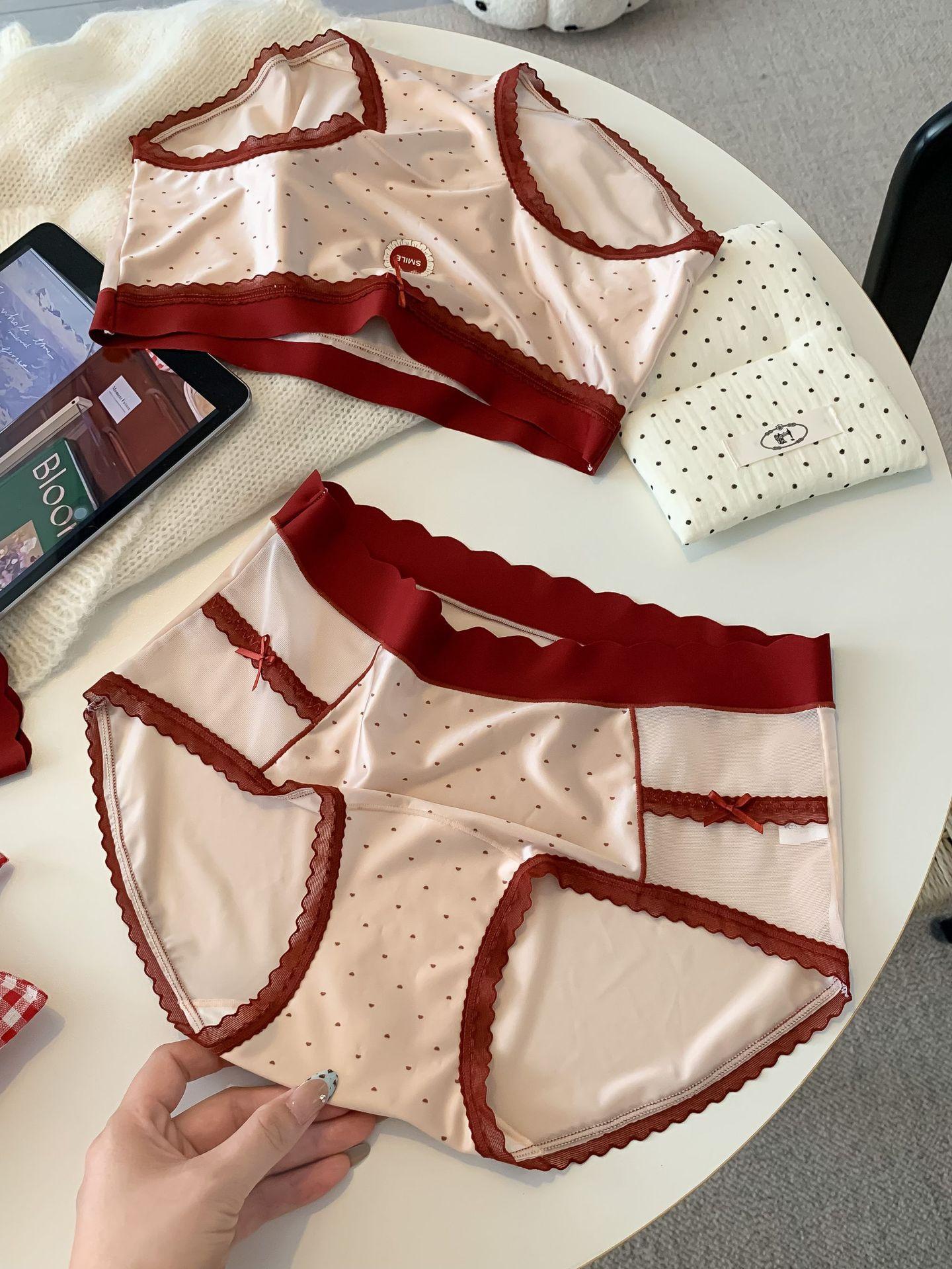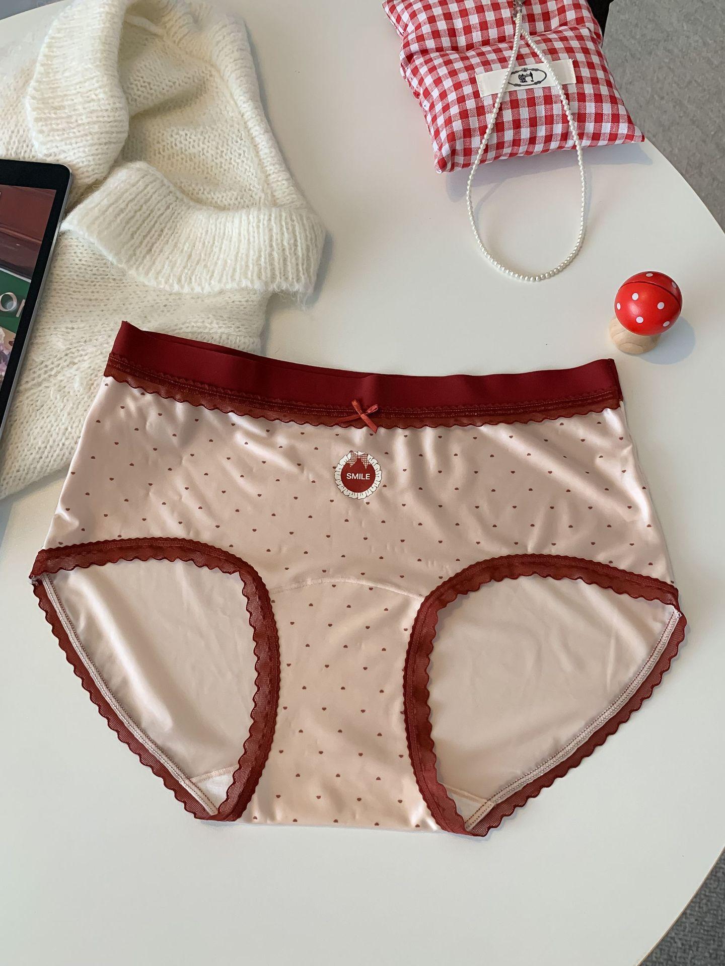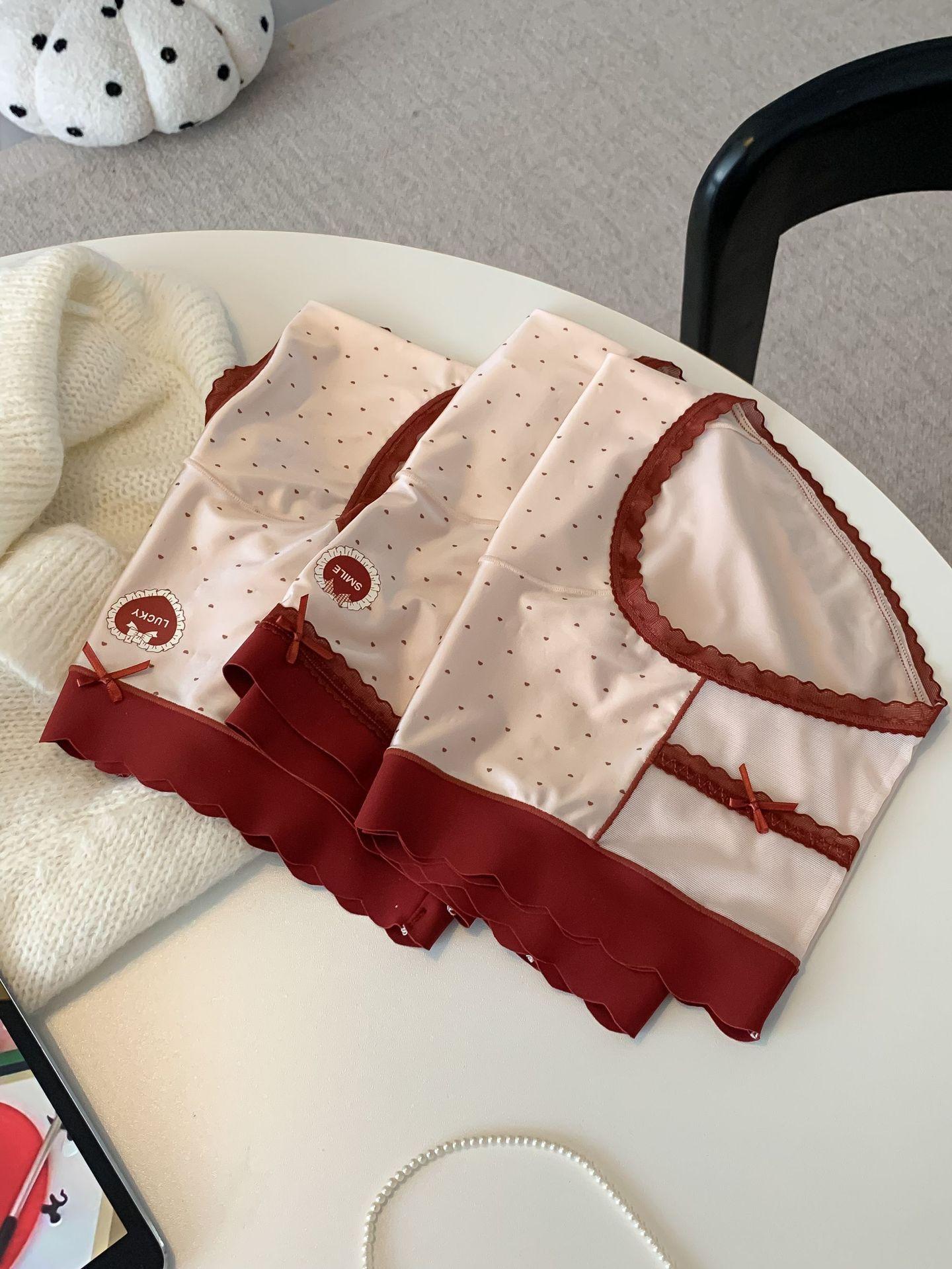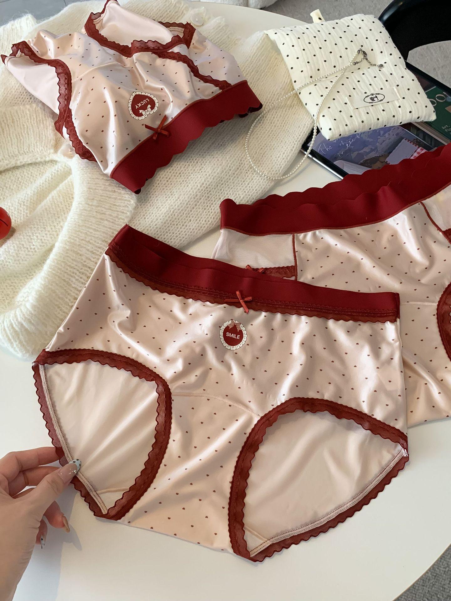 A020 Año Nuevo Ankra Calzones Rojos Grandes para Mujer Cintura Media Estilo Corazón Dulce Calzones Triángulo para Adolescentes Transfronterizo