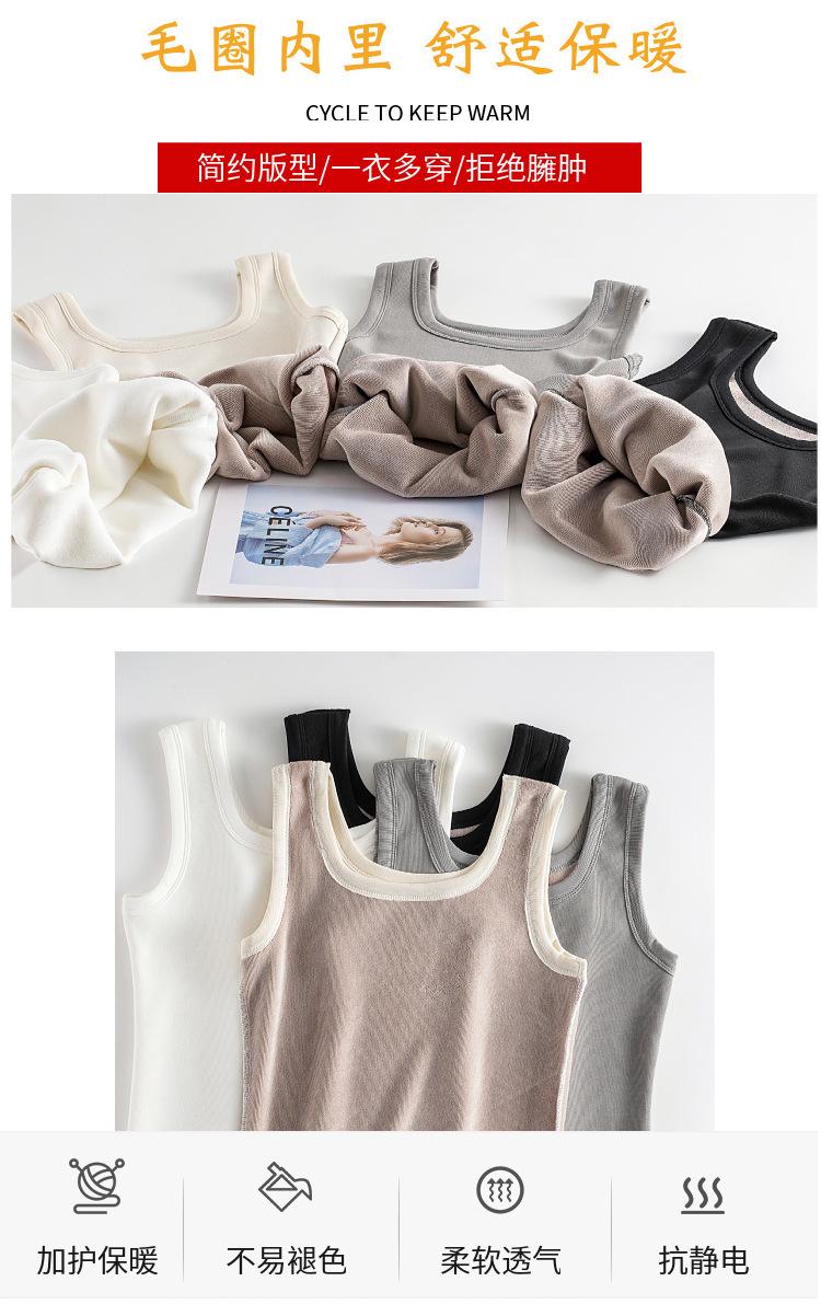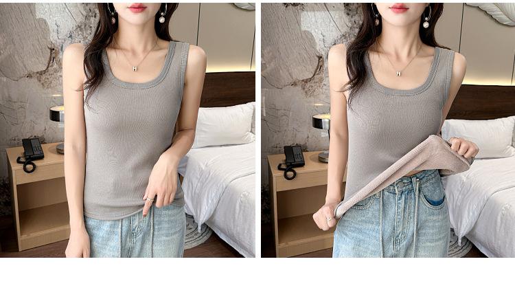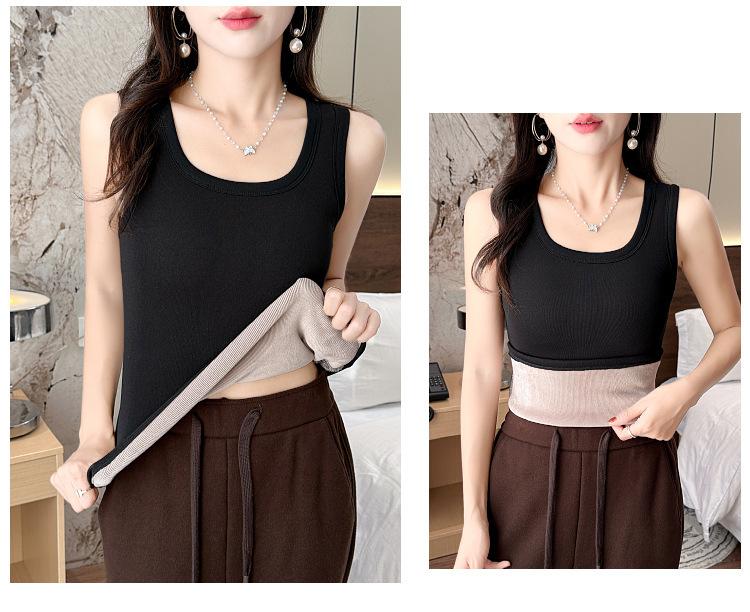 Chaleco cálido con forro polar para mujer, capa base gruesa para otoño e invierno, chaleco de cuello en U, prenda interior, top ajustado, capa base, prenda exterior