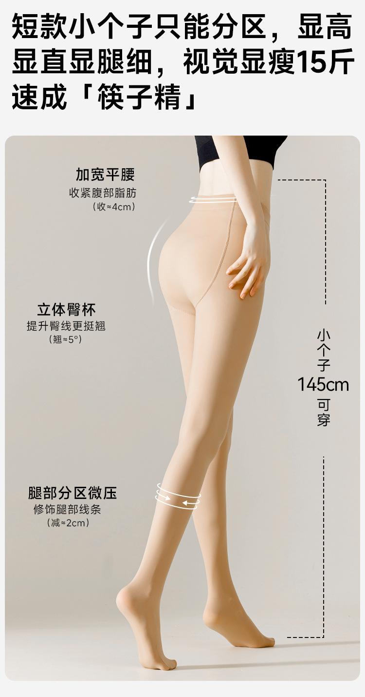 145cm Figura Petite Artefacto Pierna Descubierta Otoño/Invierno Compresión Graduada Leggings Adelgazantes Ocultando Caderas Pantimedias Exteriores Forradas con Vellón