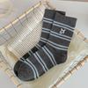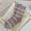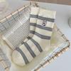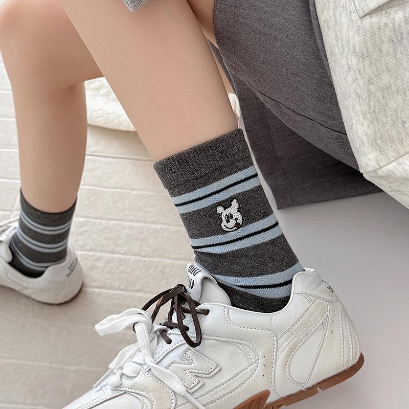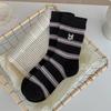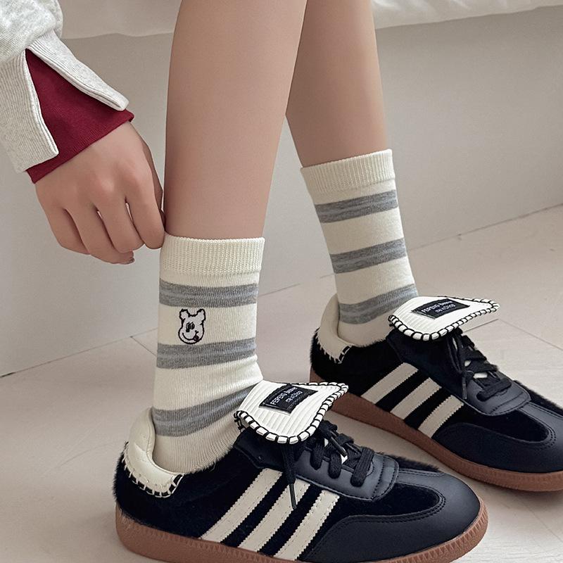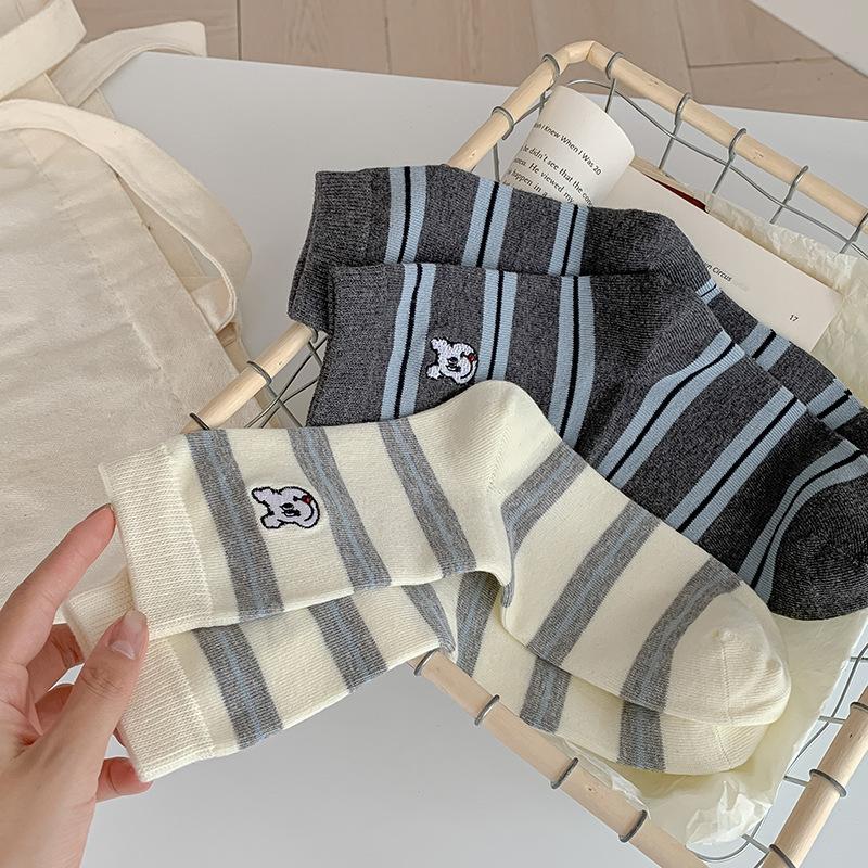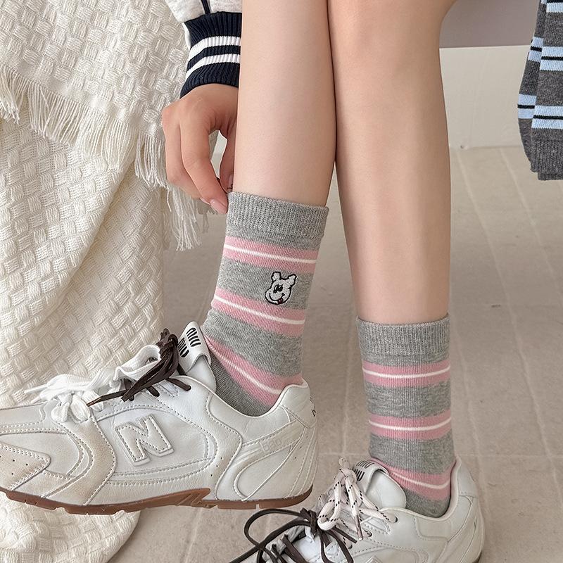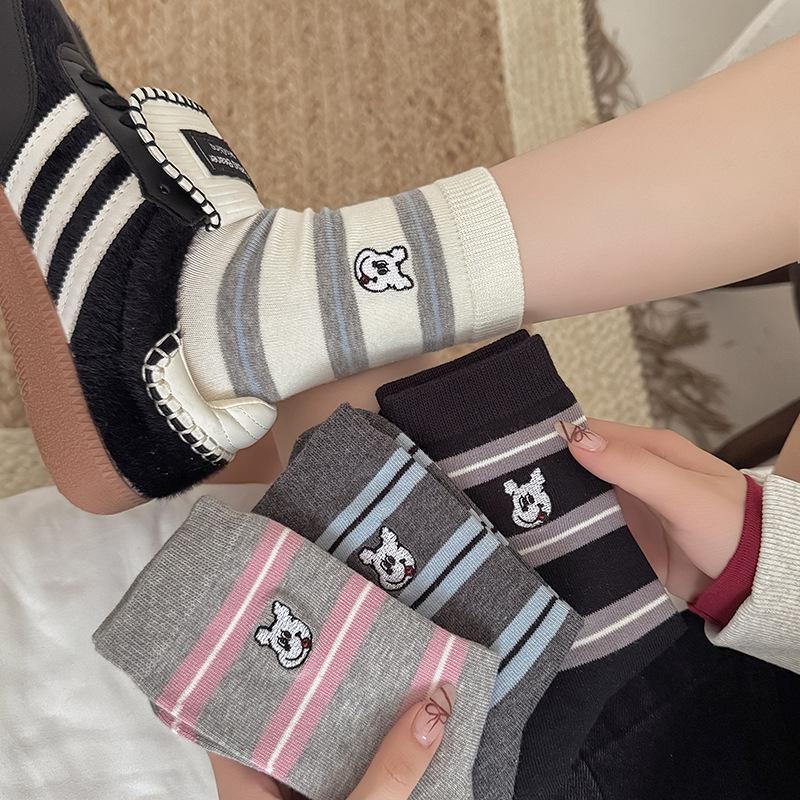 Estilo otoño e invierno calcetines de media caña para mujer estilo coreano calcetines largos versátiles ins versión coreana calcetines gruesos a rayas bordado cachorro de dibujos animados