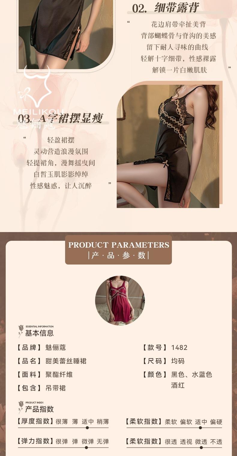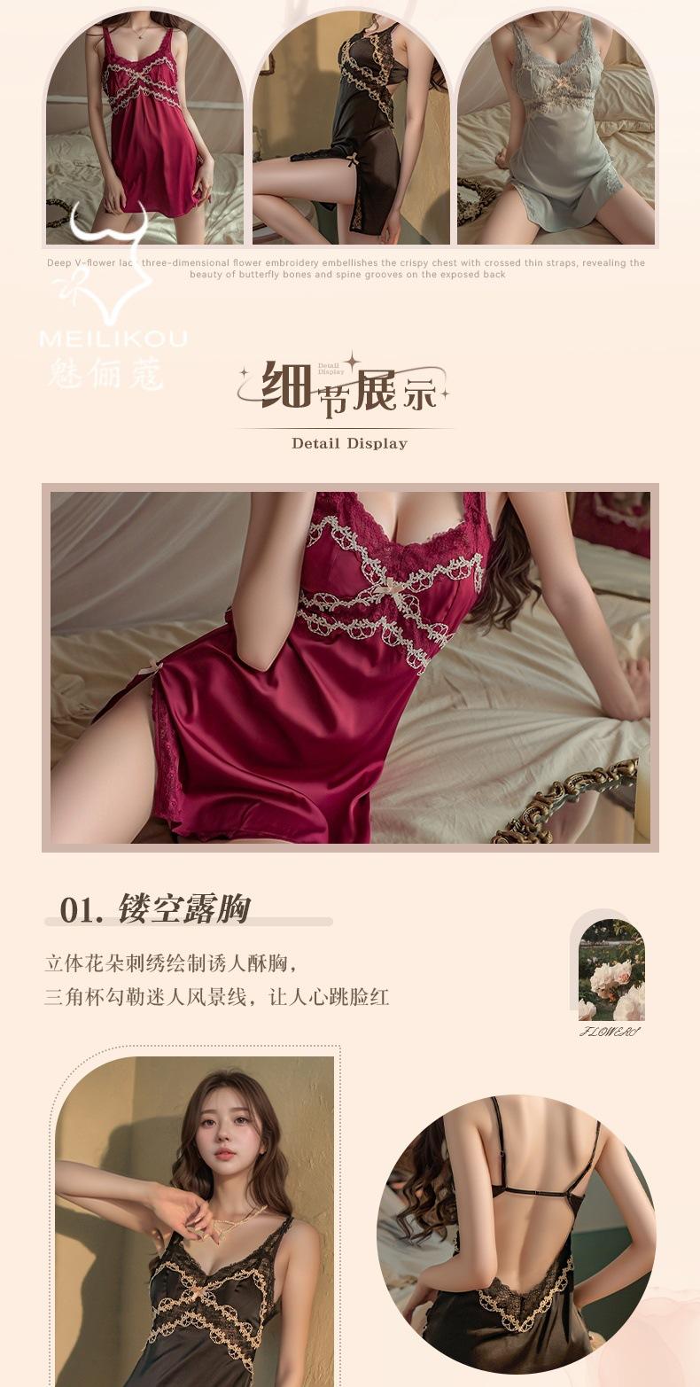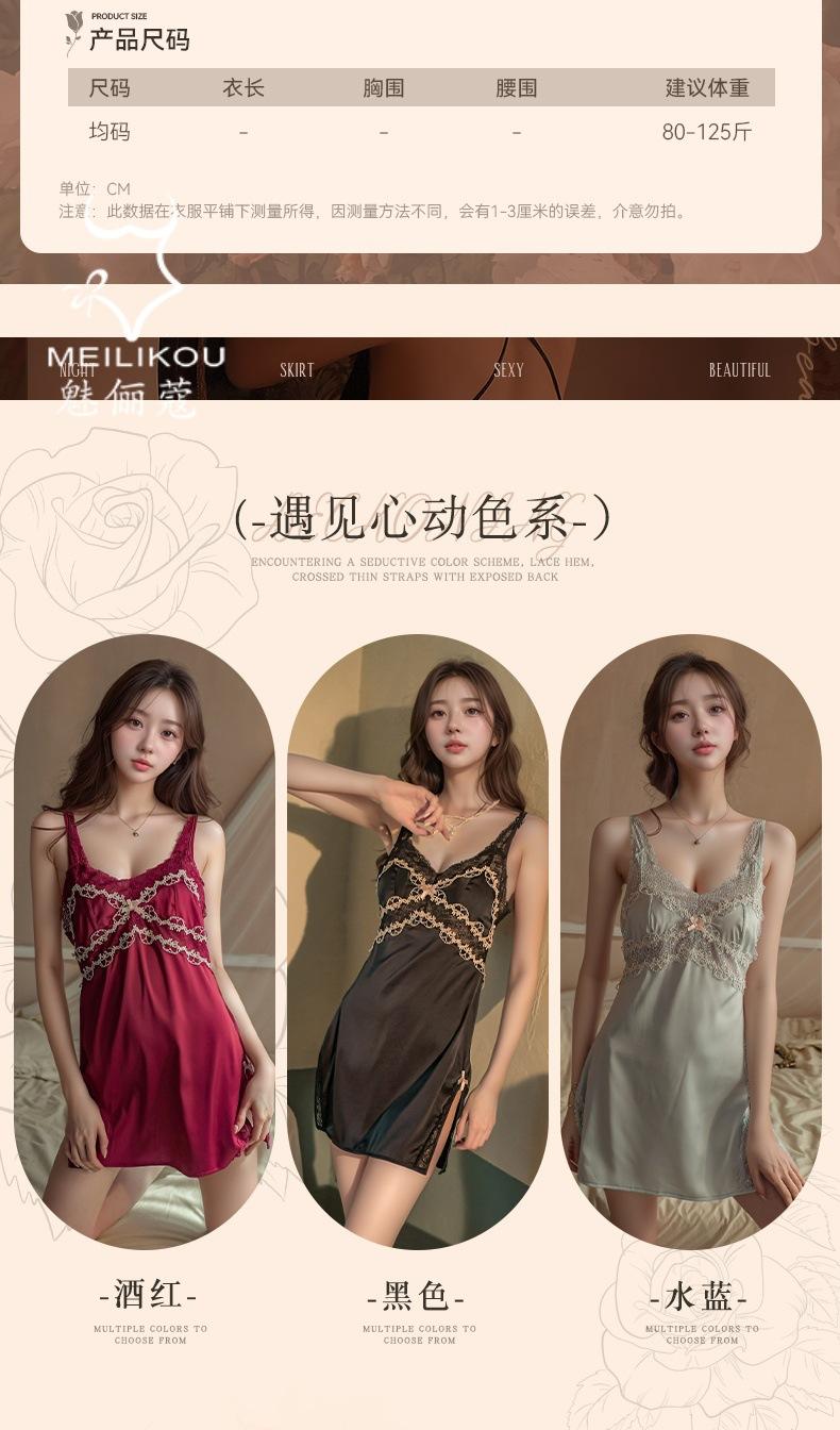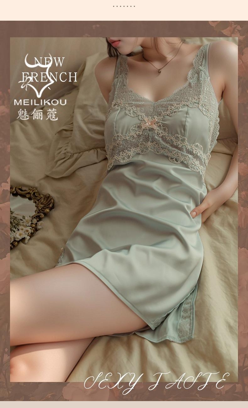 Lencería Sexy Mujer Camisón para Casa Talla Grande Vestido Slip Encaje Tentación Escote en V Profundo Satín Divertido Cómodo Camisón 1482