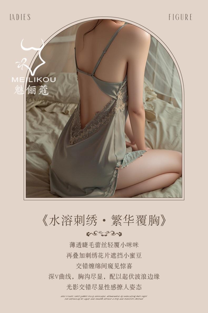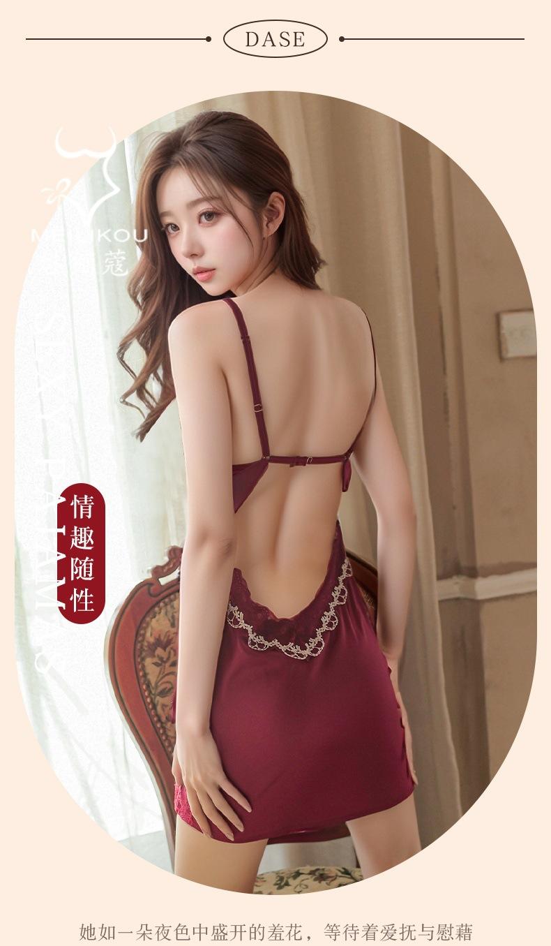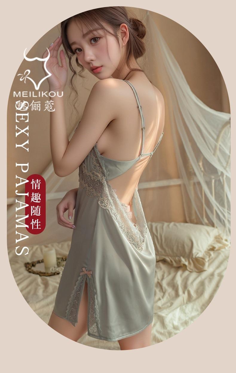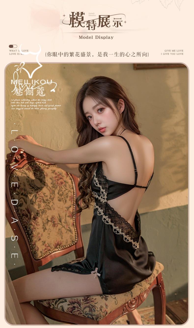 Lencería Sexy Mujer Camisón para Casa Talla Grande Vestido Slip Encaje Tentación Escote en V Profundo Satín Divertido Cómodo Camisón 1482