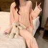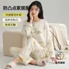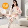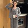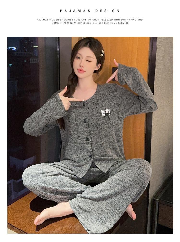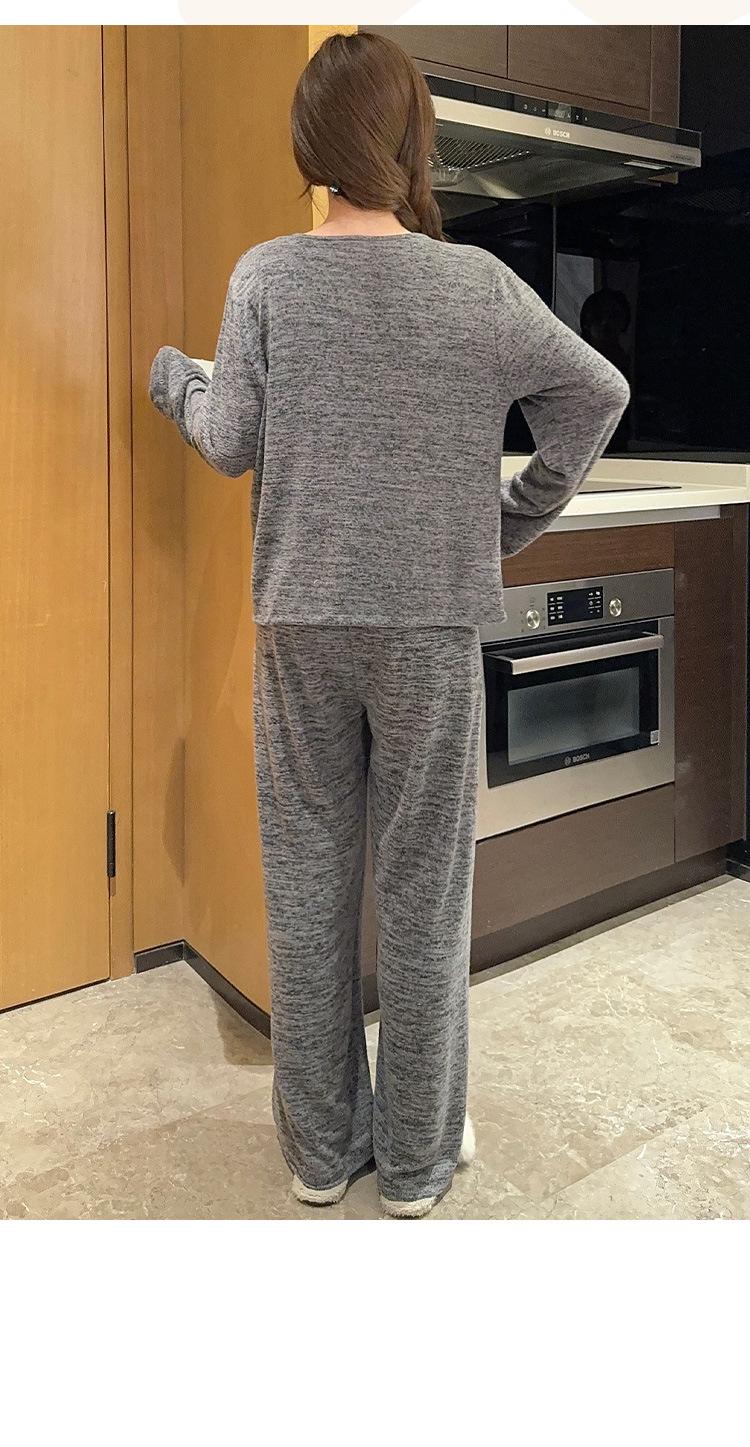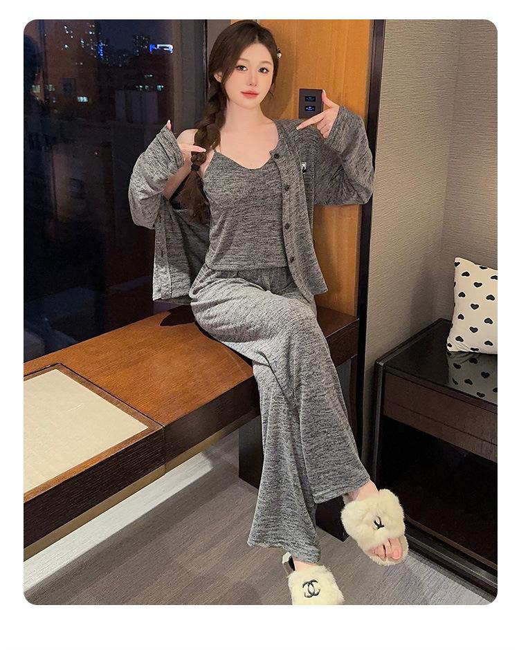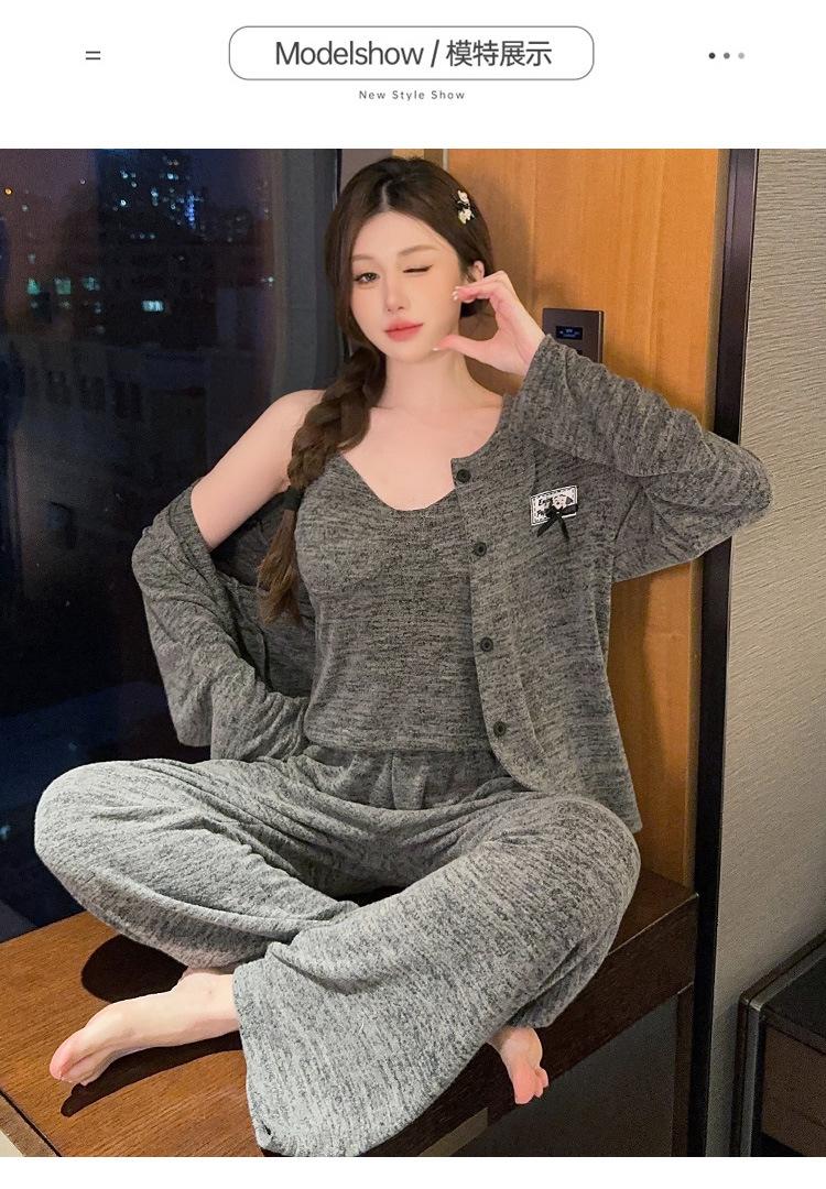 Conjunto de pijama de tres piezas de chaleco de algodón y cachemira de color para mujer, otoño e invierno, gris oscuro, casual, manga larga, pantalón largo, ropa para el hogar con copas en el pecho
