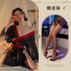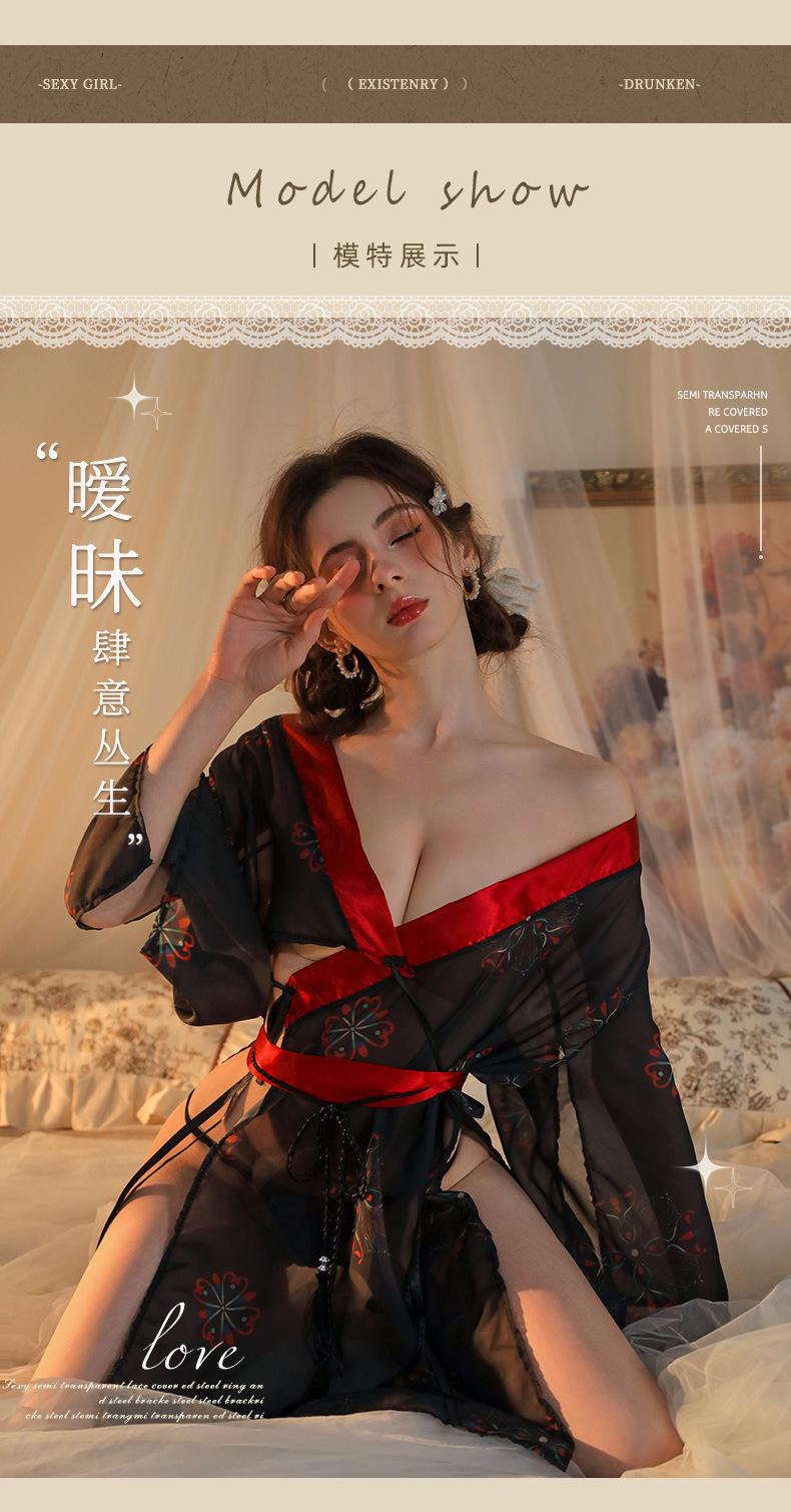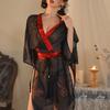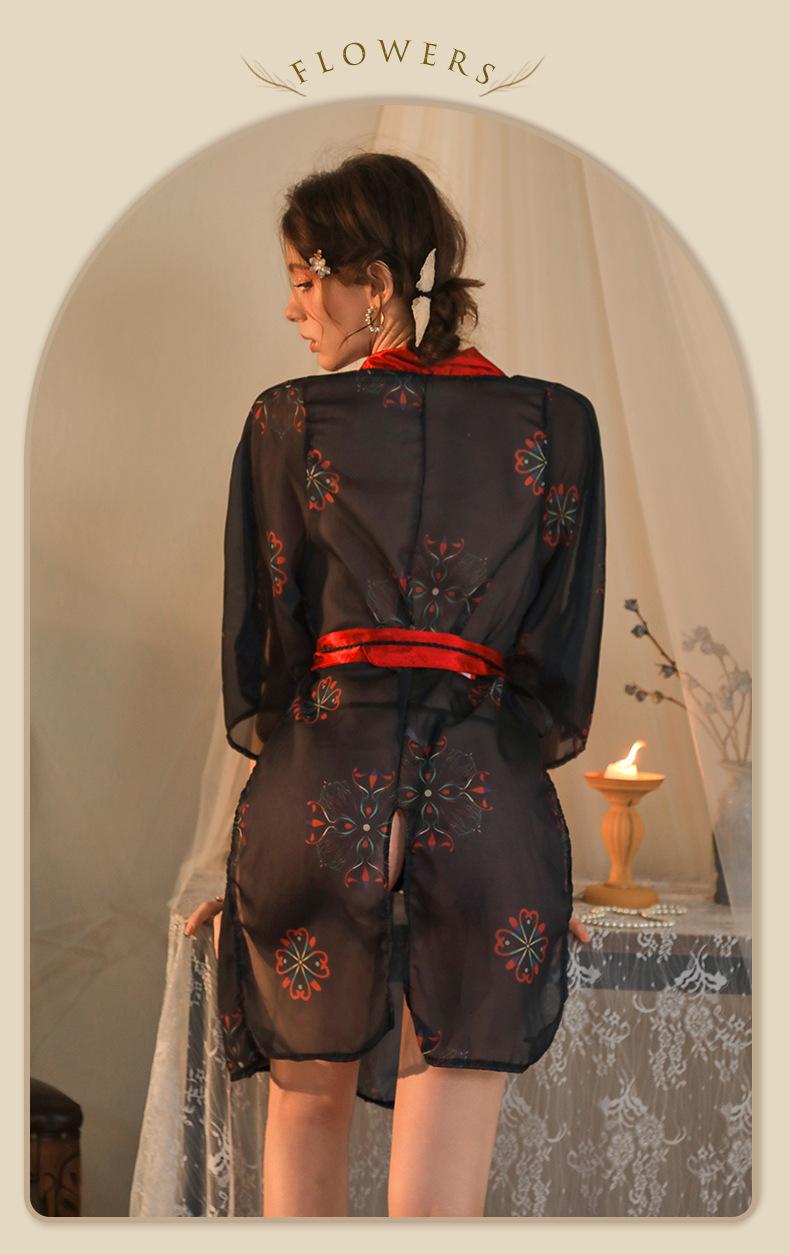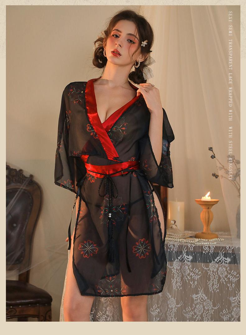 Lencería Sexy Uniforme Deseo Puro Pijama Sin Quitar Estampado Negro Kimono Japonés Estilo Conjunto