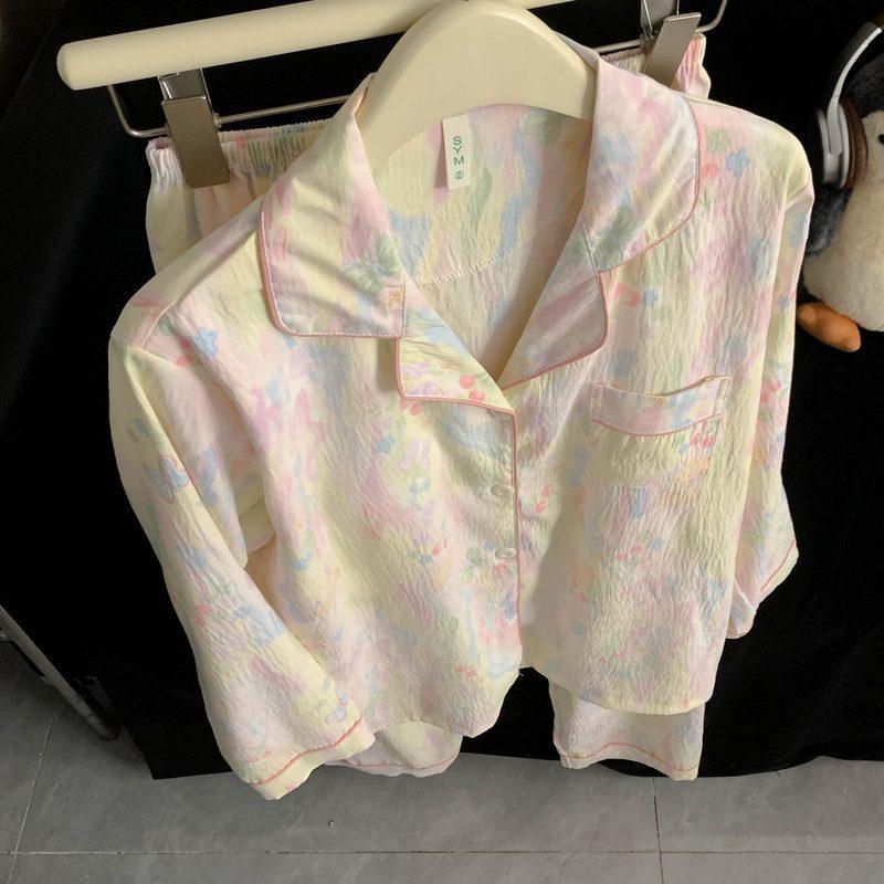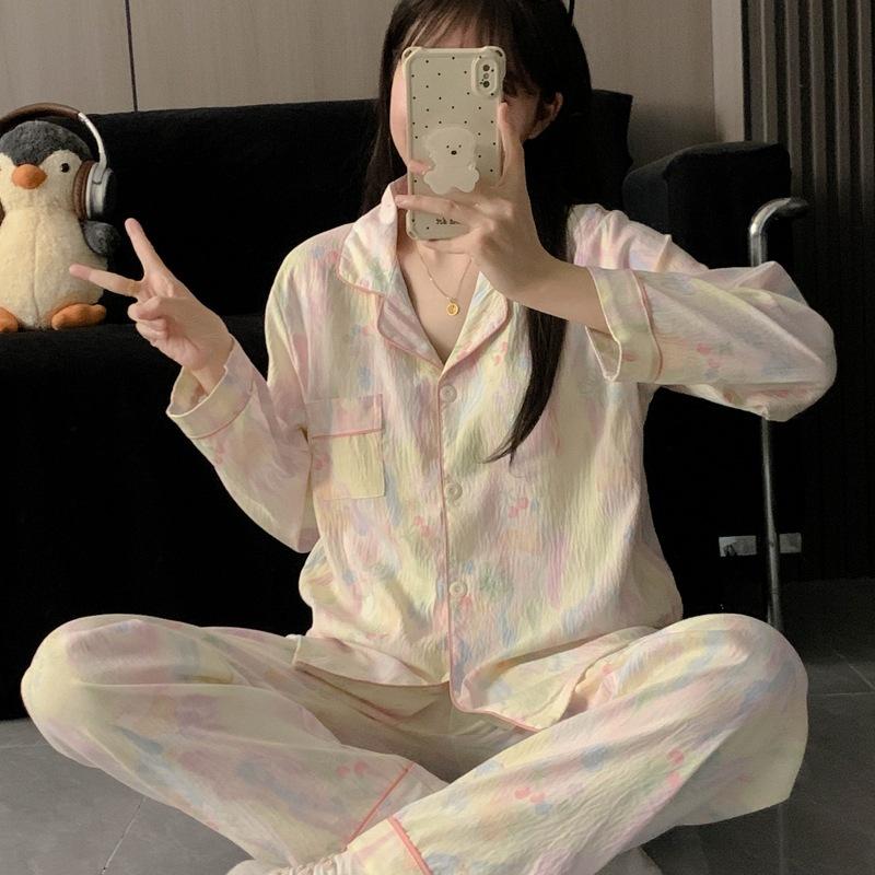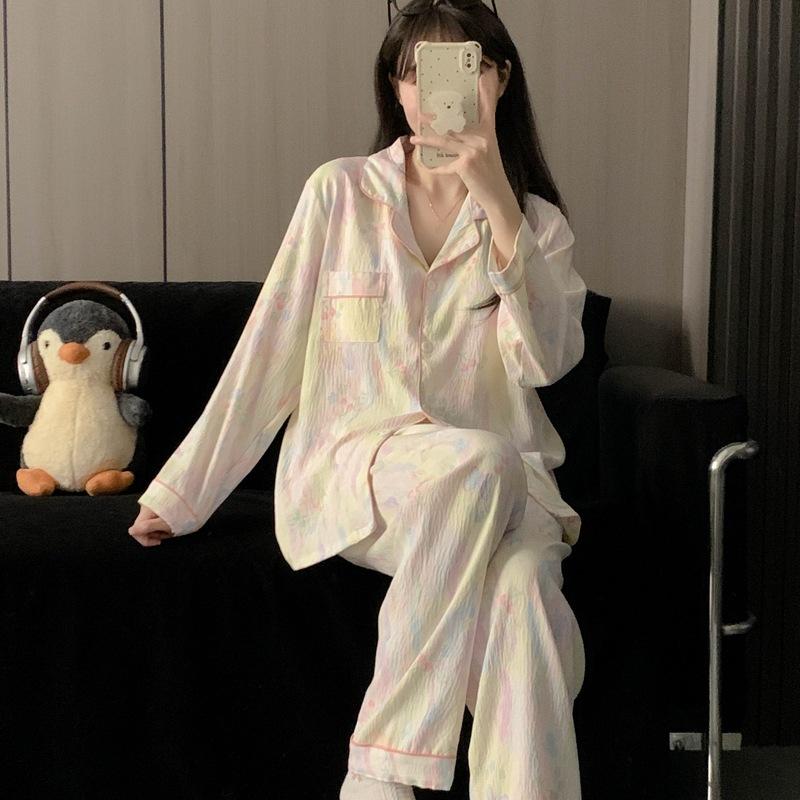 Fabricante Transfronterizo Dulce Japonés Talla Grande Pijamas Mujer Niña Rosa Mariposa Tie-dye Primavera Otoño Manga Larga Pantalón Largo Ropa de Casa