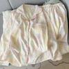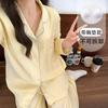 (No bust pads) [Cloud Cotton] Yellow Plaid Blue Trim (Long Sleeve + Long Pants)