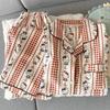 (No bust pads) [Cloud Cotton] Soybean Powder Gingham (Long Sleeve + Long Pants)