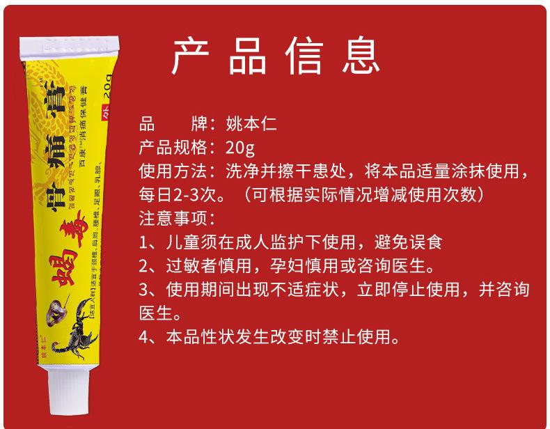 Fábrica de Origen OEM Etiqueta Privada Personalización Yao Benren Veneno de Escorpión Yeso para el Dolor Óseo Cintura, Pierna y Malestar Articular Ungüento Crema Procesamiento