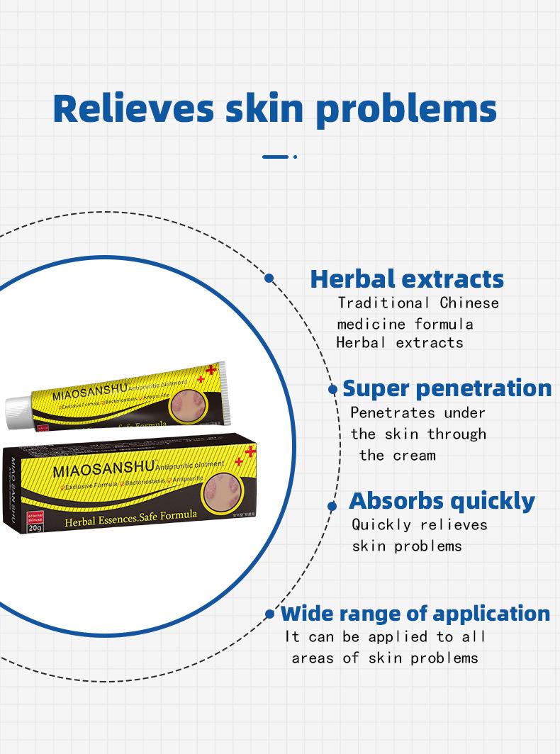 Crema para Aliviar la Picazón Miao San Shu Exclusiva Transfronteriza Versión en Inglés Crema para el Cuidado de la Piel Crema Antipicazón y Antibacteriana Crema para la Piel Ventas Directas de Fábrica de Origen