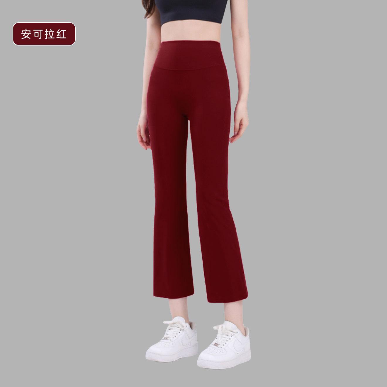 Pantalones de Yoga de Ocho Puntos de Tubo de Alta Elasticidad Sin Líneas Embarazosas, Levanta Glúteos de Cintura Alta, Pantalones Deportivos Acampanados Fitness Sensación Desnuda de Sensación Fresca