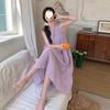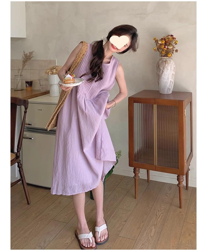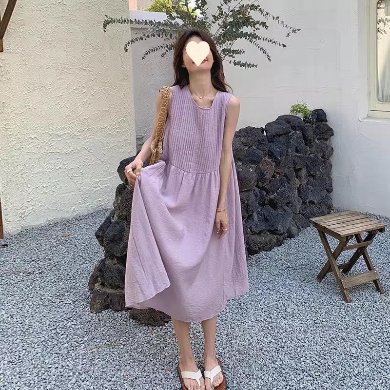 Francés primer amor leche dulce púrpura sin mangas vestido chaleco mujeres verano sensación de viento suave vestido largo