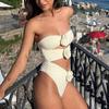 Traje de baño europeo y americano 2024 nuevo para mujer top de tubo flor 3D hueco de una pieza bikini traje de baño de una pieza al por mayor