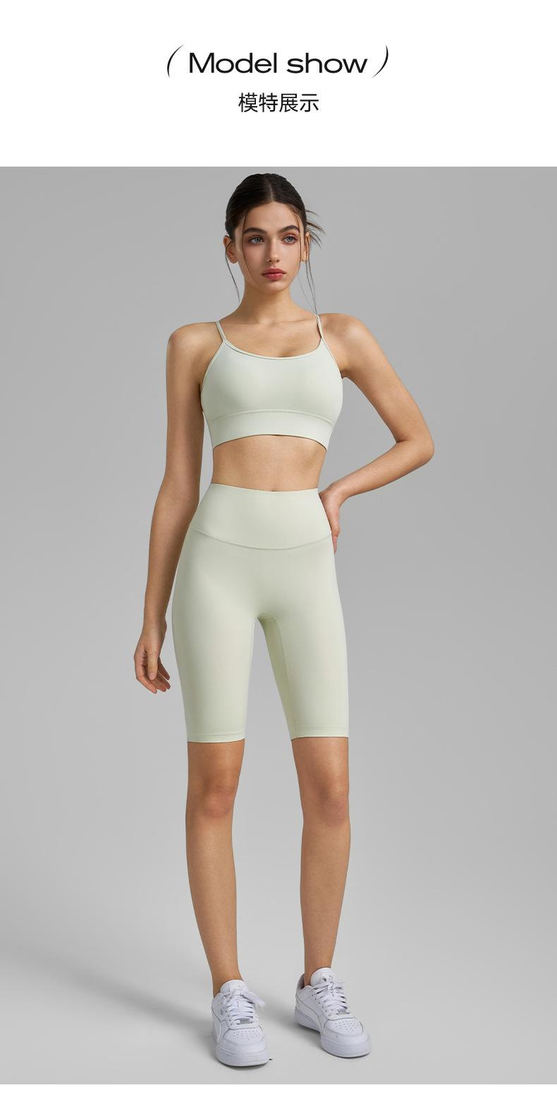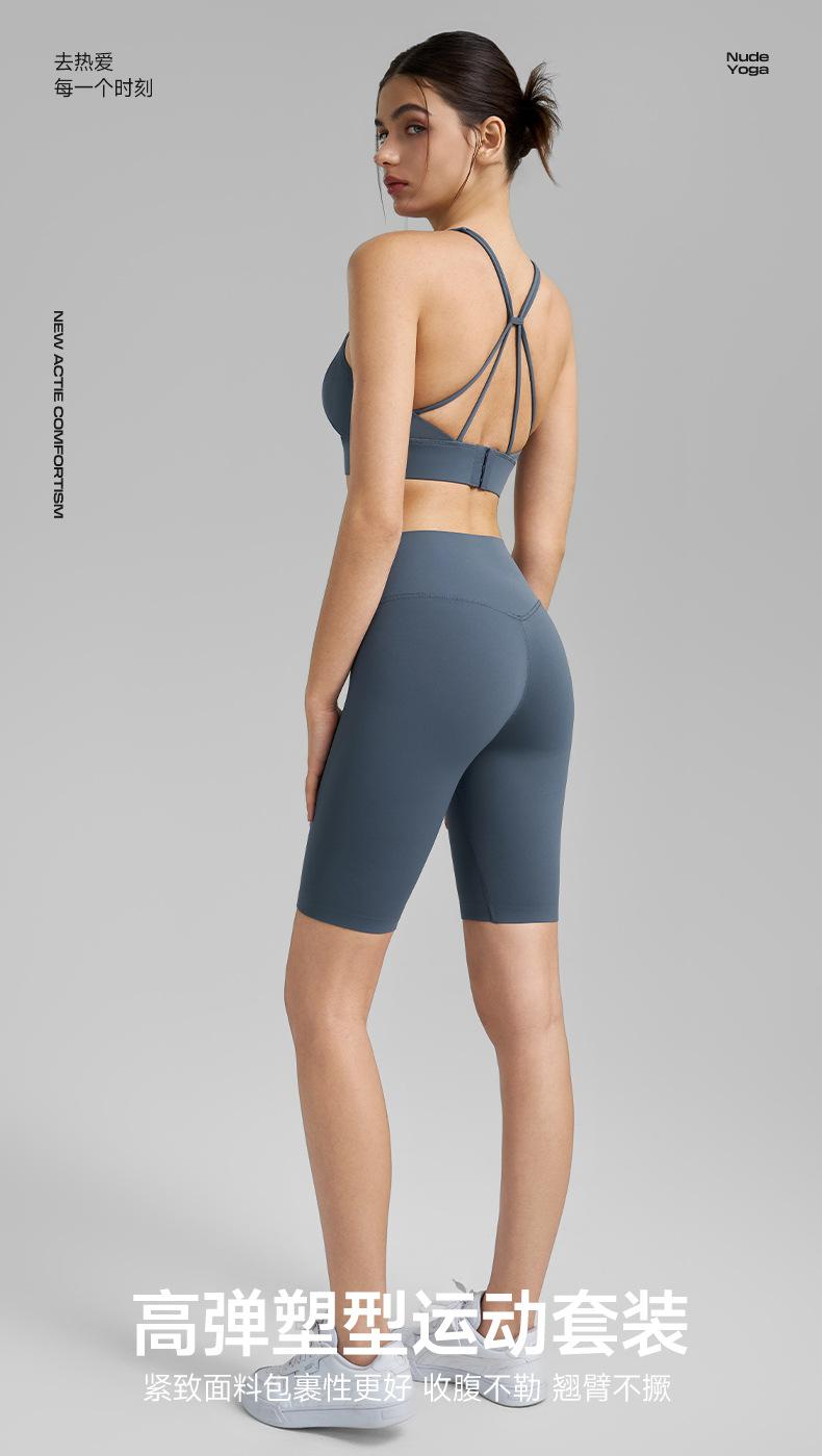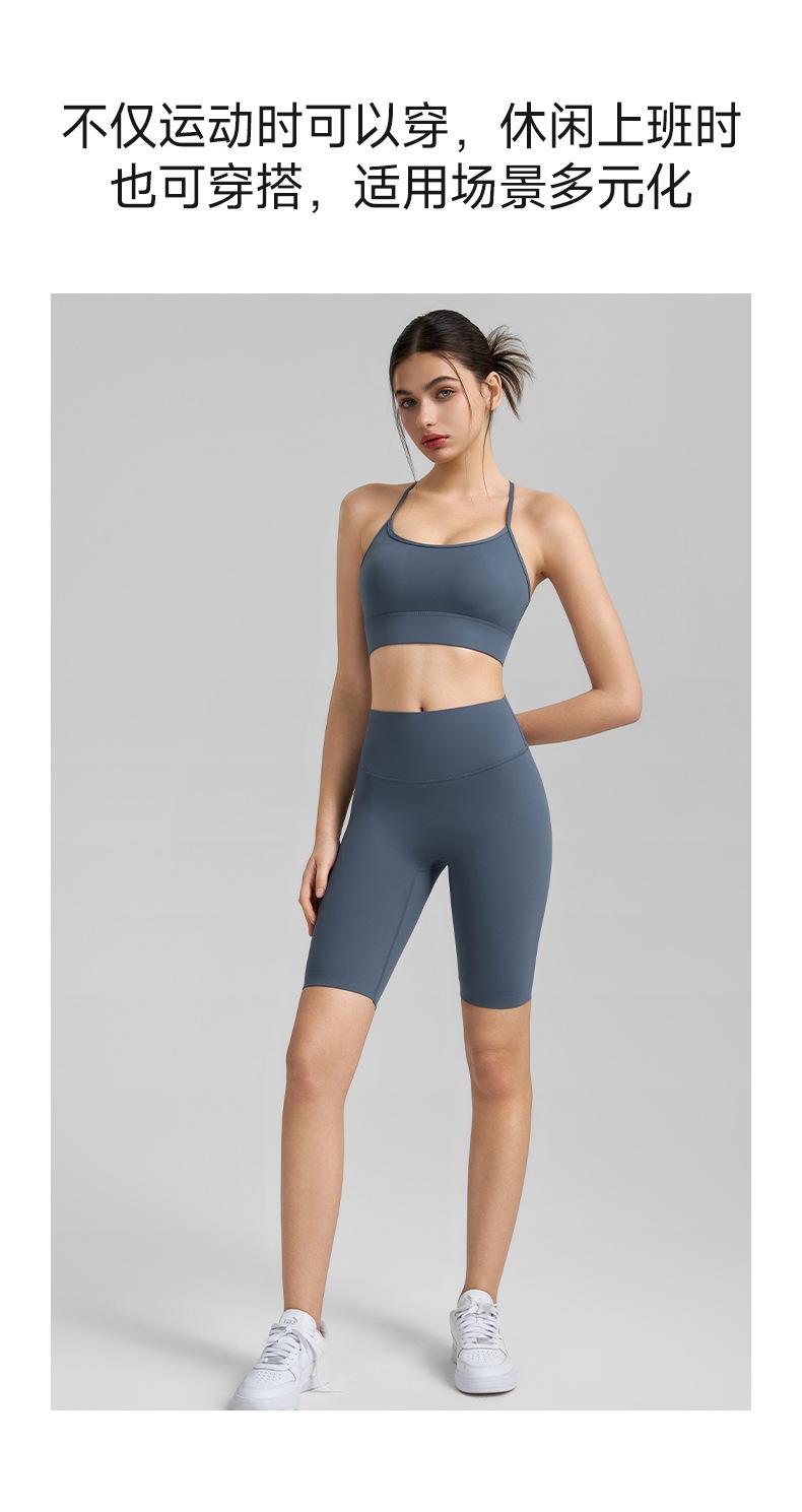 Traje de Shorts de Lycra para Yoga para Mujer Conjunto de Dos Piezas Primavera y Verano Sexy Espalda Hermosa Copa Fija Ropa Interior Deportiva Cadera Pantalones de Tres Piezas