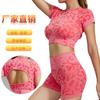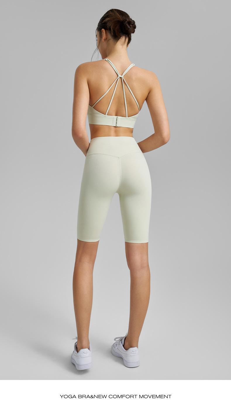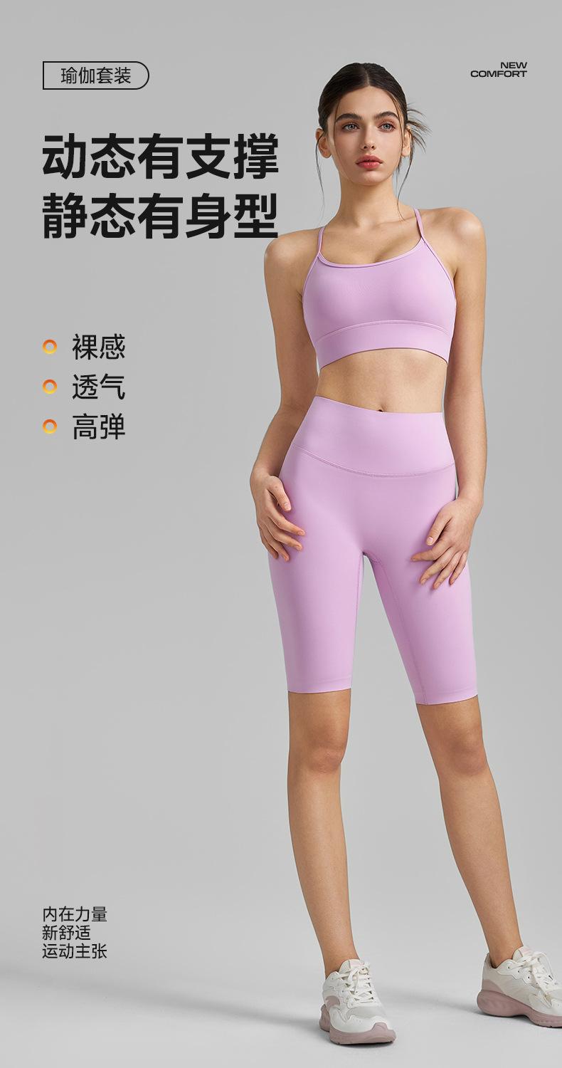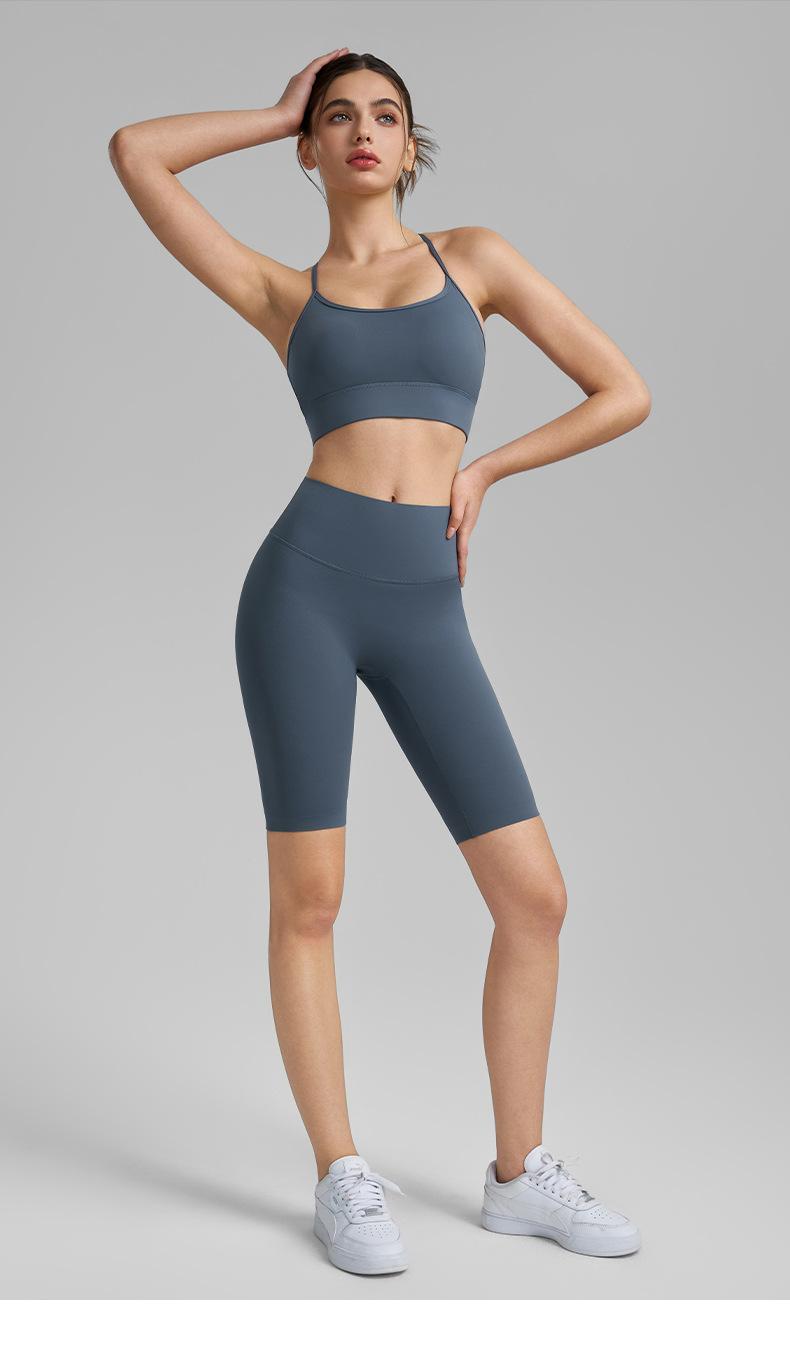 Traje de Shorts de Lycra para Yoga para Mujer Conjunto de Dos Piezas Primavera y Verano Sexy Espalda Hermosa Copa Fija Ropa Interior Deportiva Cadera Pantalones de Tres Piezas