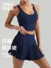 Falda de Bolsillo para Yoga Falda de Tenis Plisada para Mujer Cintura Alta Bádminton Look Adelgazante Falso Dos Piezas Anti-Exposición Falda Deportiva de Fitness