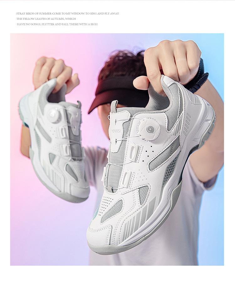 Zapatos casuales de bádminton con hebilla giratoria de nuevo estilo, transpirables, estilo para pareja, ligeros, zapatos deportivos de tenis de mesa, zapatos de entrenamiento de tenis para hombre