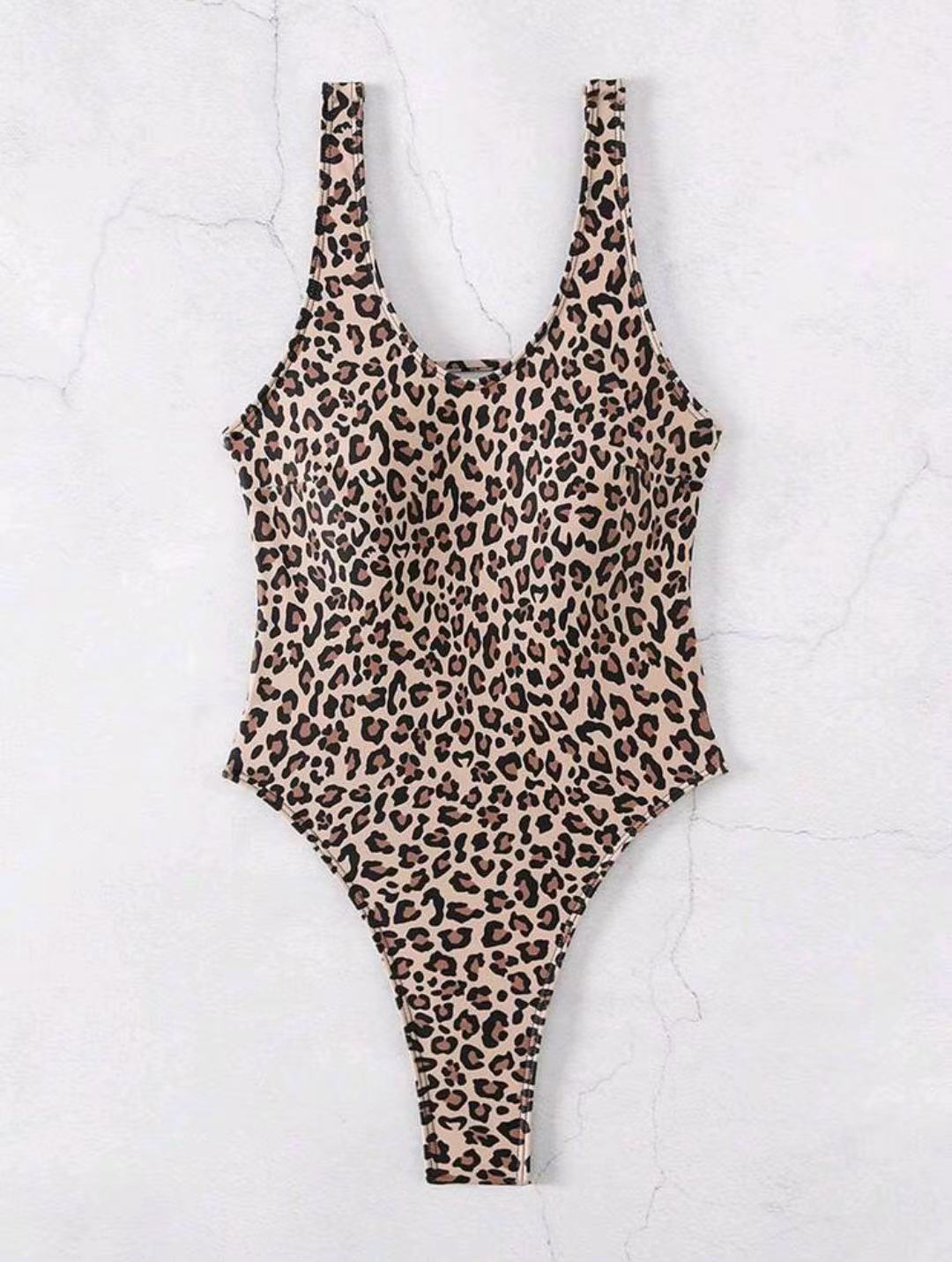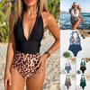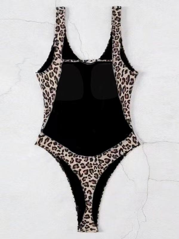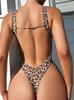 Traje de Baño Entero Estampado de Leopardo Transfronterizo Europeo y Americano Nuevo Bikini Sexy Ajustado sin Espalda para Mujer Ropa de Baño de Carreras de Secado Rápido