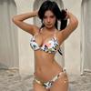 Bikini Sexy Halterneck de Triángulo Dividido Multicolor Estampado Europeo y Americano 2025 Traje de Baño Bikini para Mujer