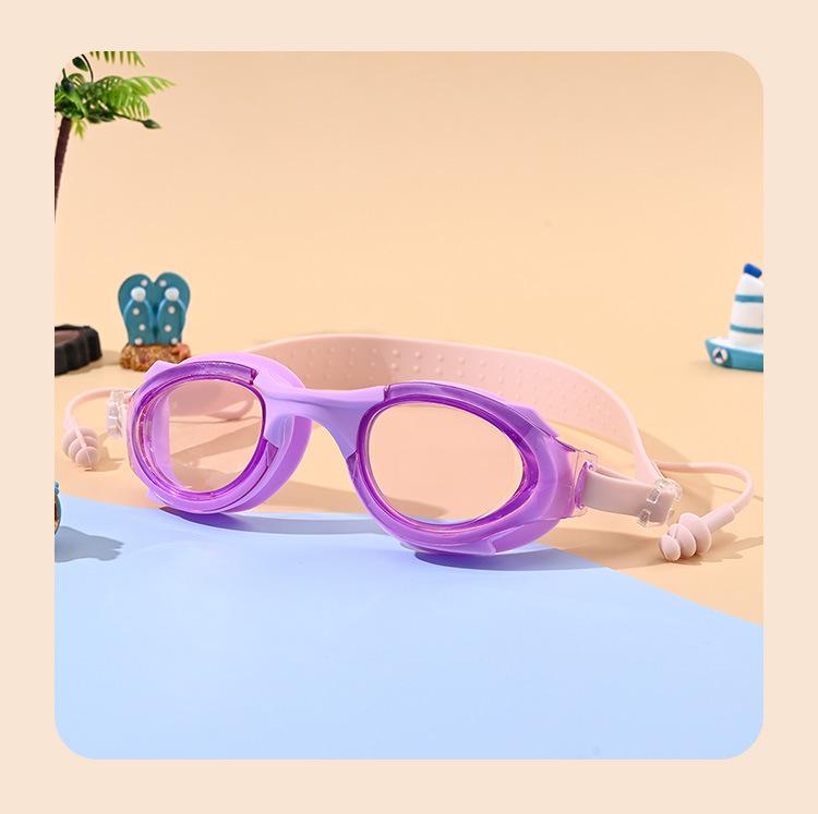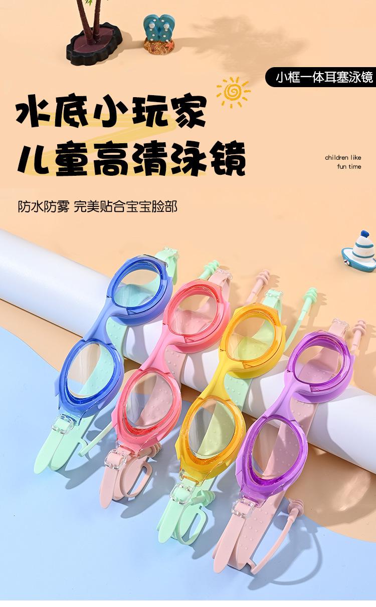 Gafas de Natación para Niños Impermeables y Antivaho Alta Definición Montura Pequeña Puente Nasal Ajustable Tapones para los Oídos de Una Pieza Gafas de Natación Profesionales de Una Pieza para Niños y Niñas