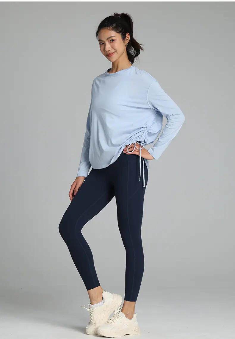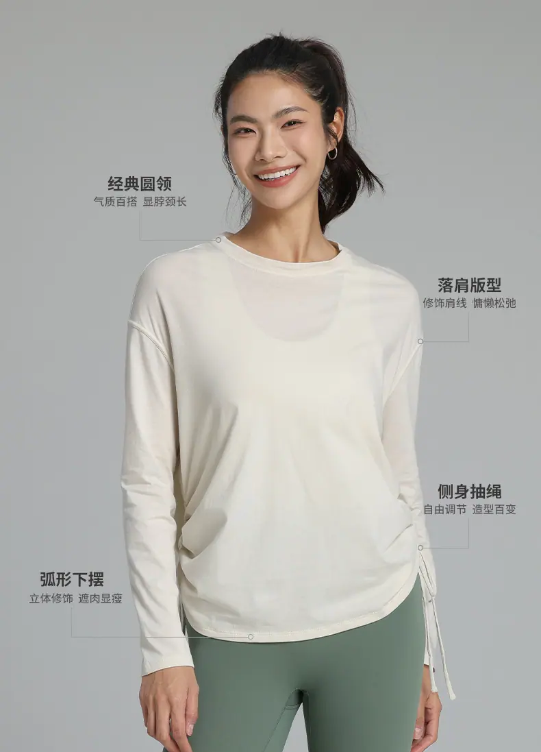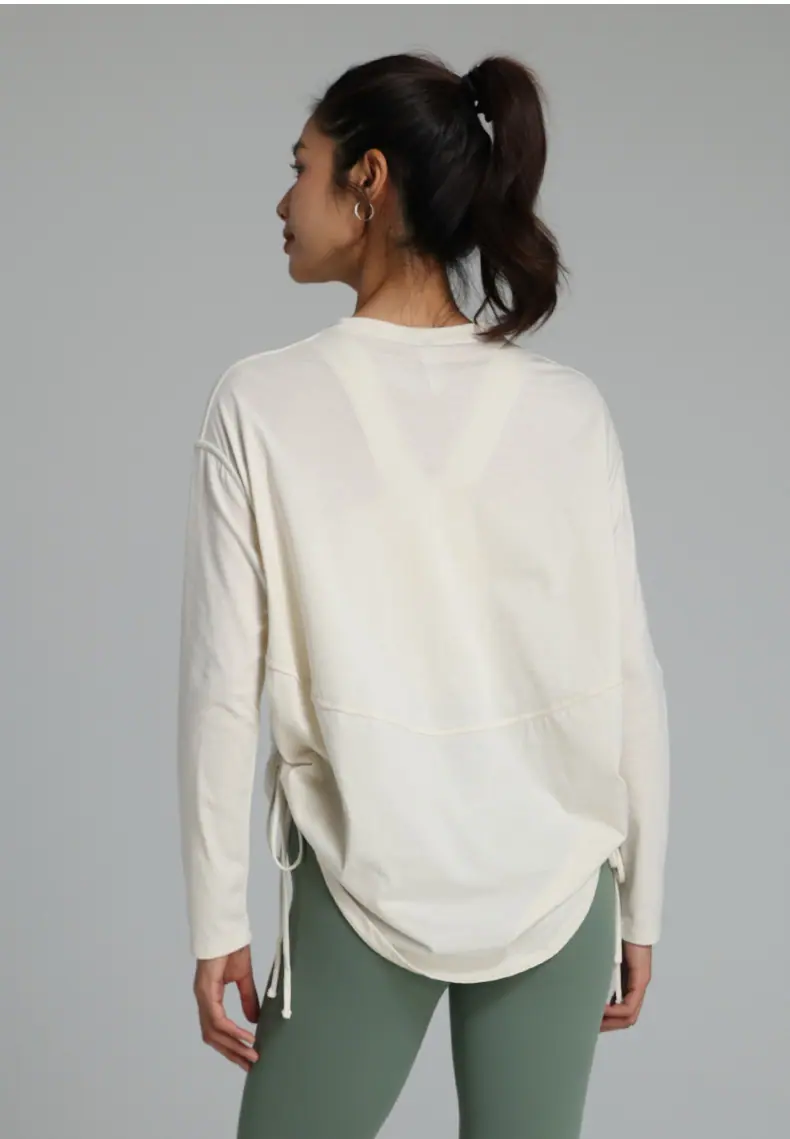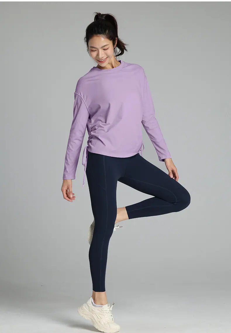 Compra Ropa de Yoga de Manga Larga de Secado Rápido con Cordón Ajustable Camiseta de Pilates para Mujer Transpirable con Aspecto Adelgazante Ropa Deportiva Holgada para Correr y Fitness al por mayor en Joom.pro