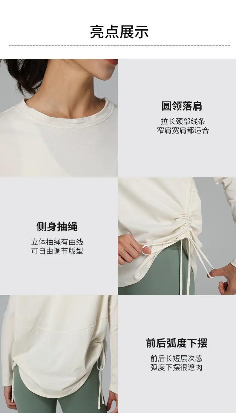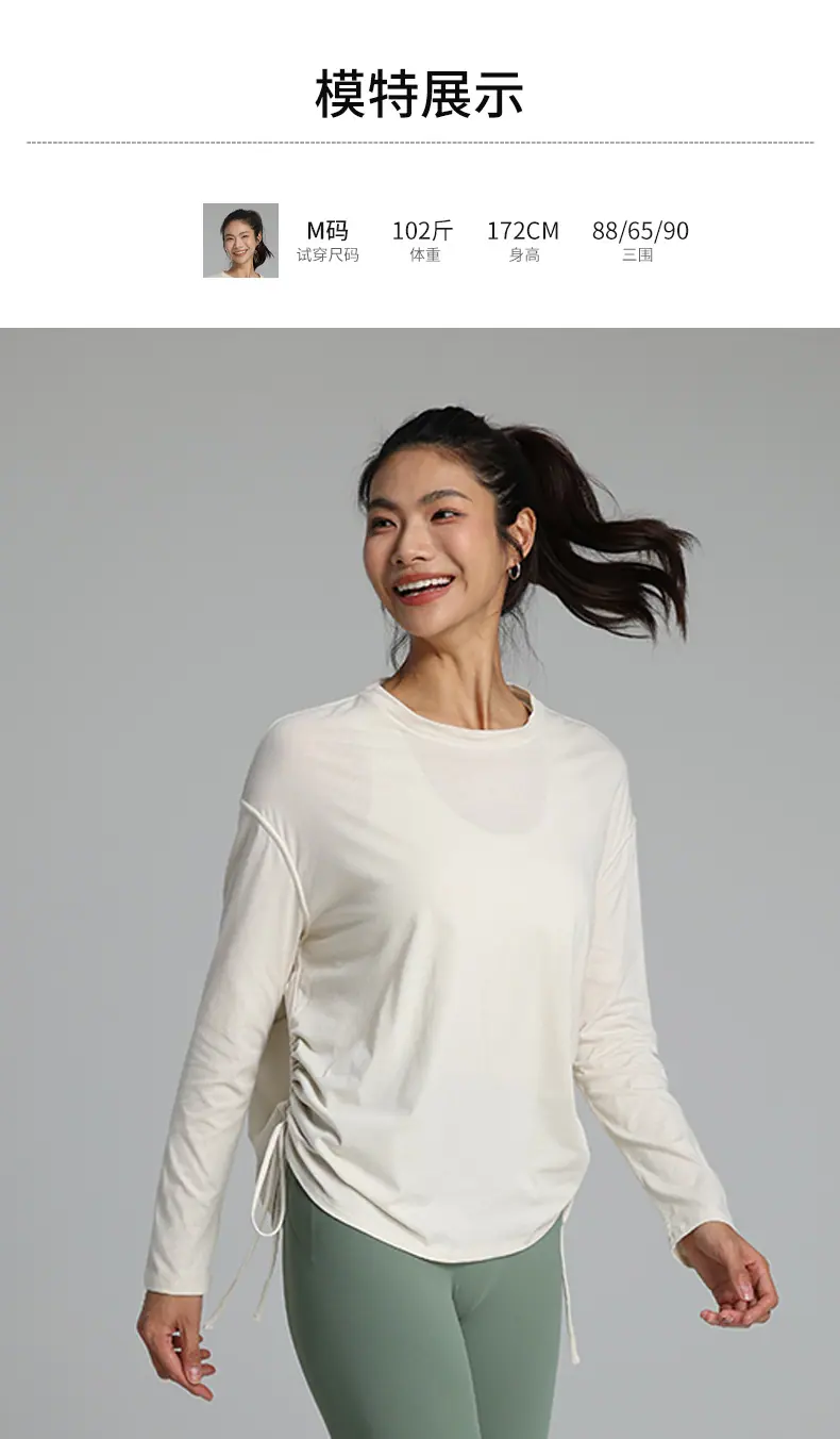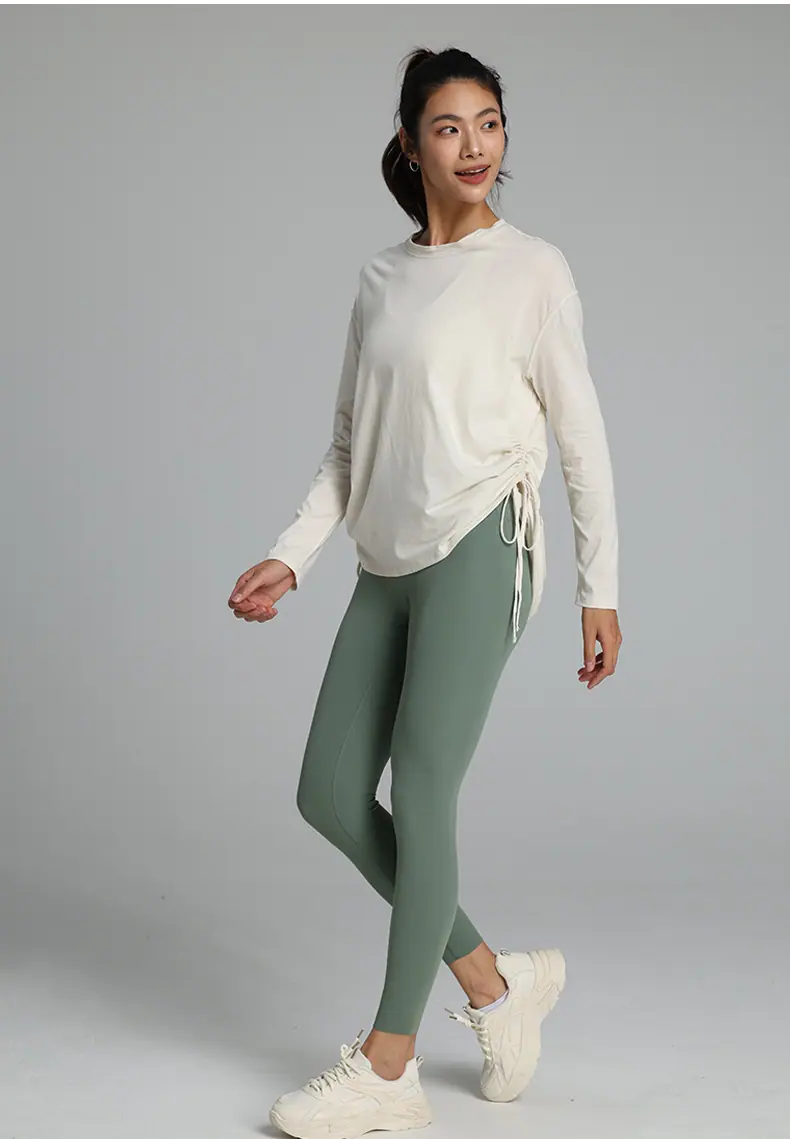 Compra Ropa de Yoga de Manga Larga de Secado Rápido con Cordón Ajustable Camiseta de Pilates para Mujer Transpirable con Aspecto Adelgazante Ropa Deportiva Holgada para Correr y Fitness al por mayor en Joom.pro