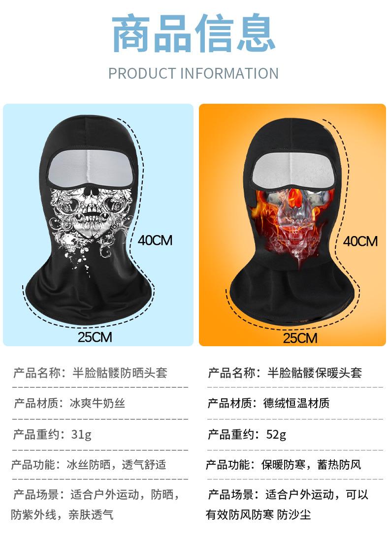 Protector Solar de Verano Máscara Facial Completa para Ciclismo Media Cara Estampada Usable Casco Gorro Baotou de Seda de Hielo Transpirable Cubrecabeza para Motocicleta