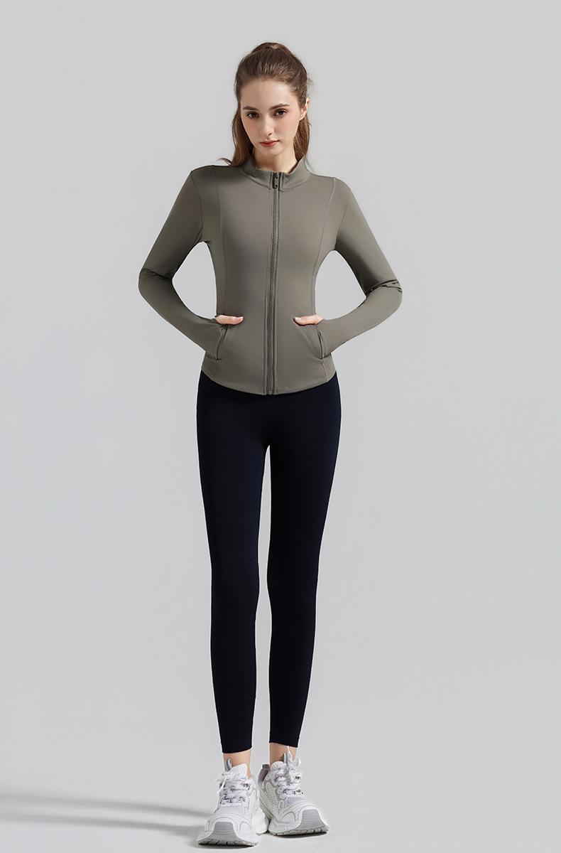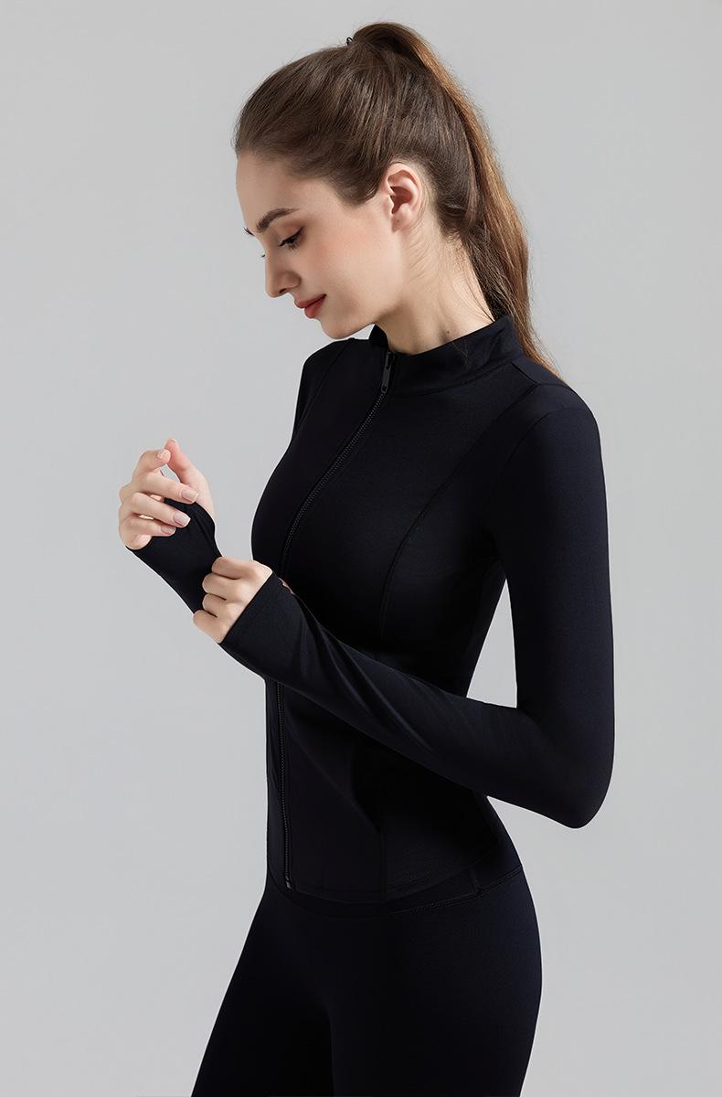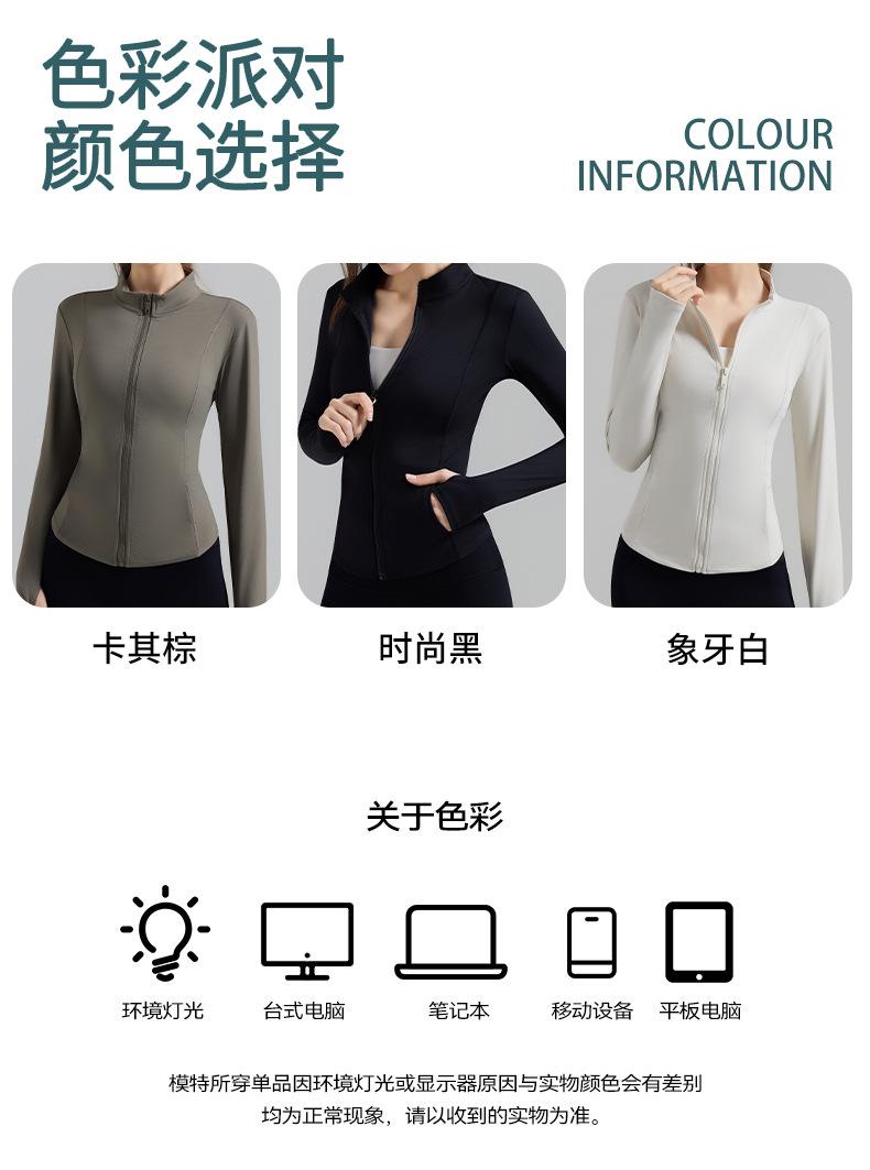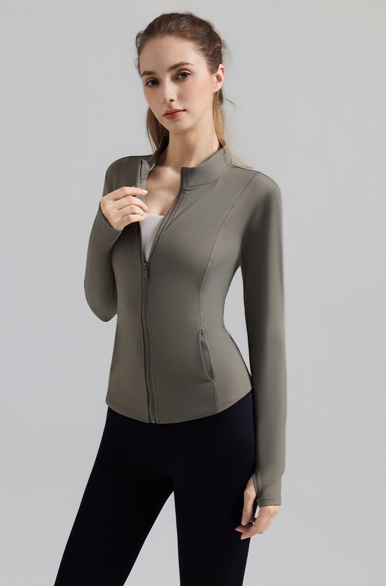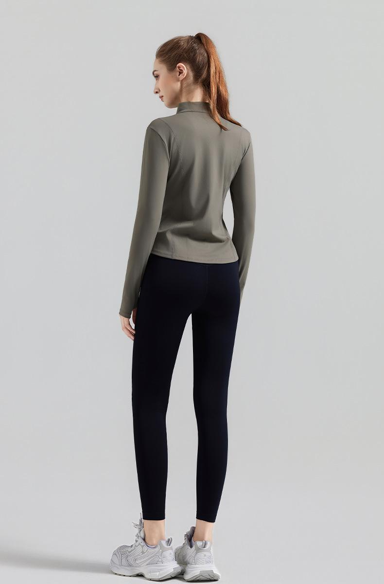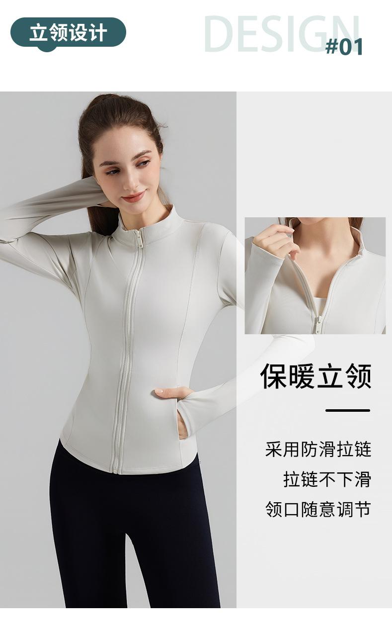 Otoño Nuevo Chaqueta Deportiva Mujer Cuello Alto Top de Yoga Cremallera Ajuste Slim Ropa de Fitness para Correr Abrigo Manga Larga