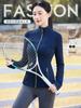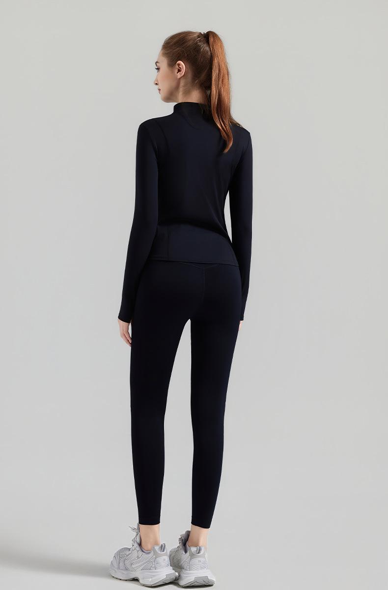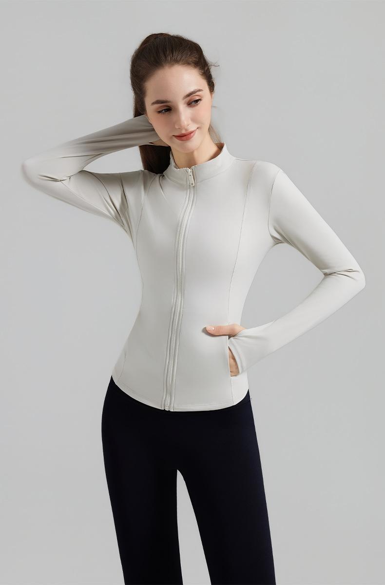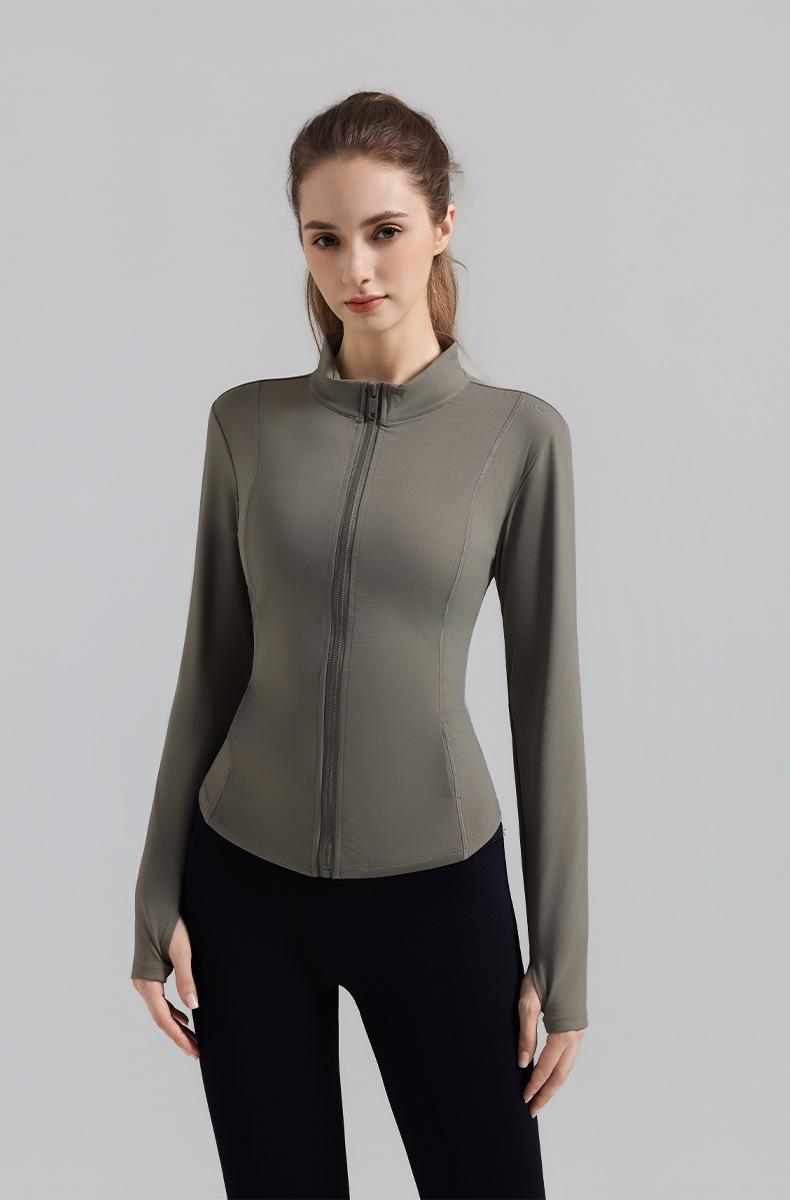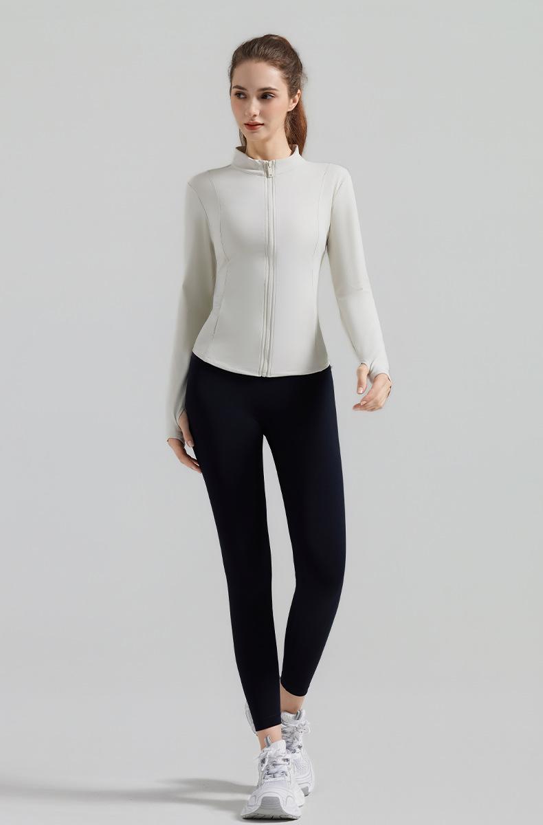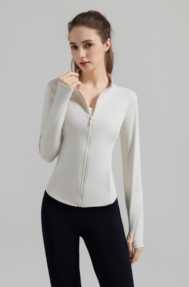 Otoño Nuevo Chaqueta Deportiva Mujer Cuello Alto Top de Yoga Cremallera Ajuste Slim Ropa de Fitness para Correr Abrigo Manga Larga