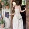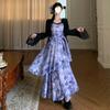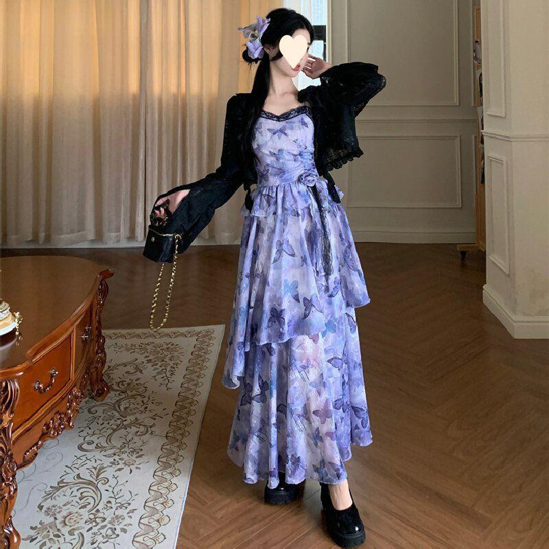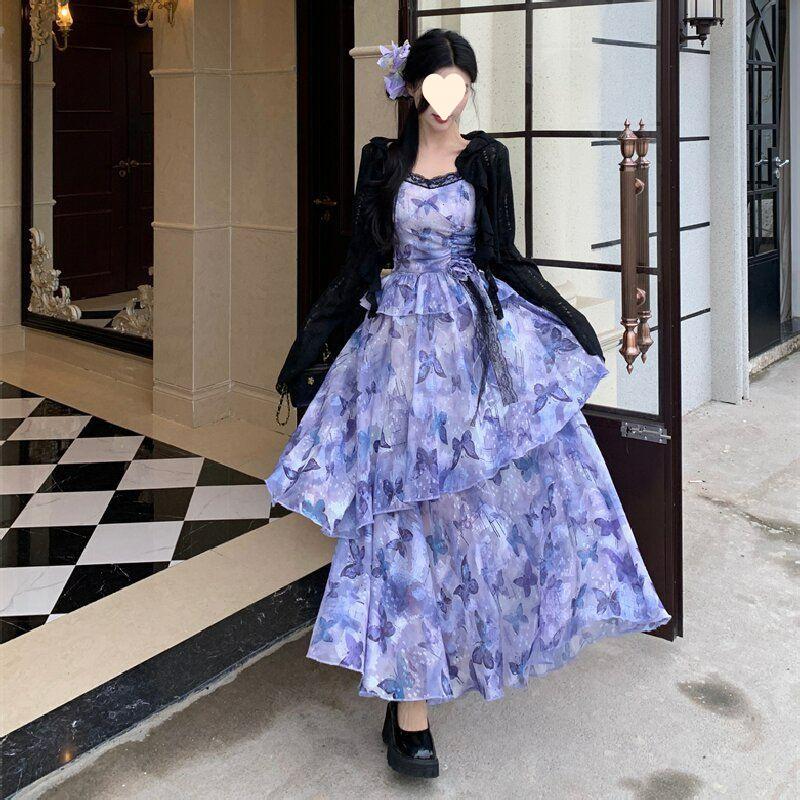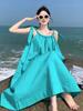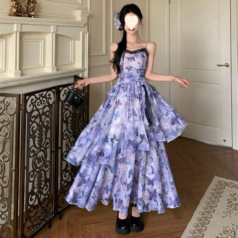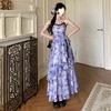 Atuendo de ambiente estilo coreano vacaciones junto al mar vestido largo sentido púrpura vestido de tirantes espagueti mujeres verano