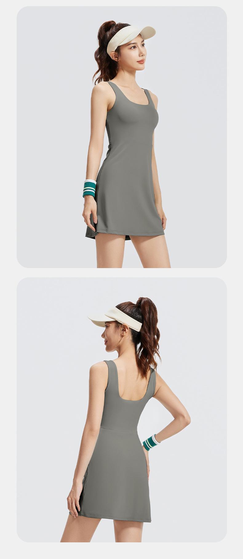 Nueva Falda Deportiva de Tenis de Una Pieza para Mujer con Almohadillas para el Busto Incorporadas para Evitar la Exposición y Hermoso Vestido de Yoga de Espalda