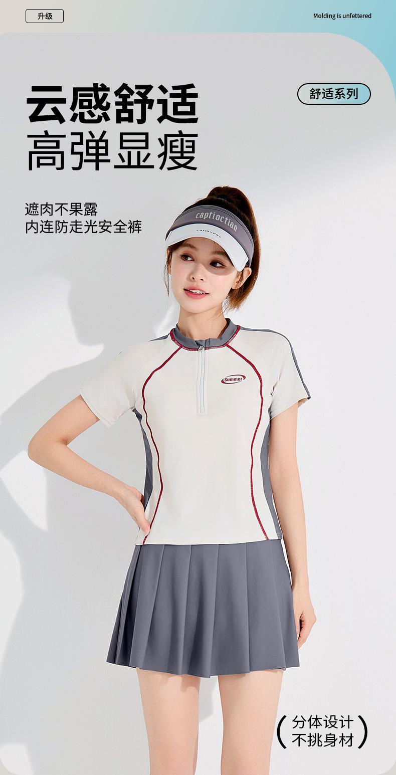 Traje de baño deportivo de verano para mujer, de manga corta dividida, nuevo, de secado rápido, conservador, control de abdomen, adelgazante, profesional, para natación, aguas termales.
