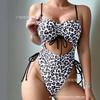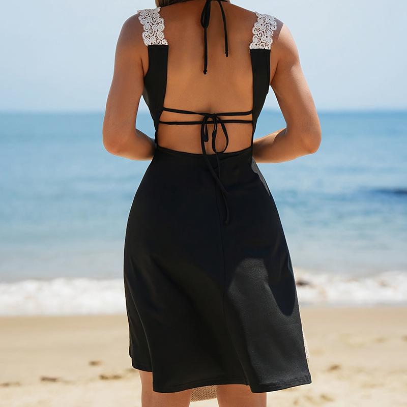 2025 Nuevo Europeo y Americano Cruzado Sexy Bikini Cárdigan Bloque de Color Traje de Baño de Una Pieza Vestido de Playa para Mujer Traje de Baño