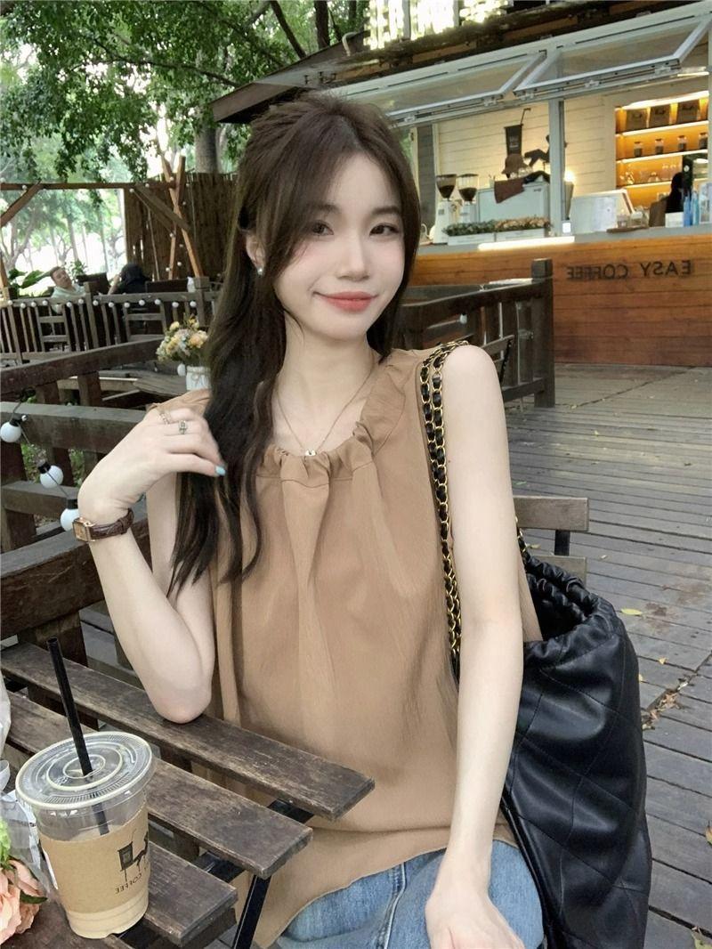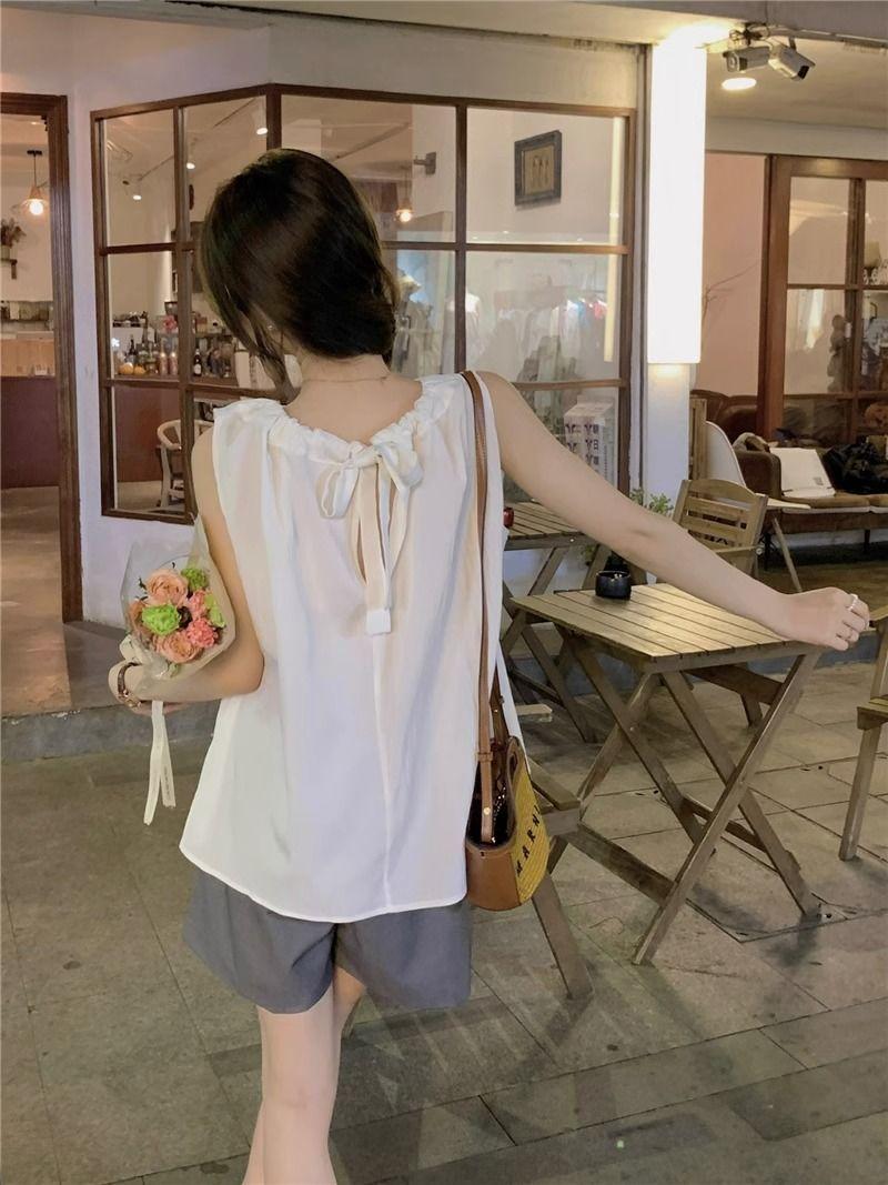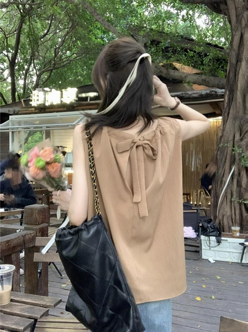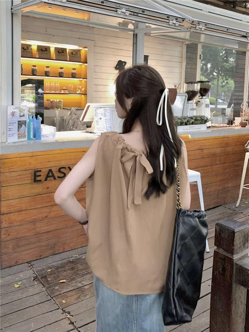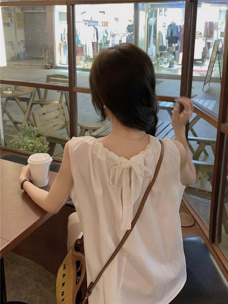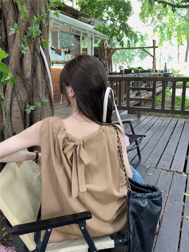 Camisola sin mangas con cordones para mujer 2025 Verano Nuevo Diseño Nicho Exterior Holgada Versátil Adelgazante Top