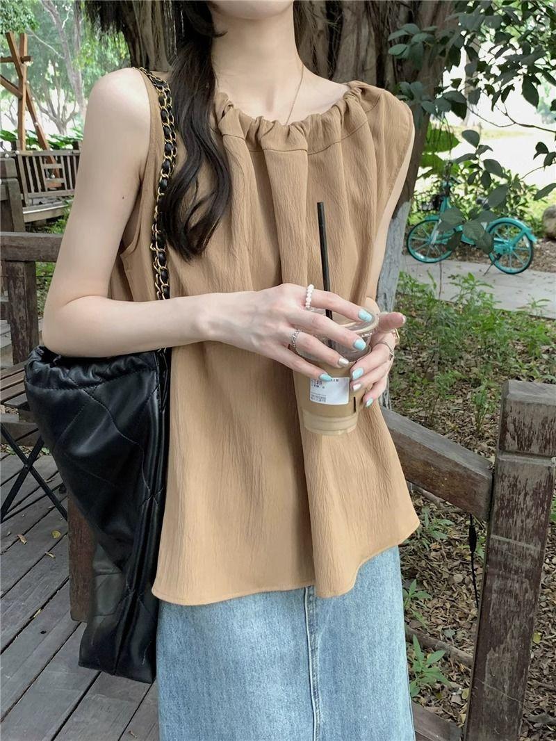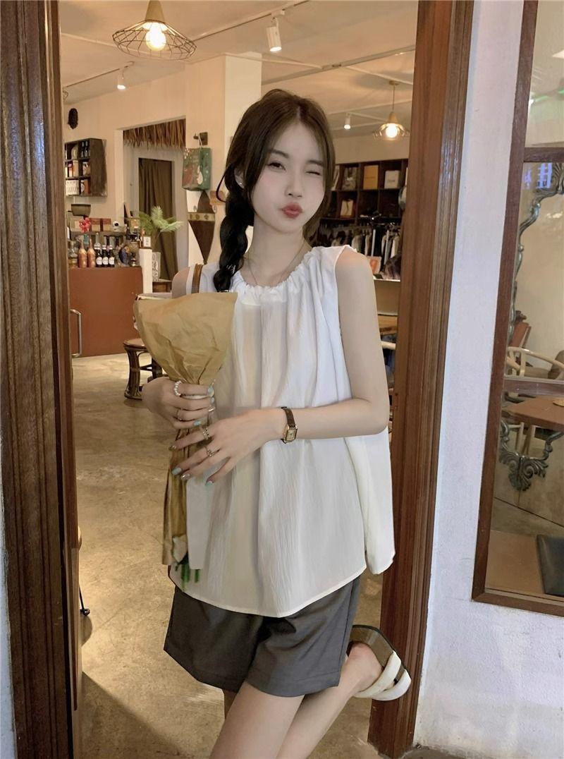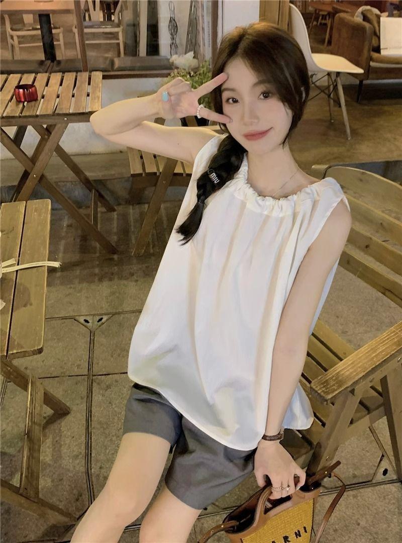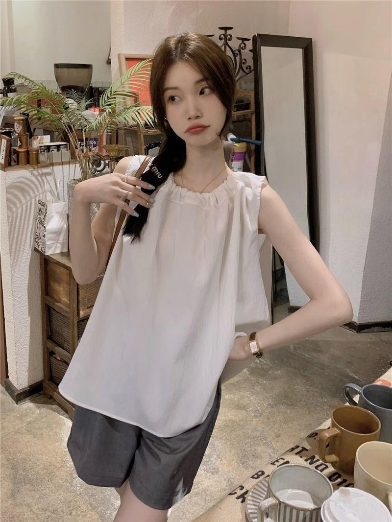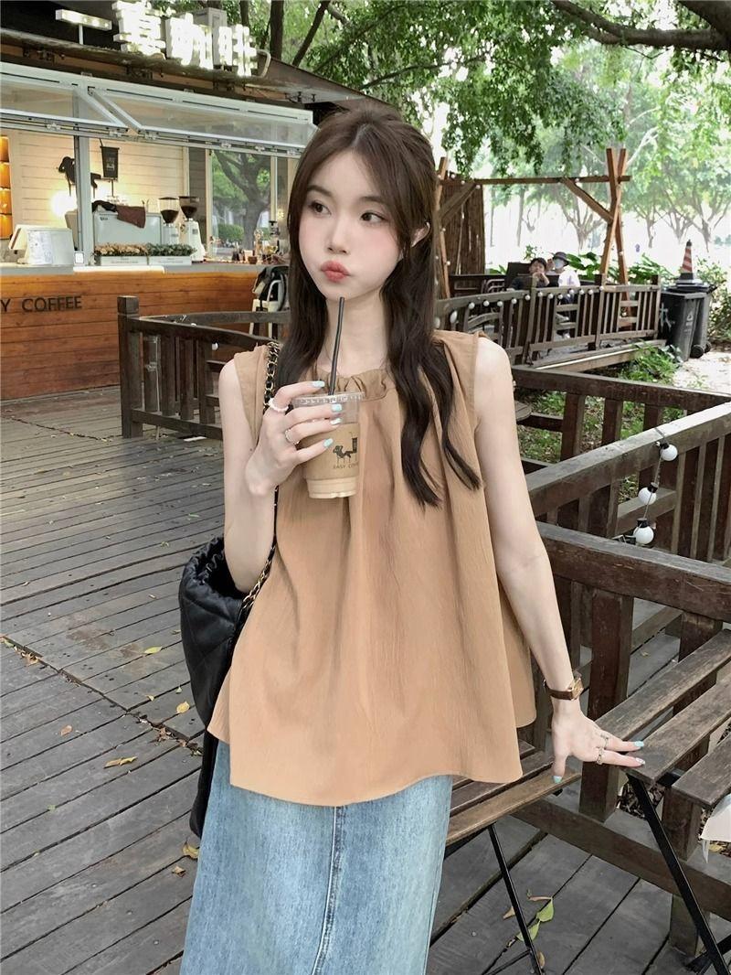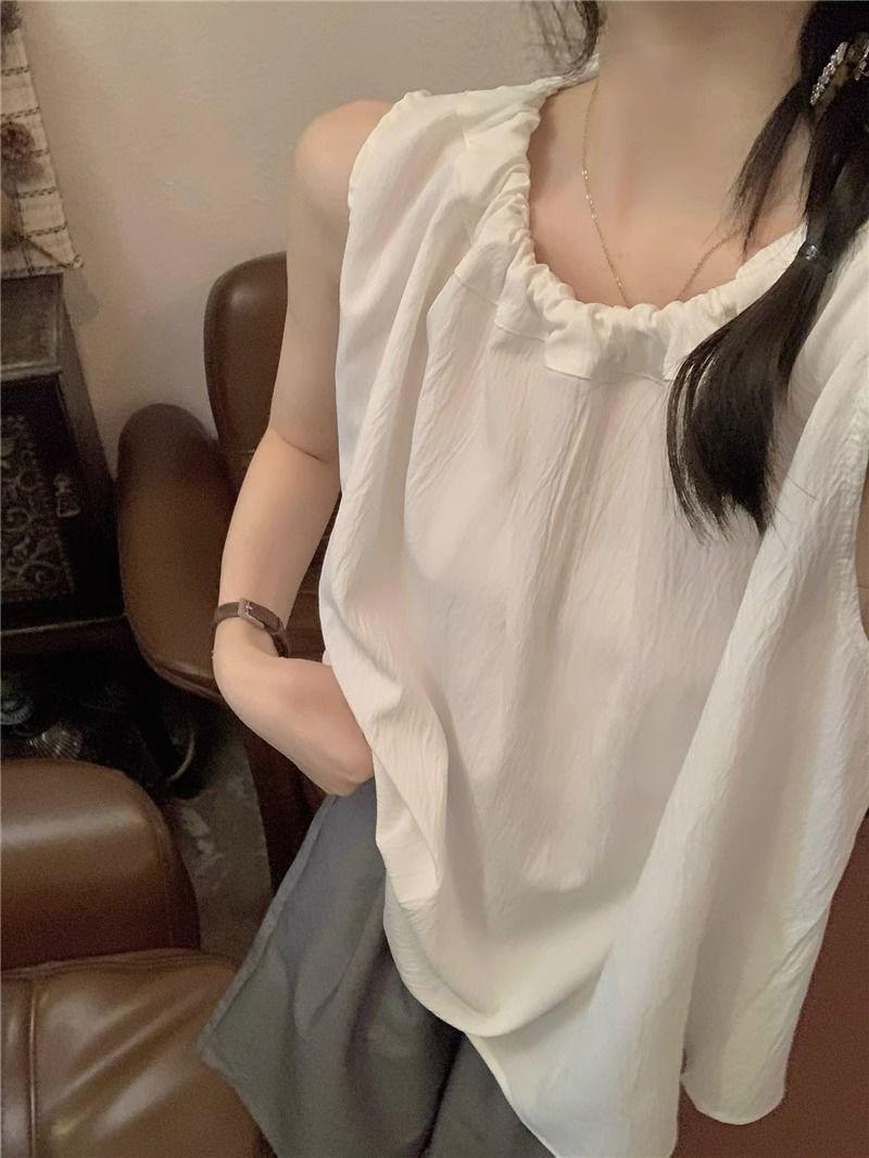 Camisola sin mangas con cordones para mujer 2025 Verano Nuevo Diseño Nicho Exterior Holgada Versátil Adelgazante Top