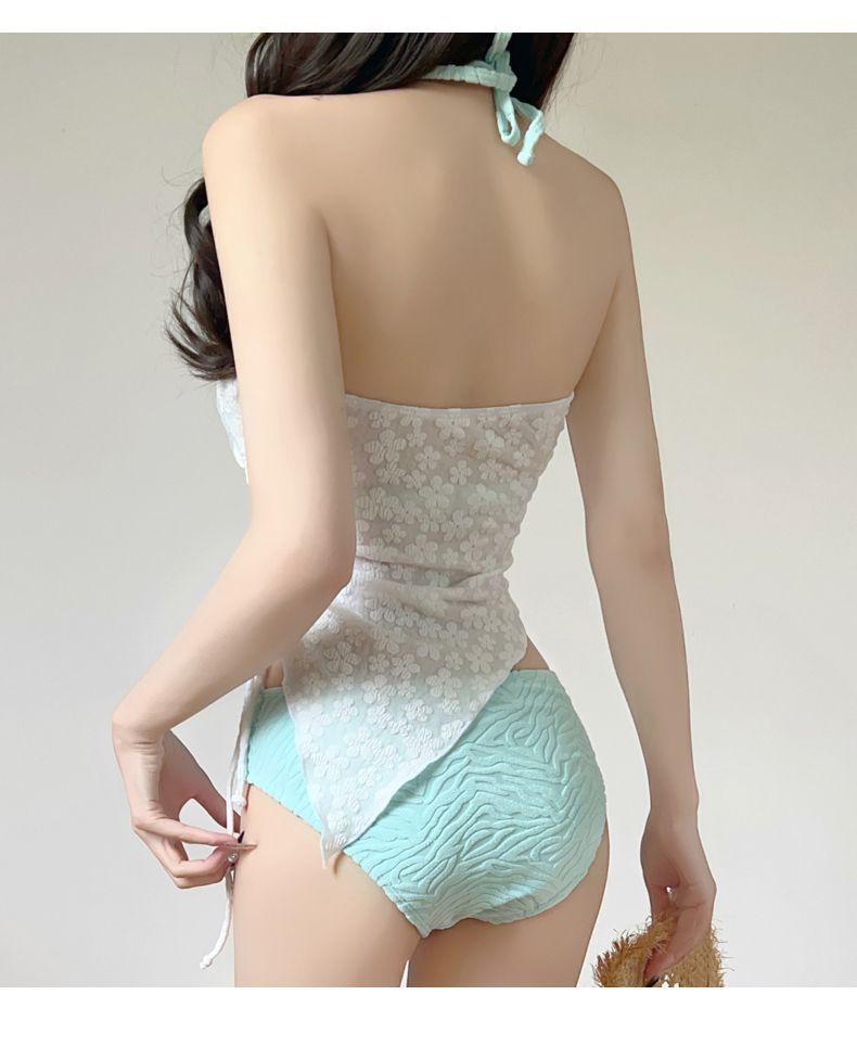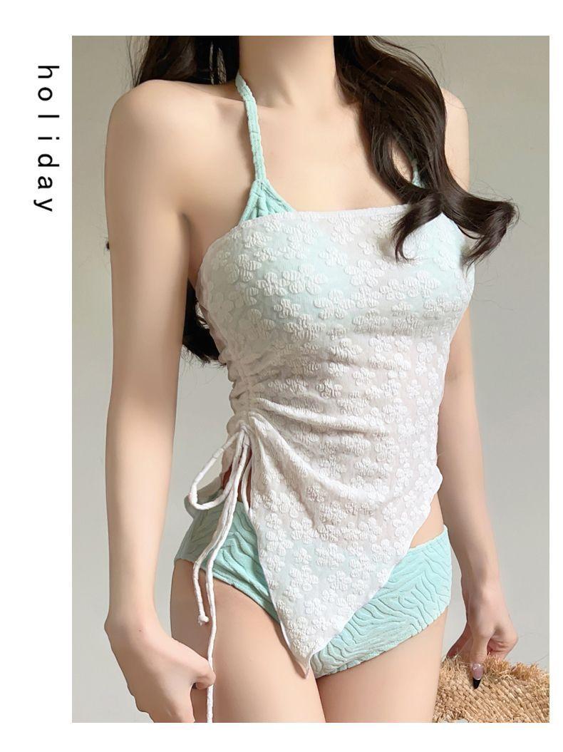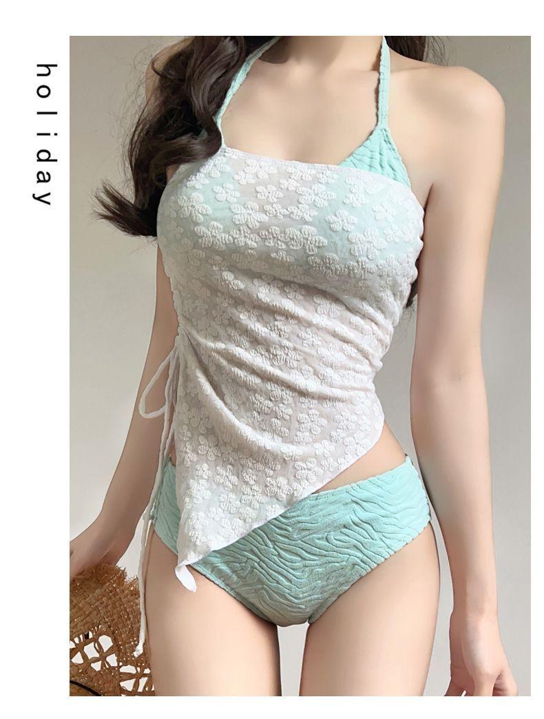 Conjunto de tres piezas estilo ins deseo puro vacaciones bikini aguas termales color menta traje de baño estilo vacaciones traje de baño dividido mujeres nuevo