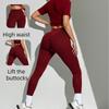 Leggings sin costuras transfronterizos europeos y americanos de cintura alta con control de abdomen y realce de cadera, pantalones de yoga que absorben la humedad