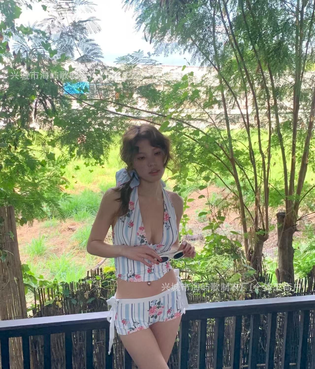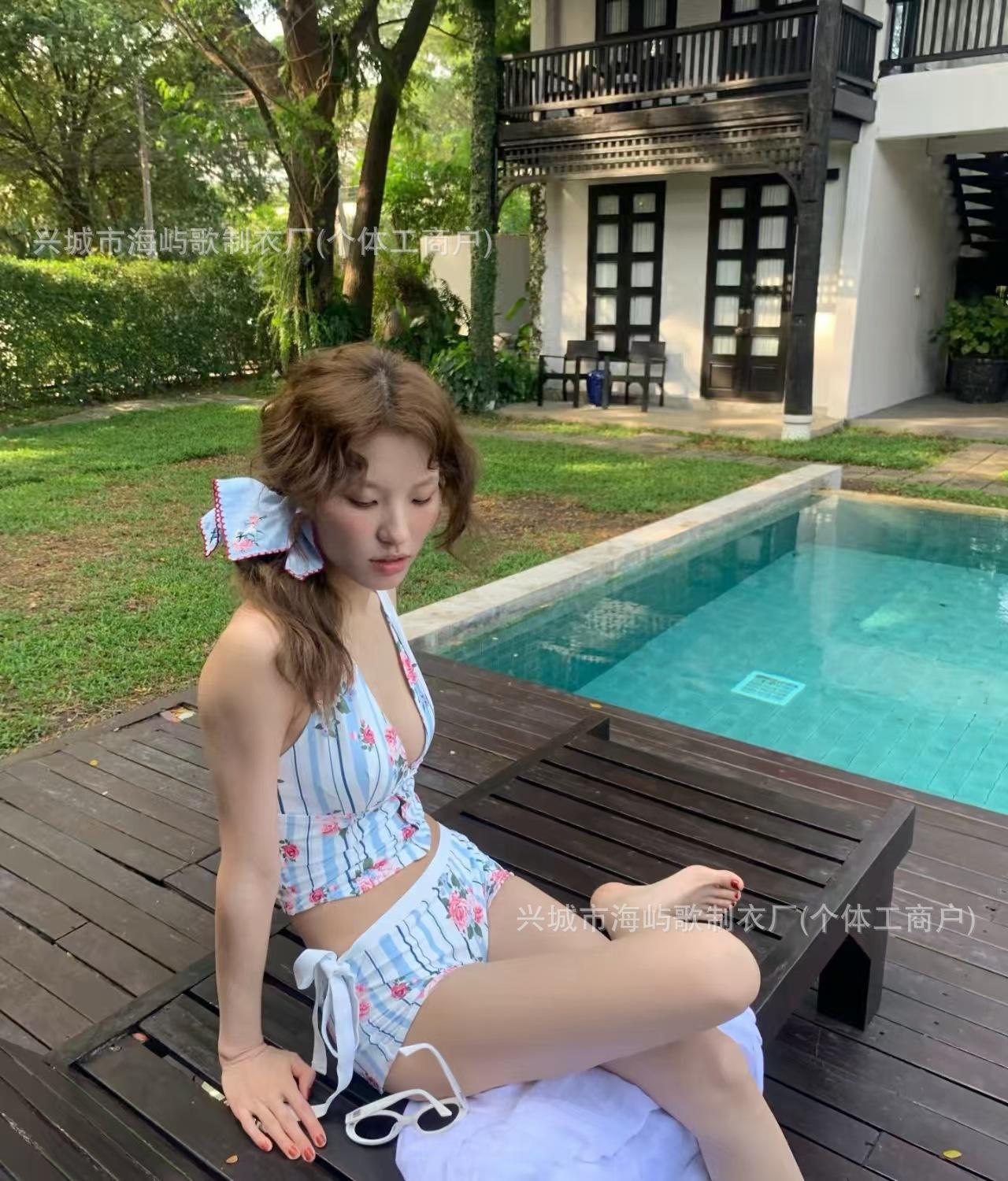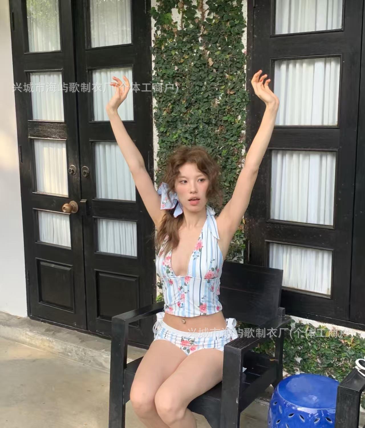 Traje de Baño Nuevo Bikini Dividido Bikini de Playa Deseo Puro Lindo Floral Tirantes Dividido Estilo Vacacional Traje de Baño Mujer