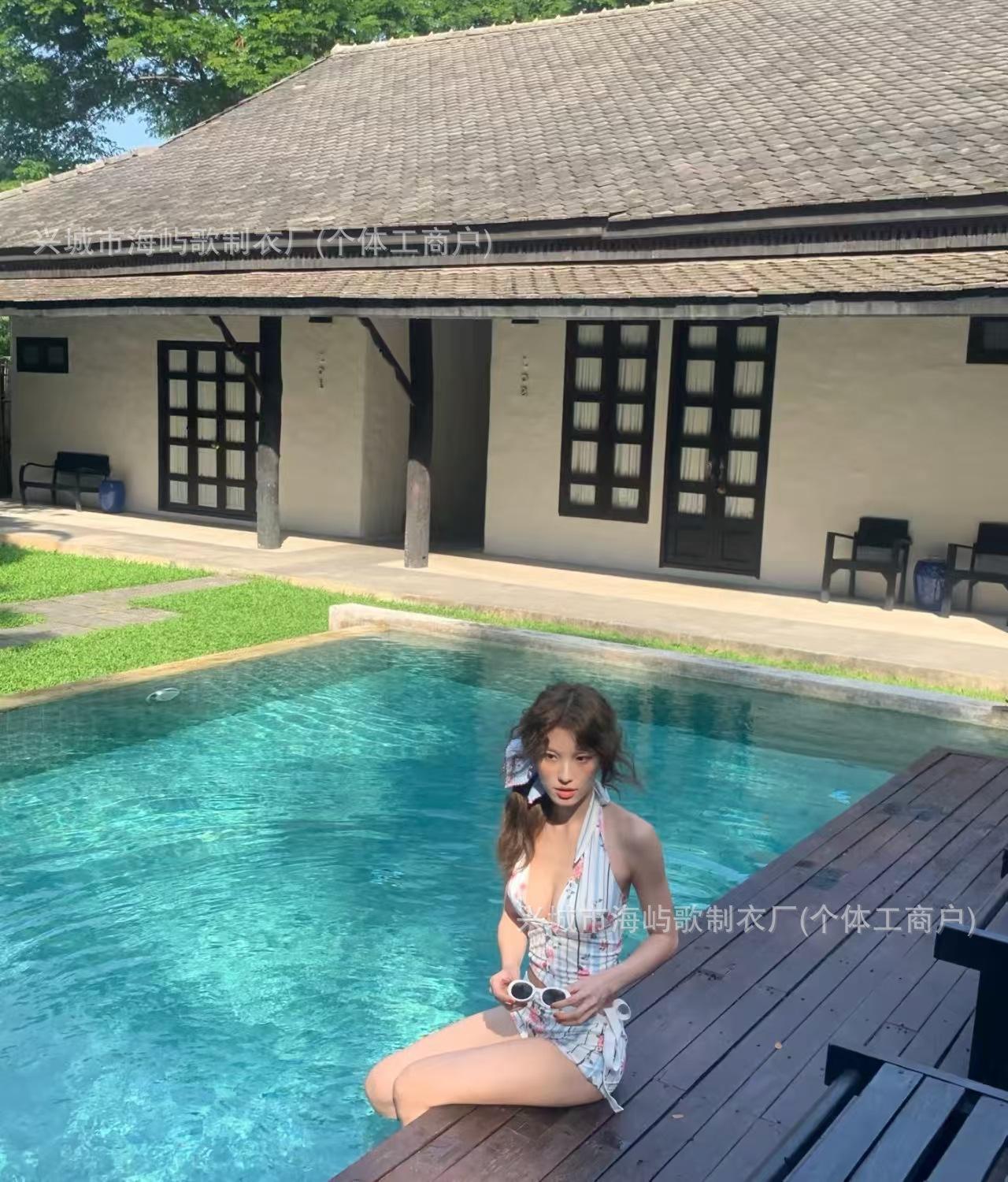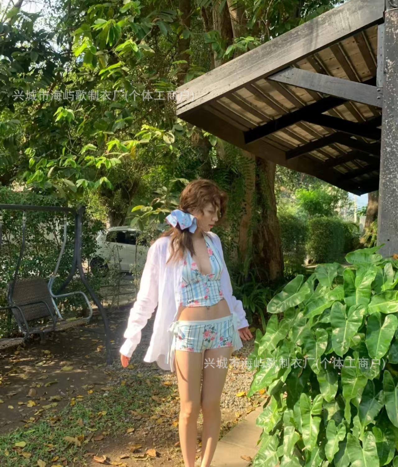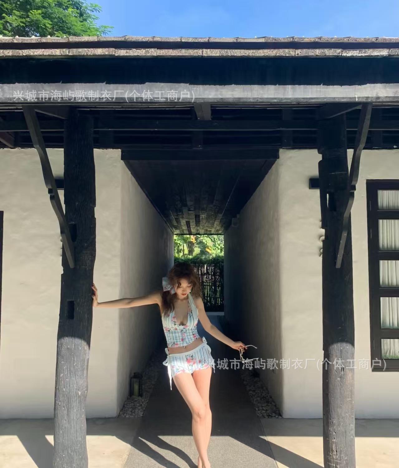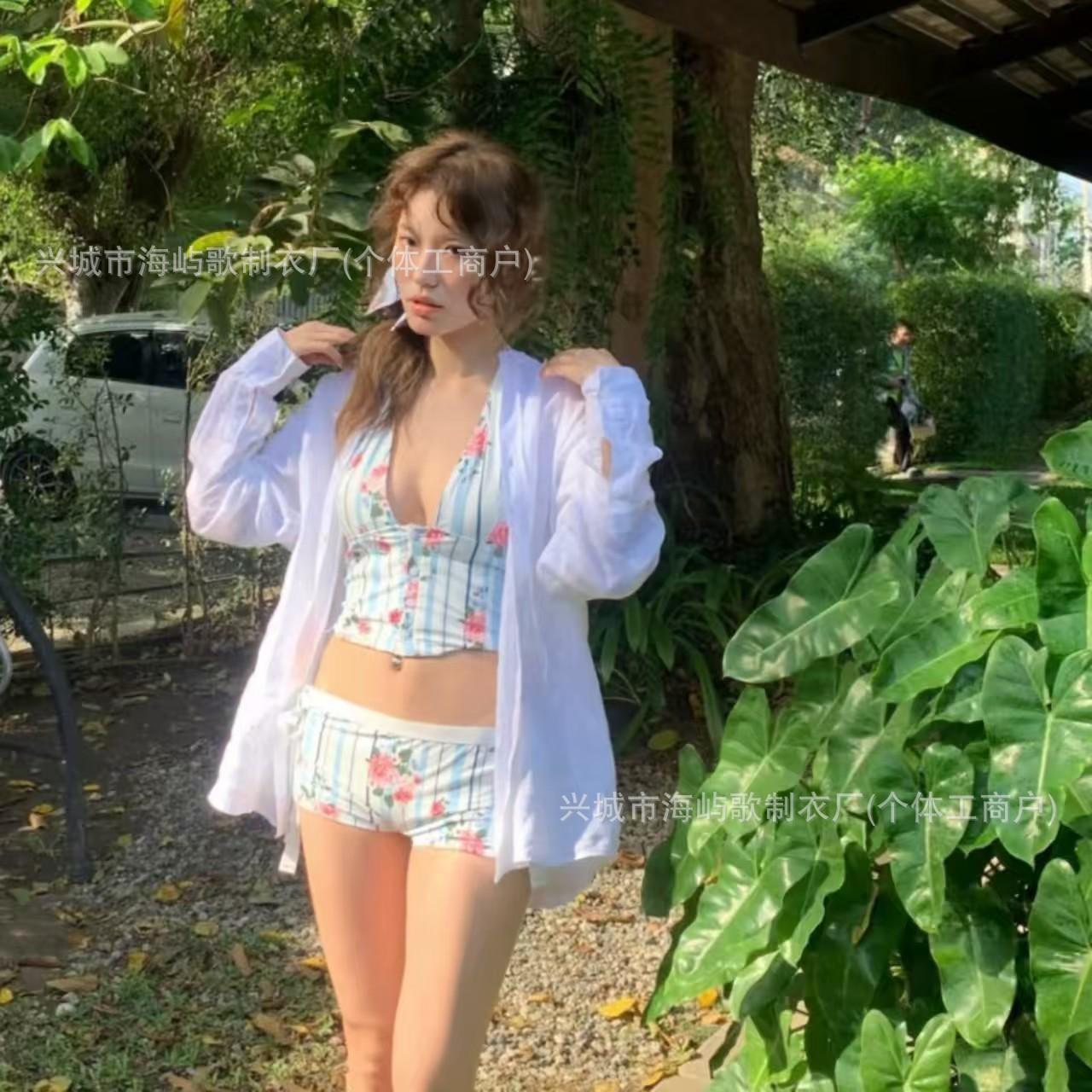 Traje de Baño Nuevo Bikini Dividido Bikini de Playa Deseo Puro Lindo Floral Tirantes Dividido Estilo Vacacional Traje de Baño Mujer