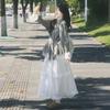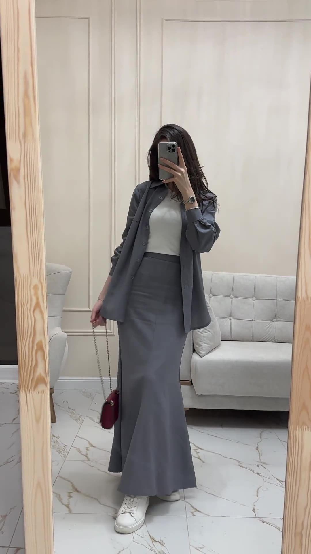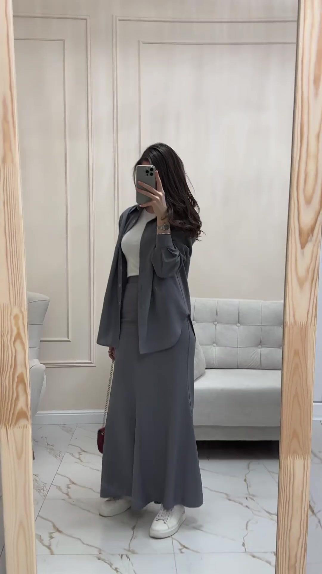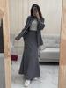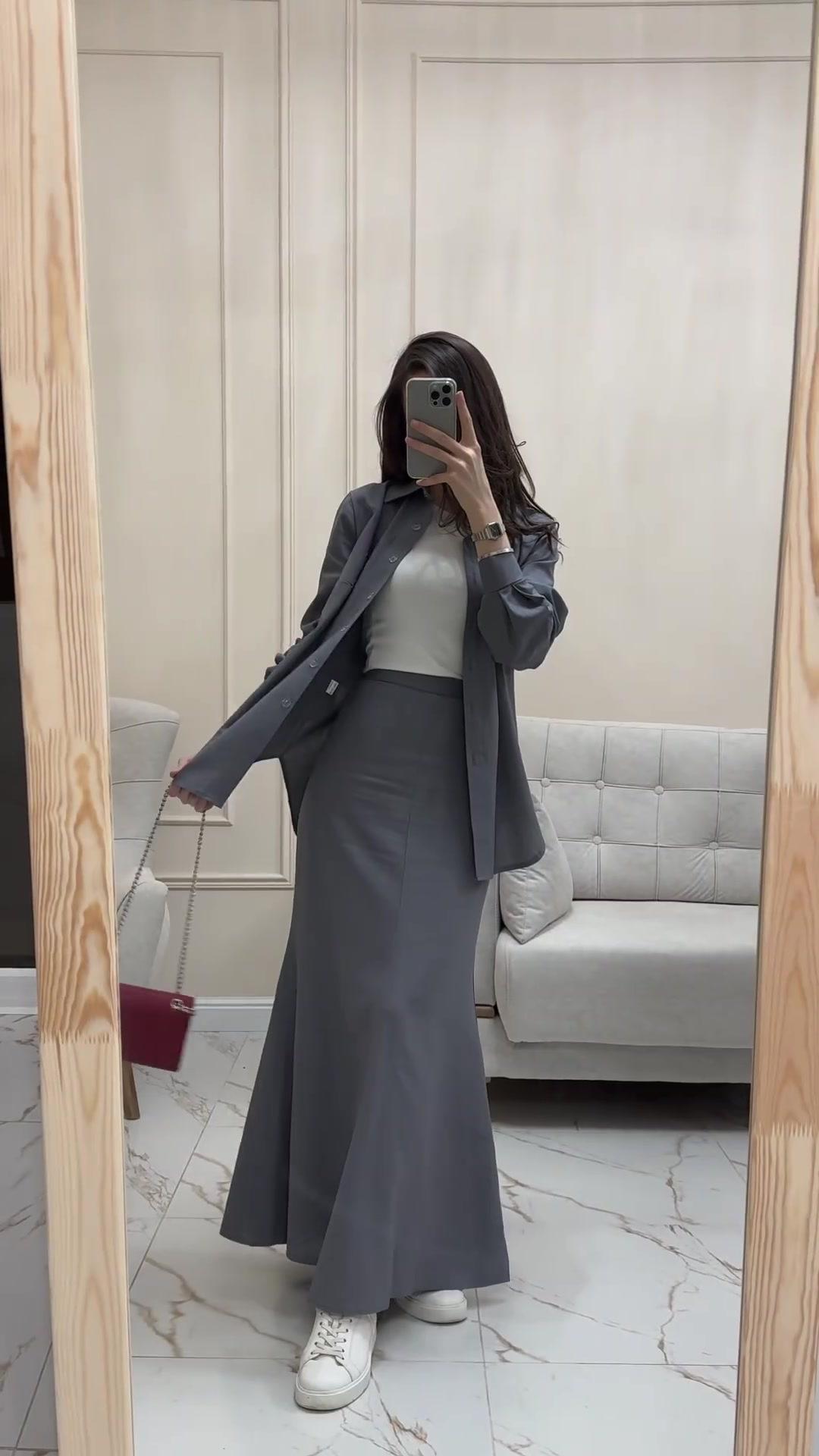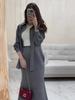 Conjunto de dos piezas casual a cuadros holgado de manga larga con camisa y falda larga de cintura elástica para mujer, verano 2024, nuevo traje delgado