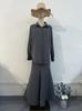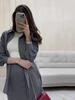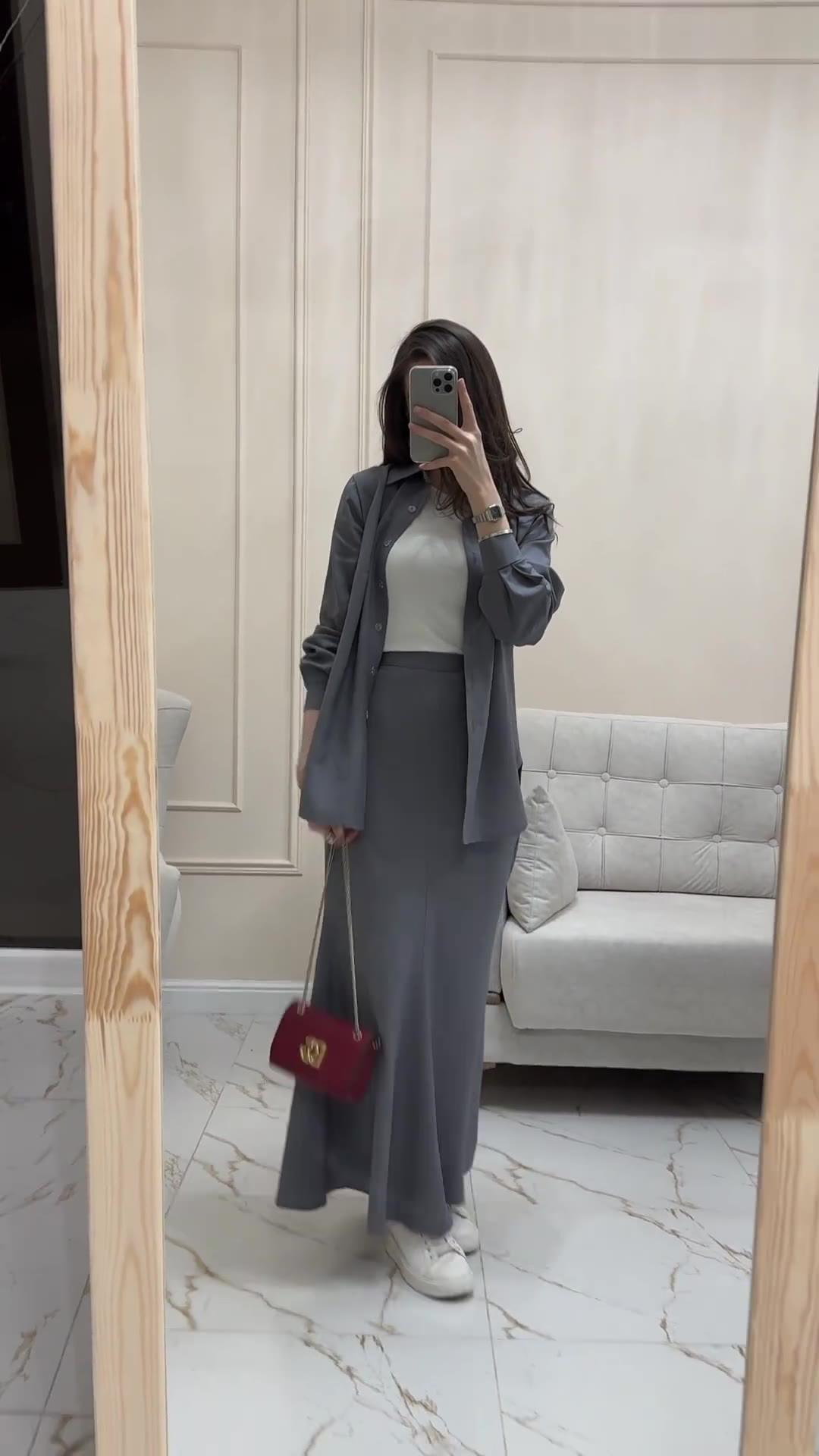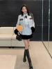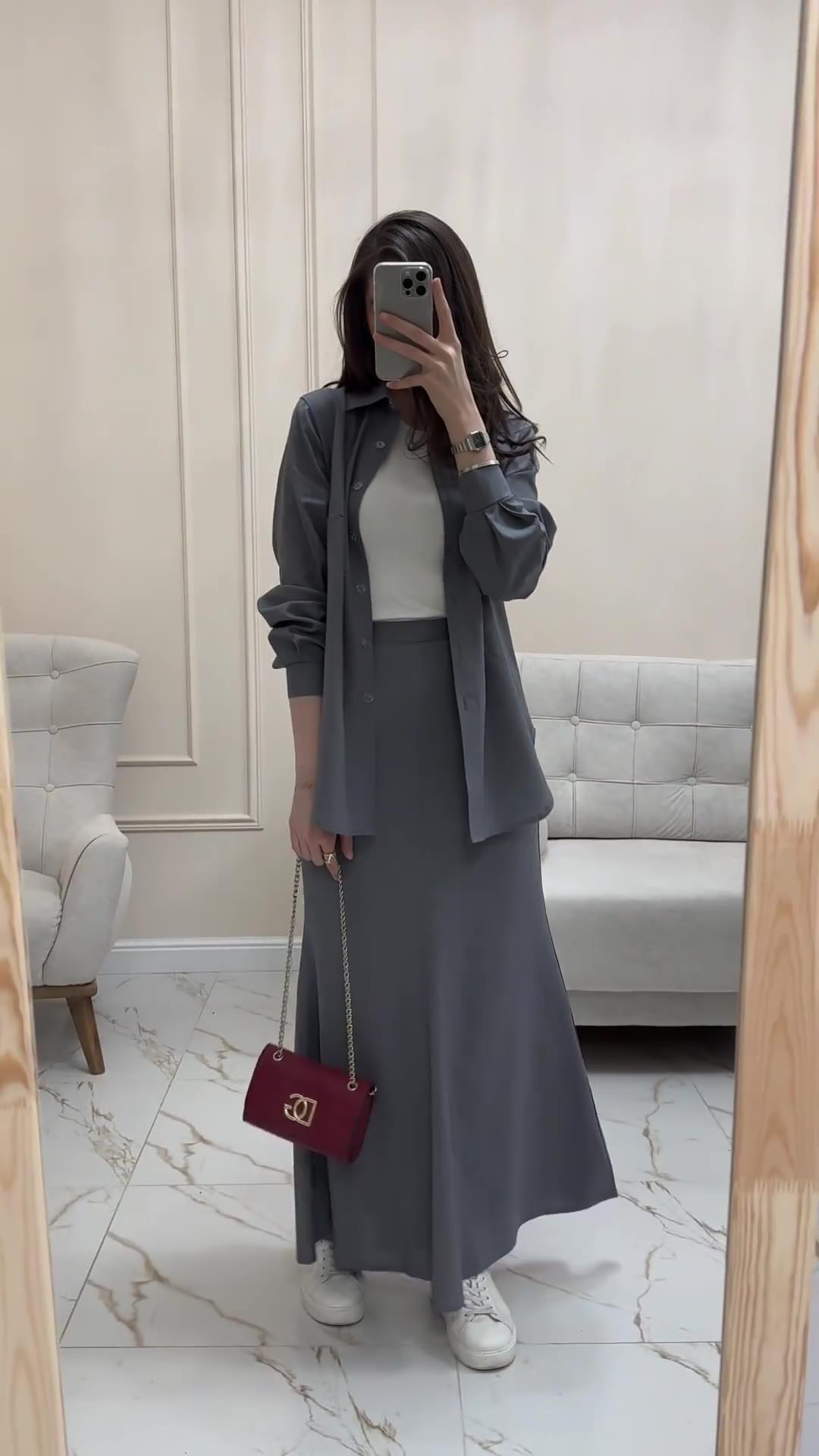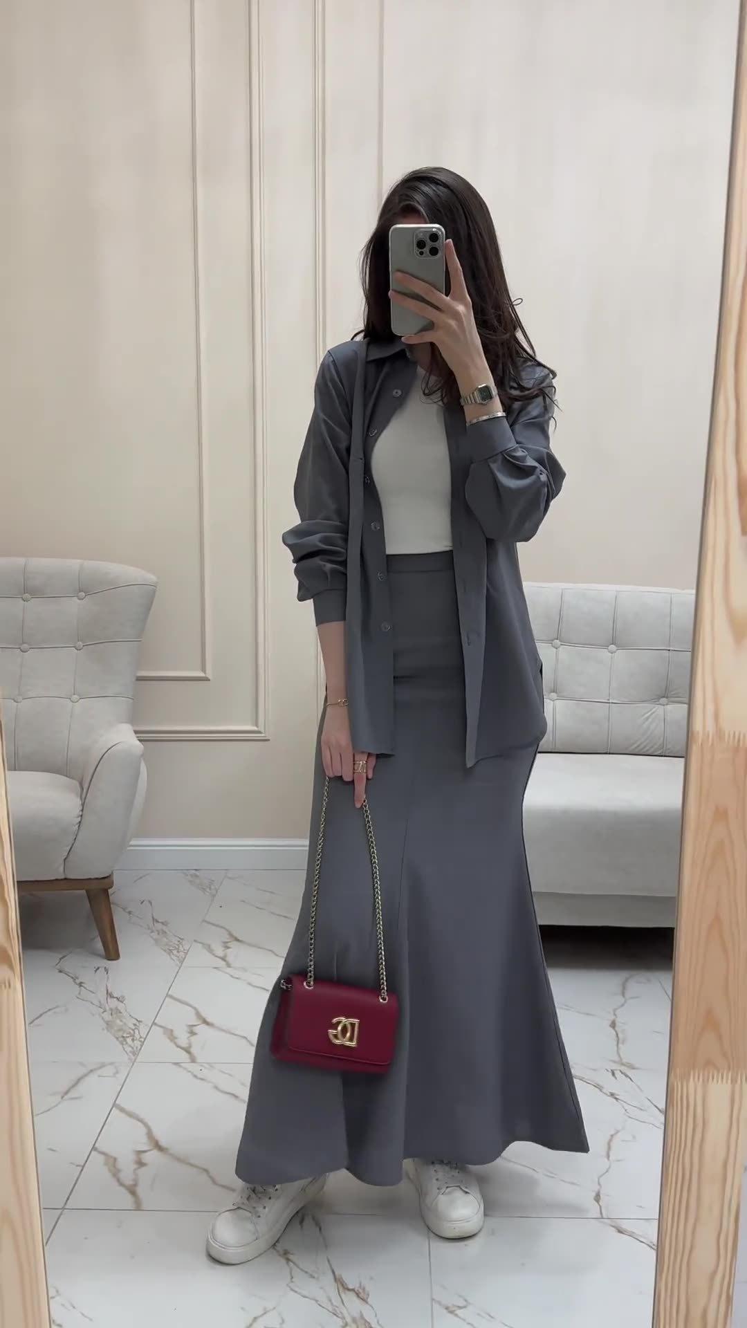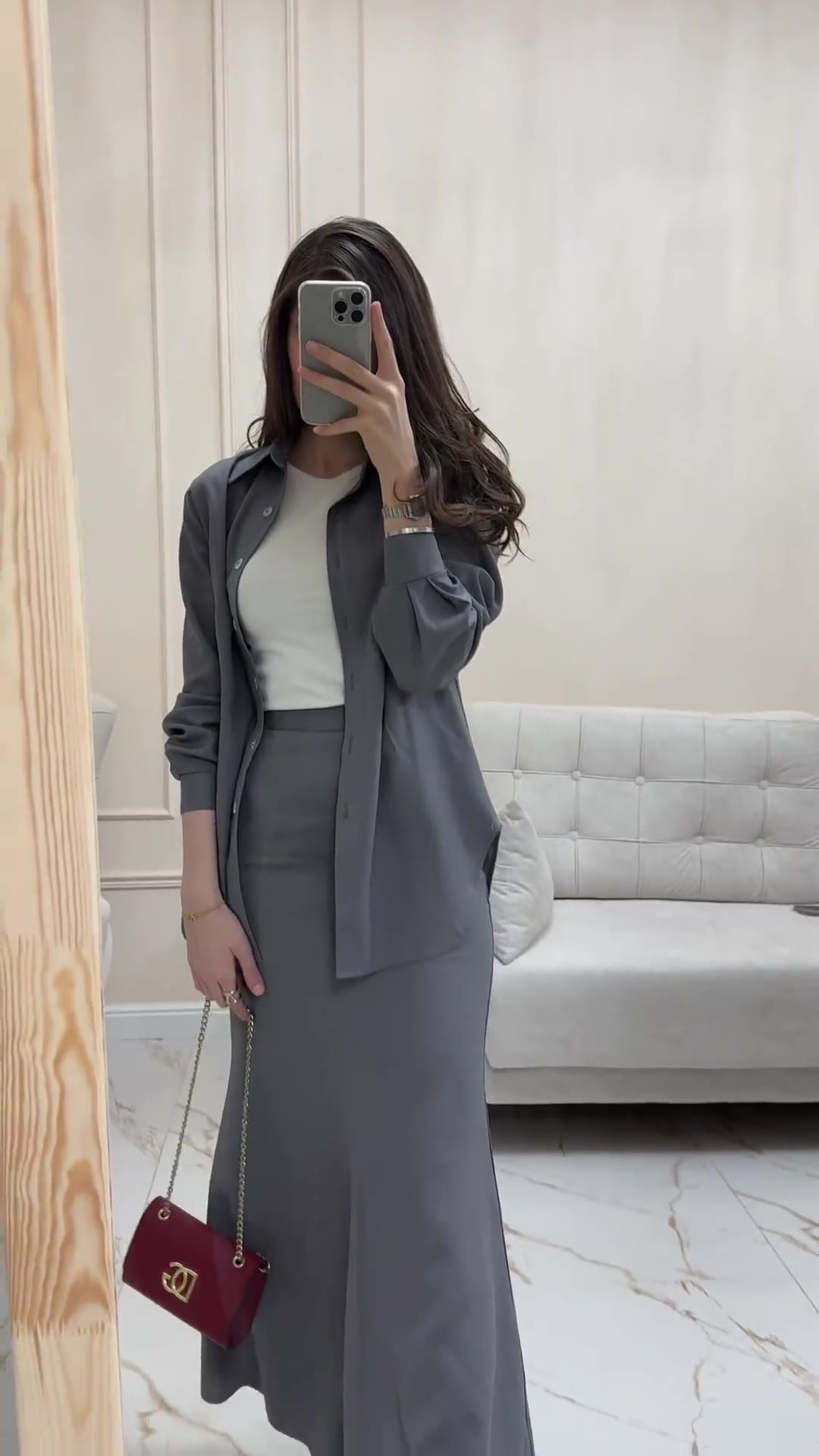 Conjunto de dos piezas casual a cuadros holgado de manga larga con camisa y falda larga de cintura elástica para mujer, verano 2024, nuevo traje delgado