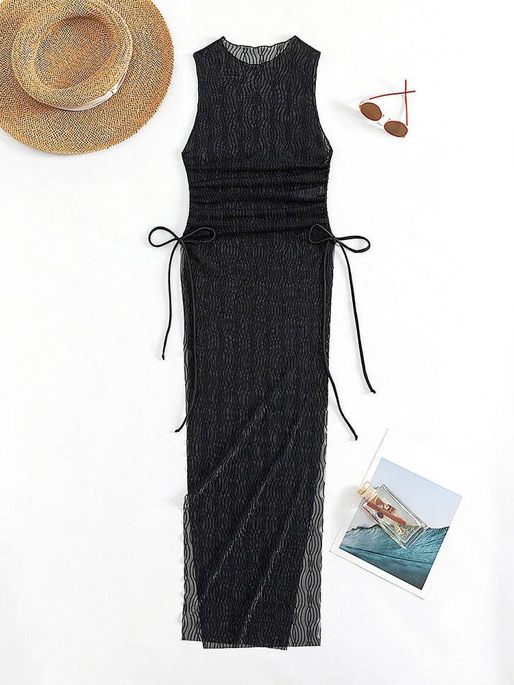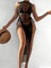 Traje de Baño Sexy de Malla de Una Pieza Transfronterizo Europeo y Americano Nuevo 2025 para Mujer con Cordones Transparente Cubre Traje de Baño Falda de Playa Venta al por Mayor