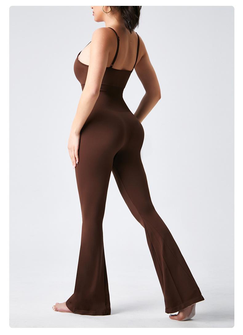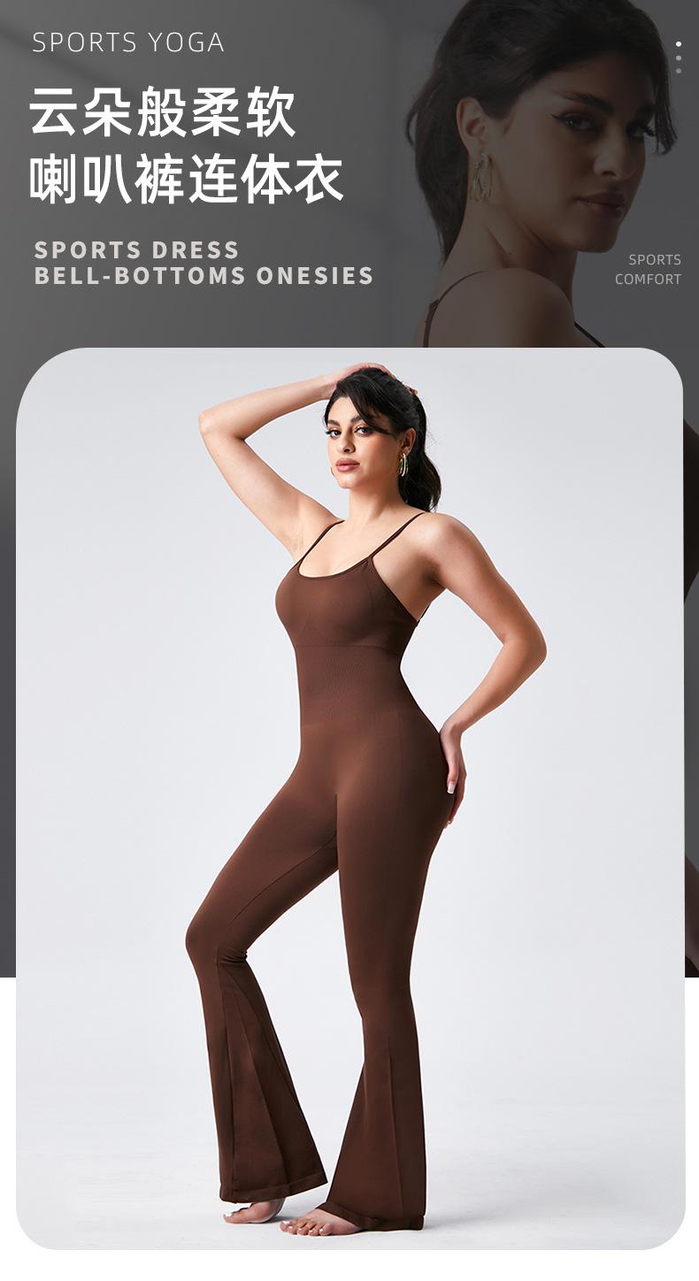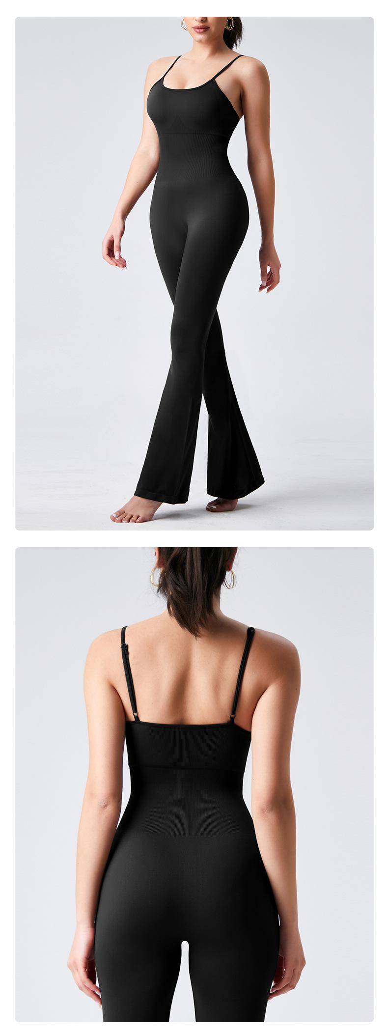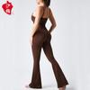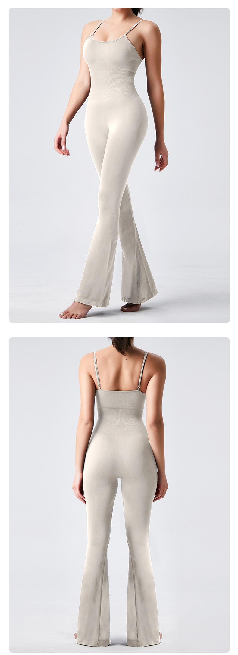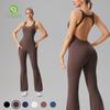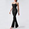 Europeo y Americano Sexy Cuello U Cruzado Sin Espalda Ajustado Color Sólido Top Tank Jumpsuit Pantalones Acampanados Jumpsuit de Yoga