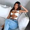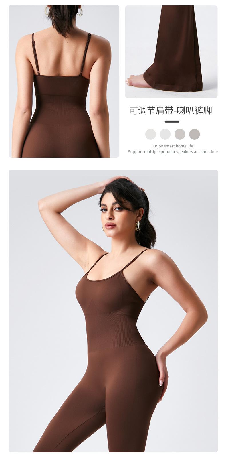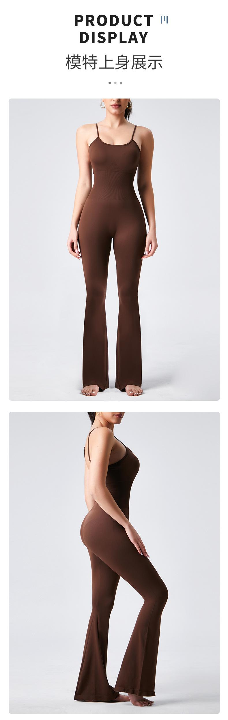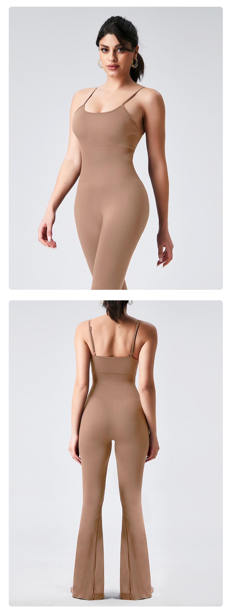 Europeo y Americano Sexy Cuello U Cruzado Sin Espalda Ajustado Color Sólido Top Tank Jumpsuit Pantalones Acampanados Jumpsuit de Yoga