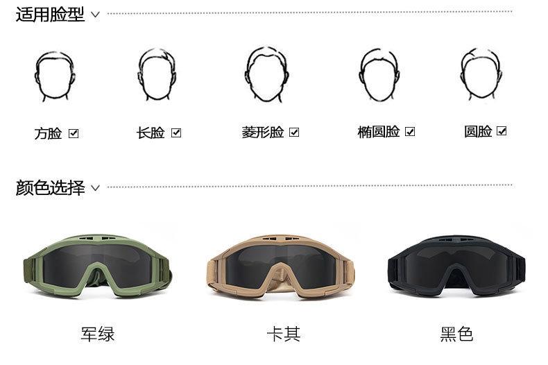 Black (single piece), Military Green (Single Piece), Khaki (single piece), Black (Three-lens set), Military Gr...