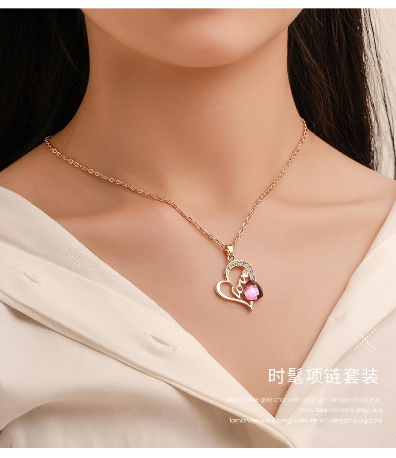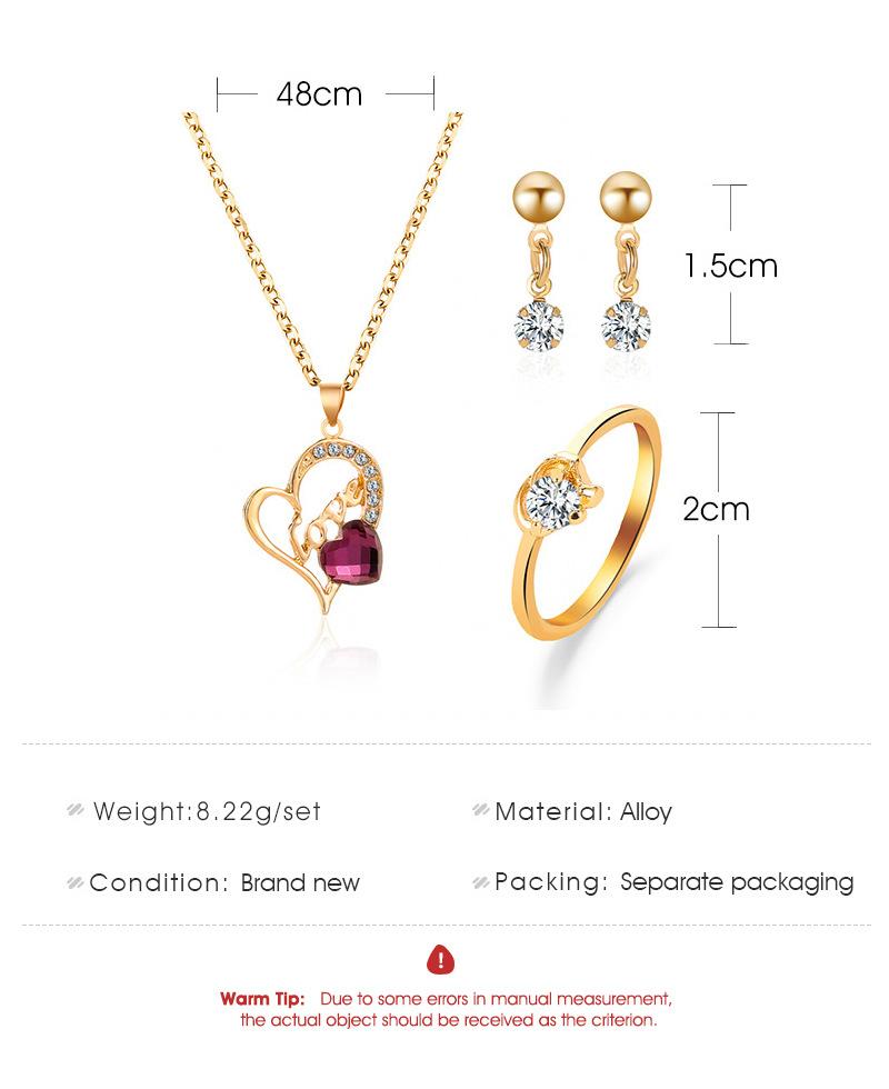 Conjunto de tres piezas de joyería de moda europea y americana, collar, pendientes, anillo y pendientes.