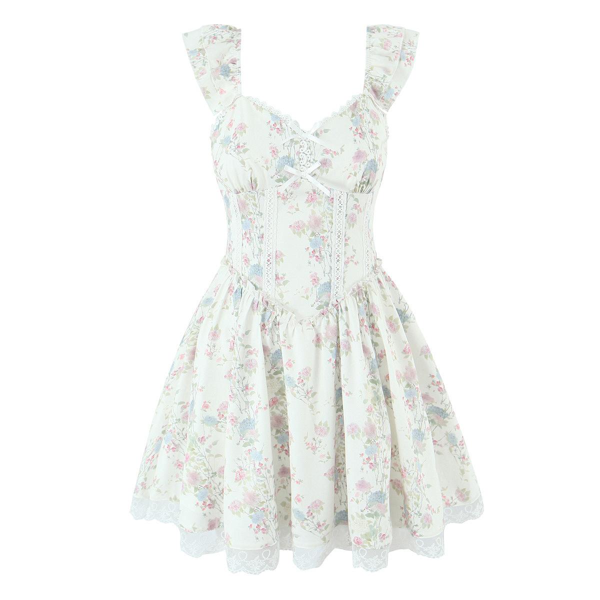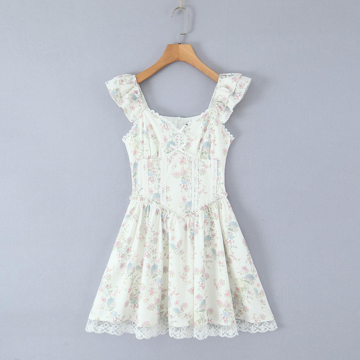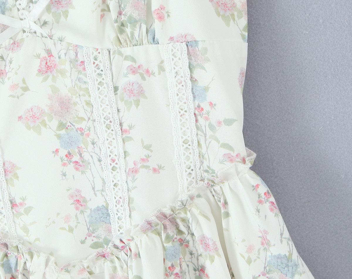 Ropa Europea y Americana Transfronteriza 2025 Primavera Nuevo Vestido de Hada Elegante Estampado Dulce y Romántico de Cintura con Tirantes