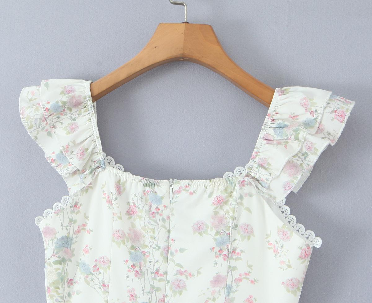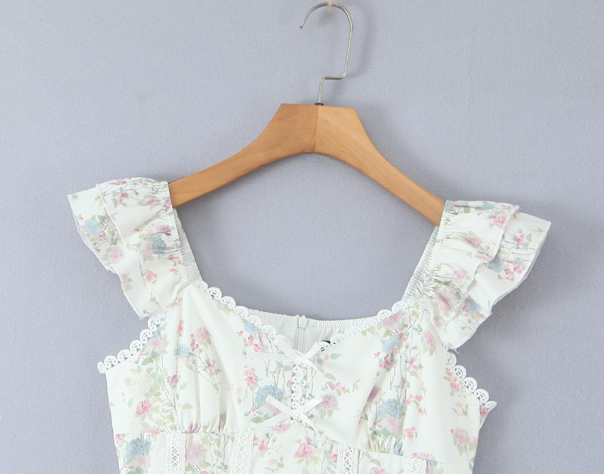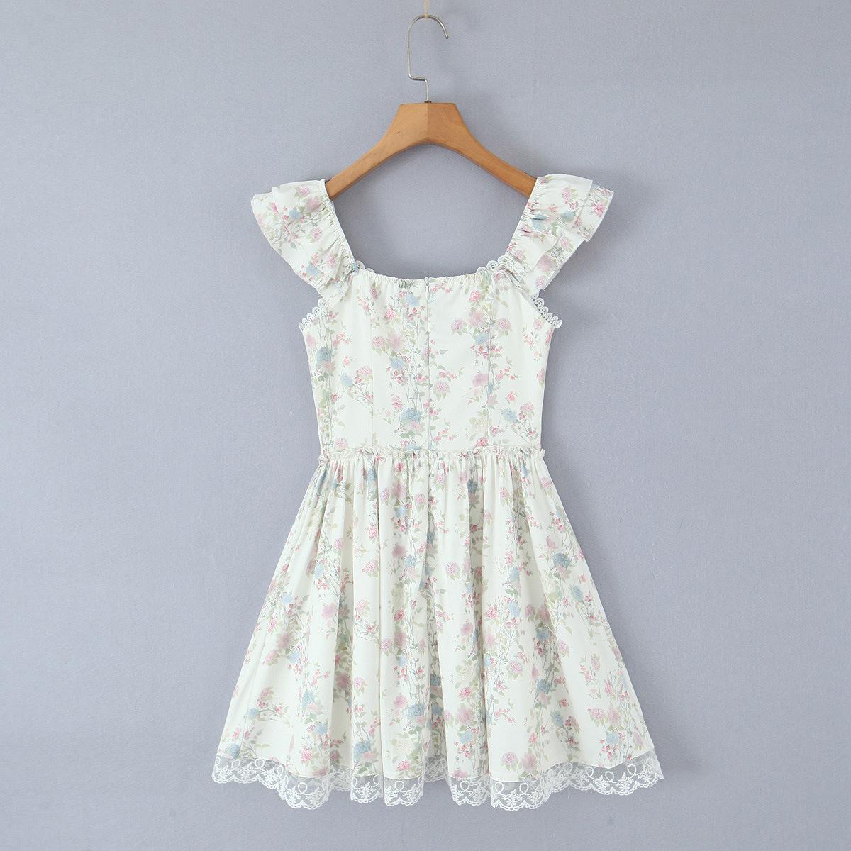 Ropa Europea y Americana Transfronteriza 2025 Primavera Nuevo Vestido de Hada Elegante Estampado Dulce y Romántico de Cintura con Tirantes