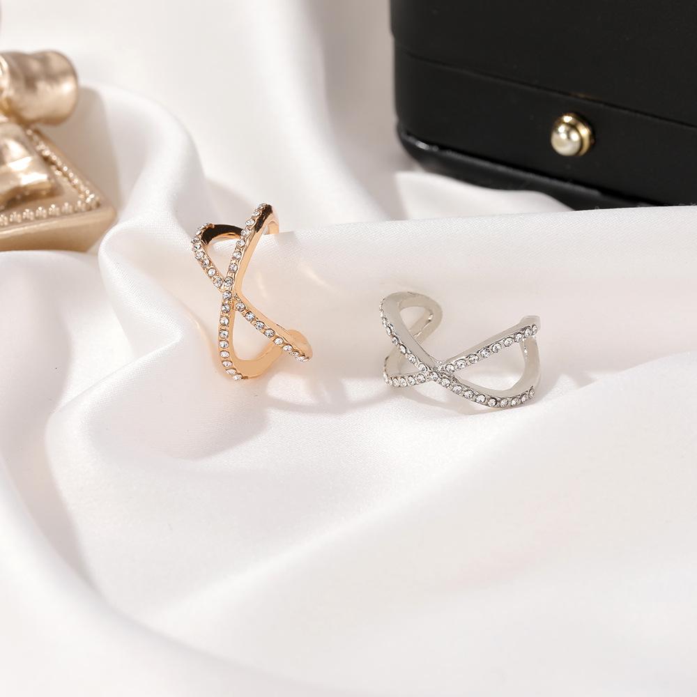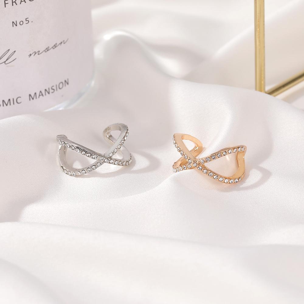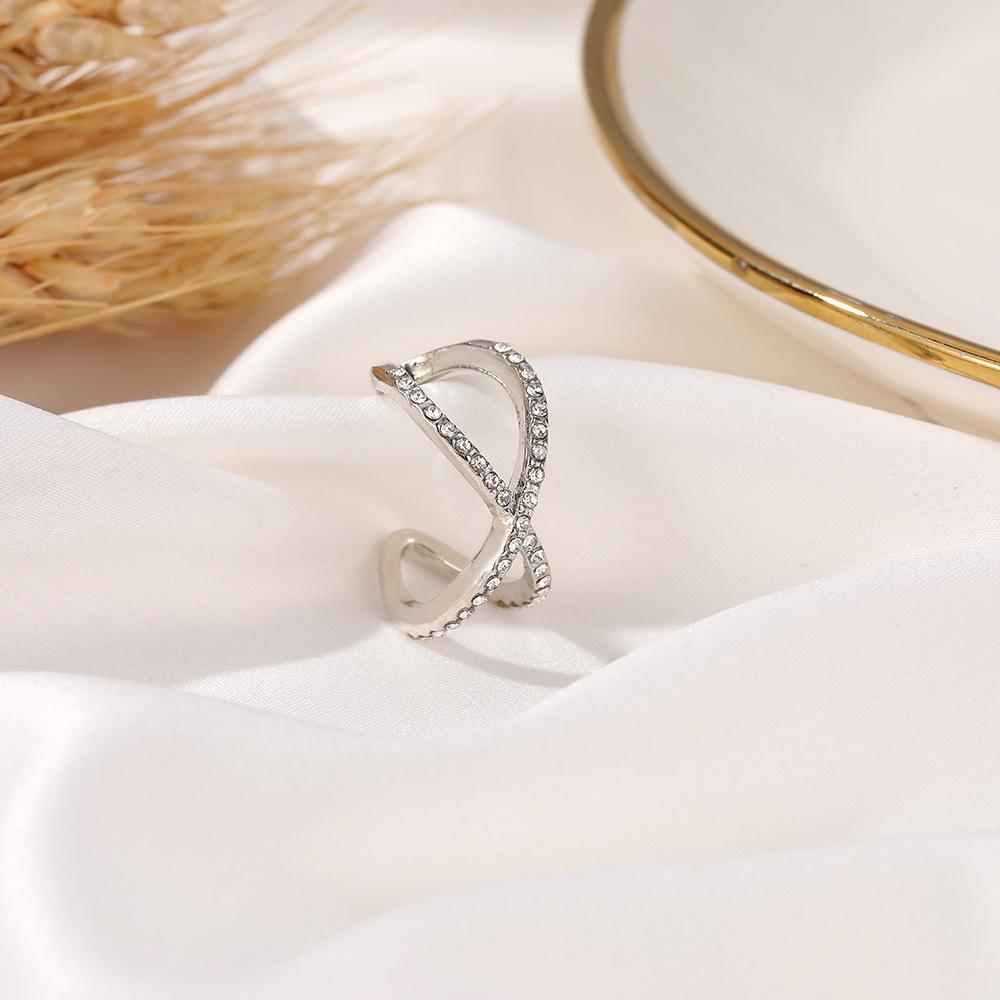 Anillo cruzado simple transfronterizo diseño de nicho personalizado anillo de diamantes de doble capa viento frío anillo abierto ajustable