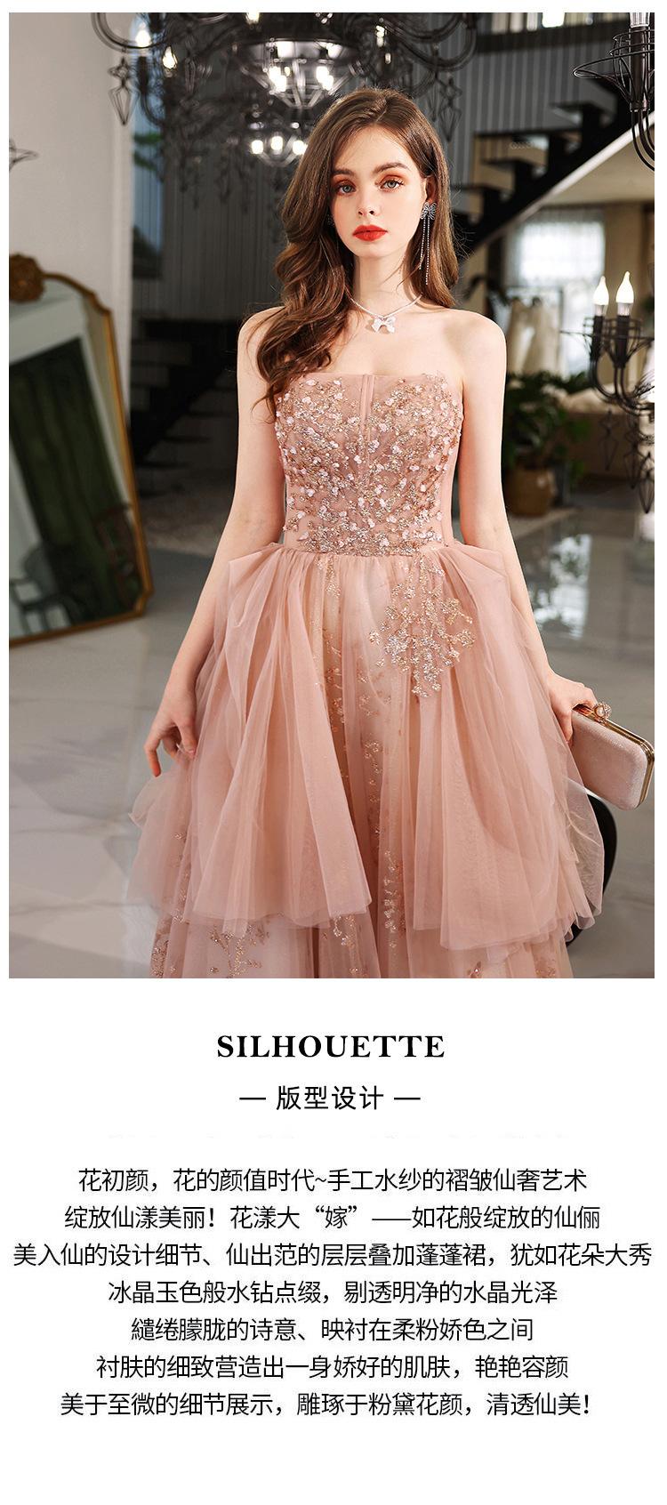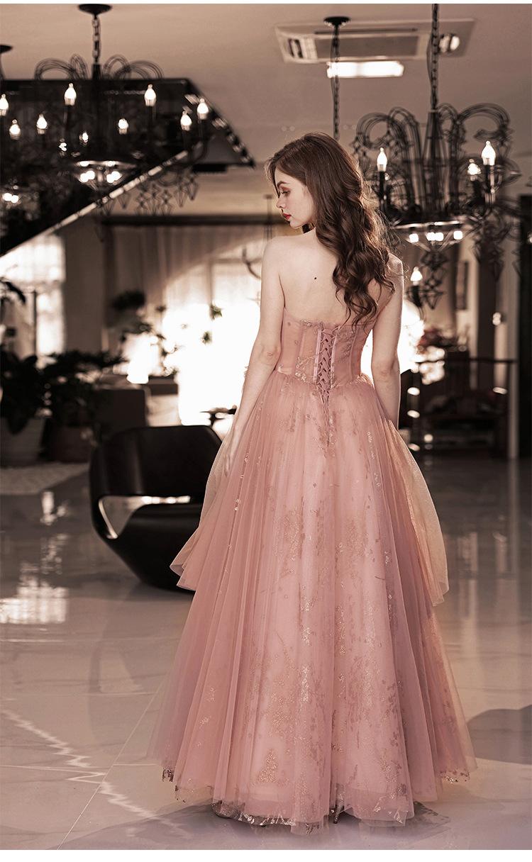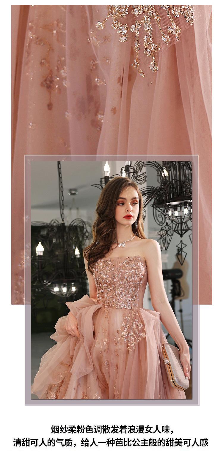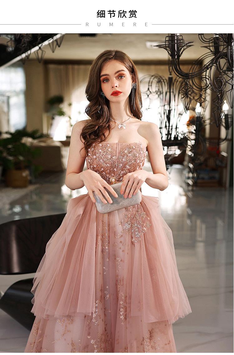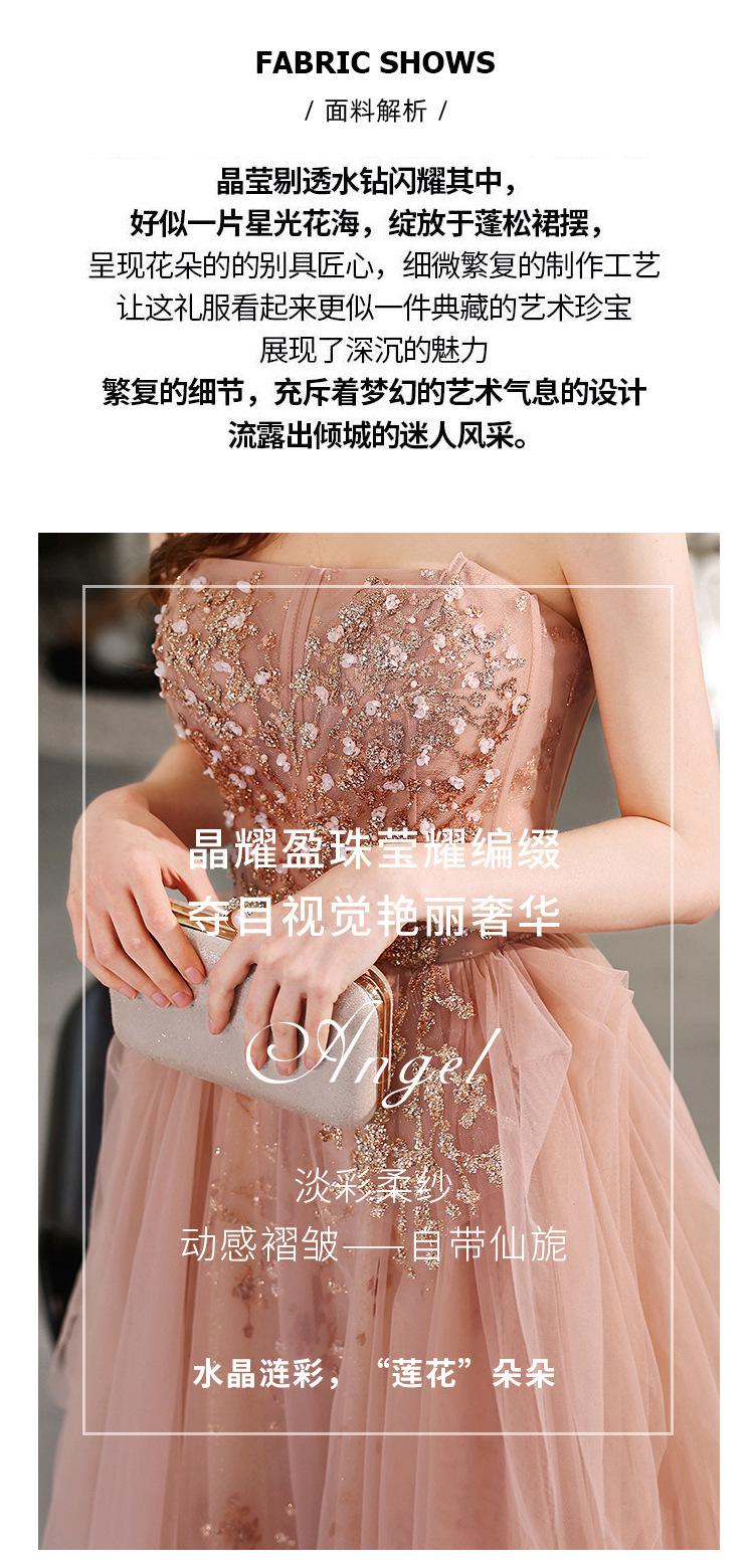 Vestido de Noche de un Hombro 2025 Nuevo Elegante Atmosférico Rosa Actuación Fiesta de Cumpleaños Anfitrión Vestido de Boda para Mujeres